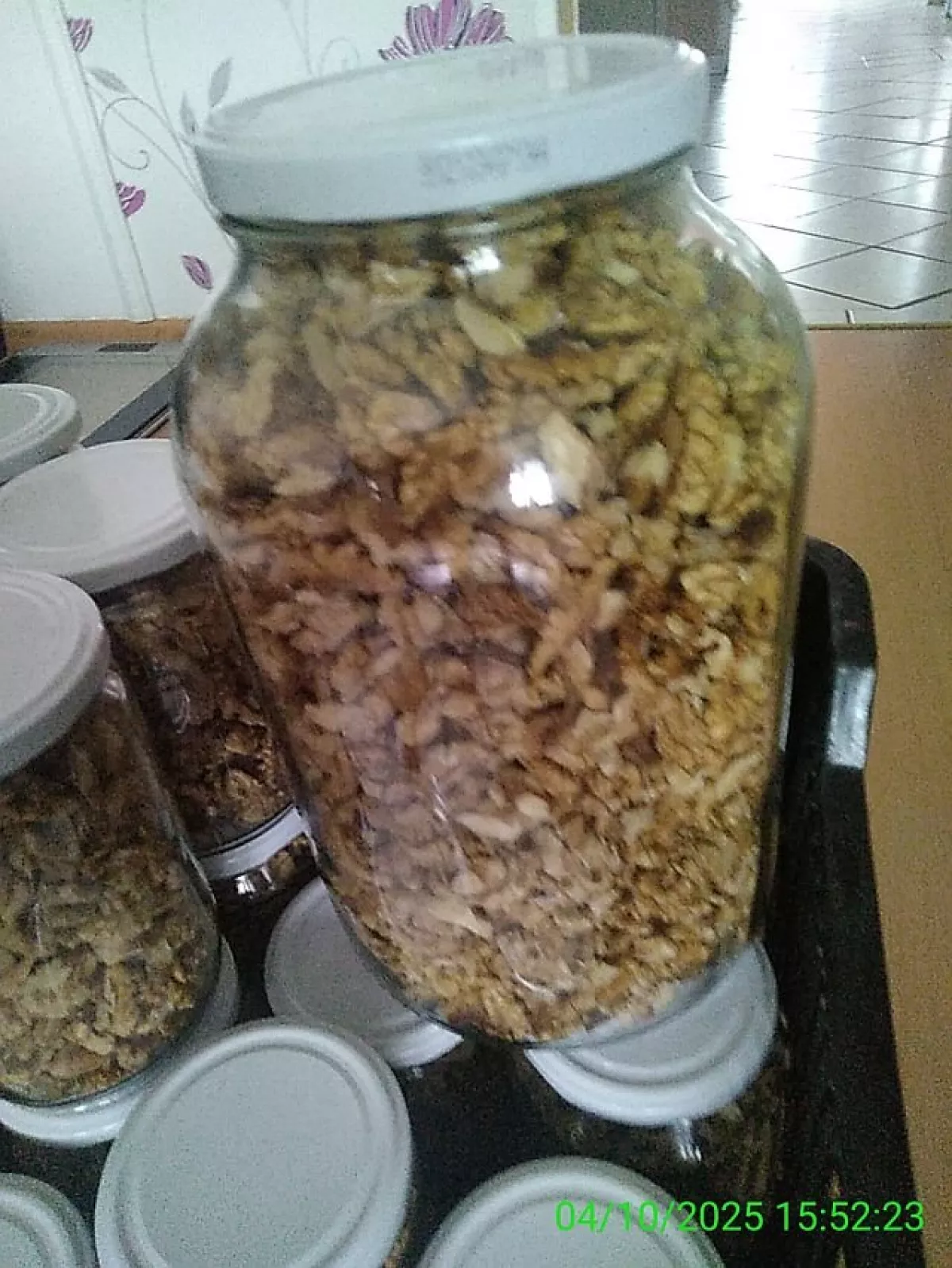 Loupané ořechy čisté a suché naplnit sklenice bez víček a vložit do mikrovlnky !!.hlavně nové víčka dávám, 3 plné sklenice vložím do mikrovlnky na 3 minuty 700W Víčka si otírám slivovici Vytažené sklenice po 3 minutách rychle užavřu víčky a obrátím je a položím na stůl .Nelekněte se té rosy co bude uvnitř a nechte do rána ležet