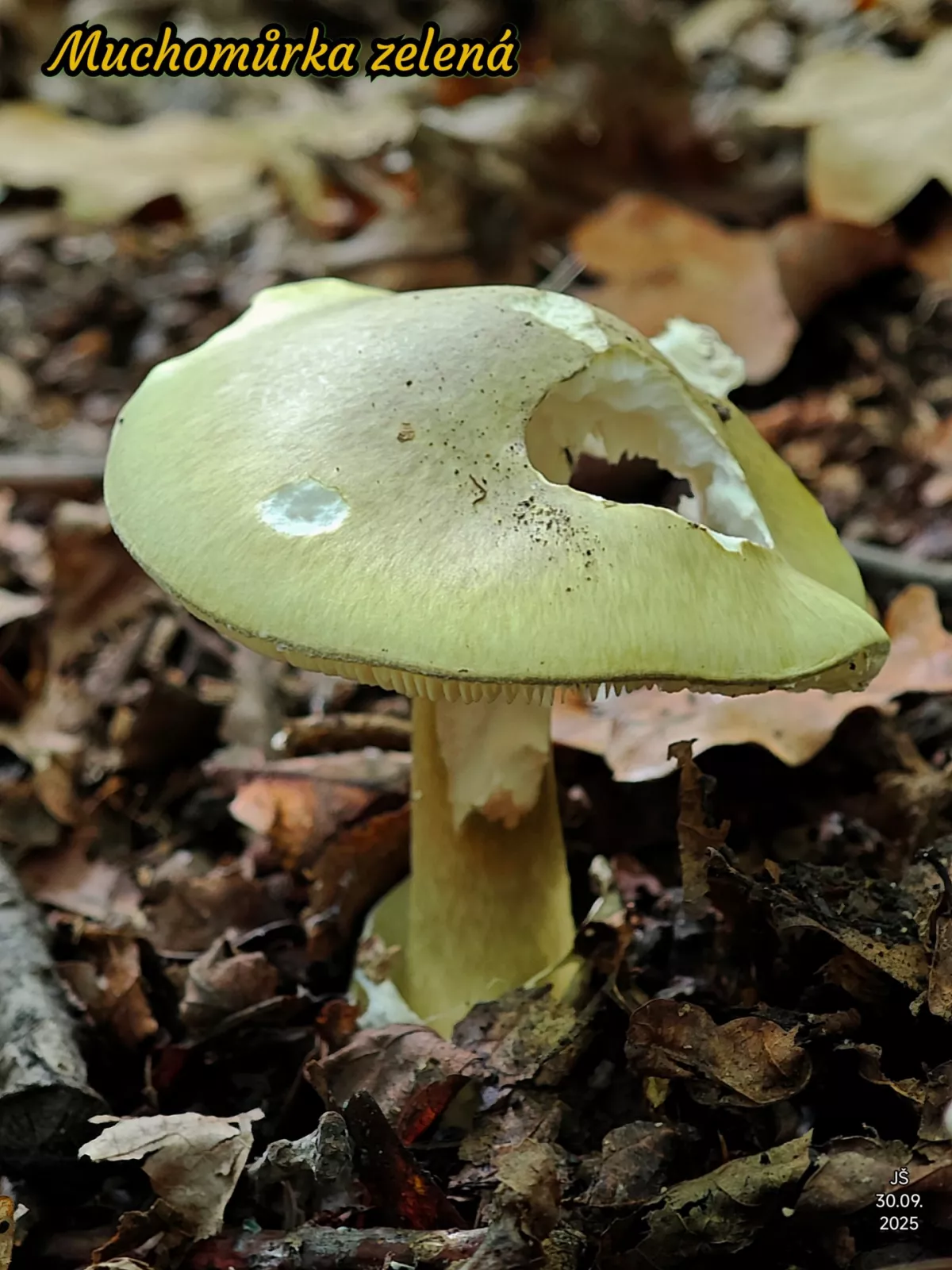 Vypadá to na houbu pokrytou nedohubem zeleným.