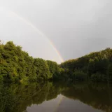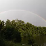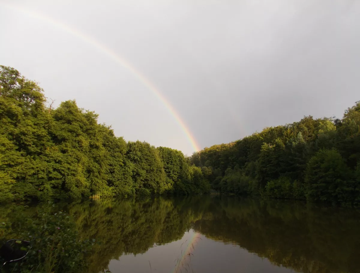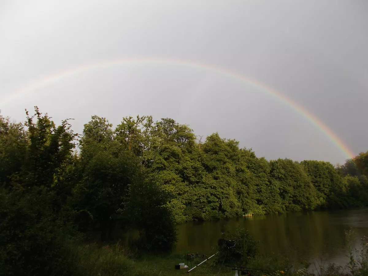 ...les je tu zatím bez hub...ale místy tady včera napršelo dost vody... ryby nebraly...slimejš si pochutnával na těstu na ryby...rybník mně zdobila hezká duha...překvapení ve vaničce...odpo oslava a 15ti letej bezzubej kamoš...