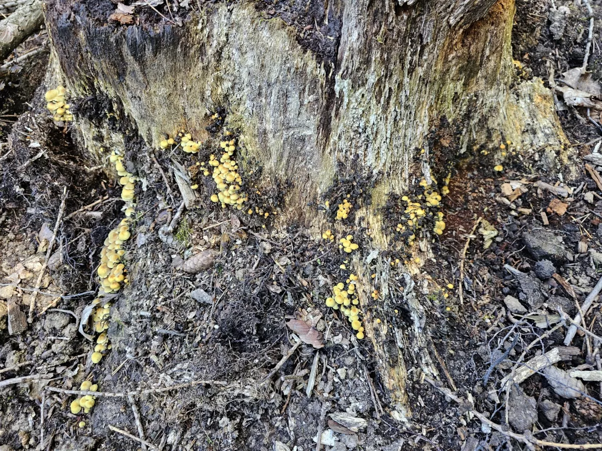 Skoro nic neroste. Jeden starý sírovec a jeden zvláštní pařez na kterém už několik let rostou třepenitky od jara až do podzimu skoro nepřetržitě.