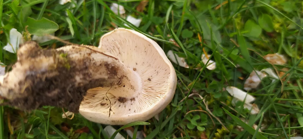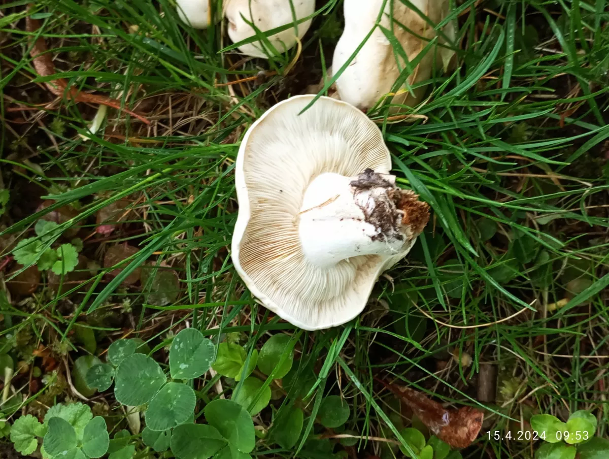 Podle mně je to čirůvka májovka, pohled ze spodu na lupeny by napověděl víc...🍀