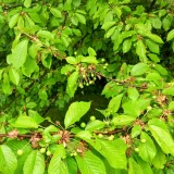 Mohla by to být sakura, starší stromy mají někdy část koruny bílé...třeba v Olomouci. Asi byly roubované na třešeň. Ale ty růžové květy nevypadají jako květy sakury a listy pod květy taky ne.