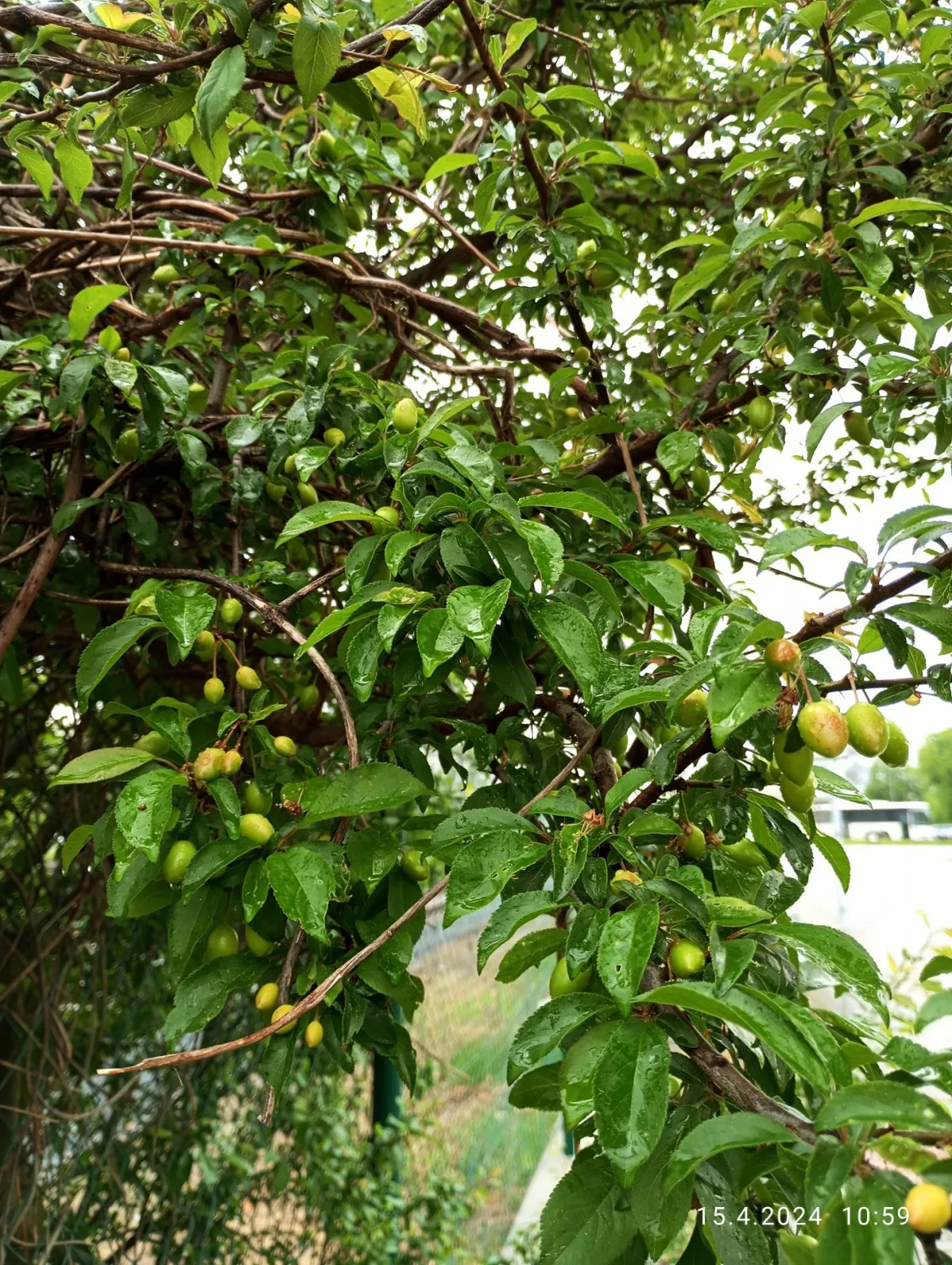 Bohuši, na fotce je kdoulovec ozdobný (výška až 3 m, možná japonský, ale ten je menšího vzrůstu) a Marie má pravdu, jsou to prorostlé dva stromy, s největší pravděpodobností některá z třešní nebo višeň.🍀