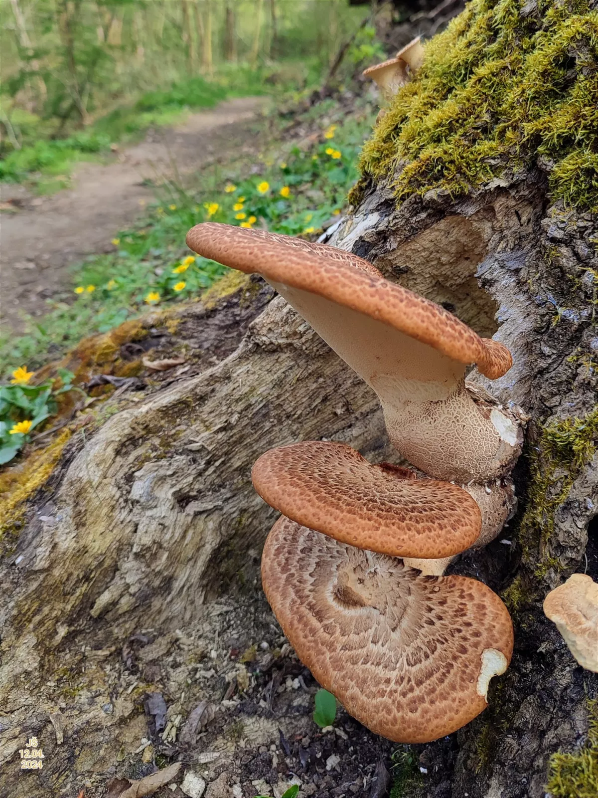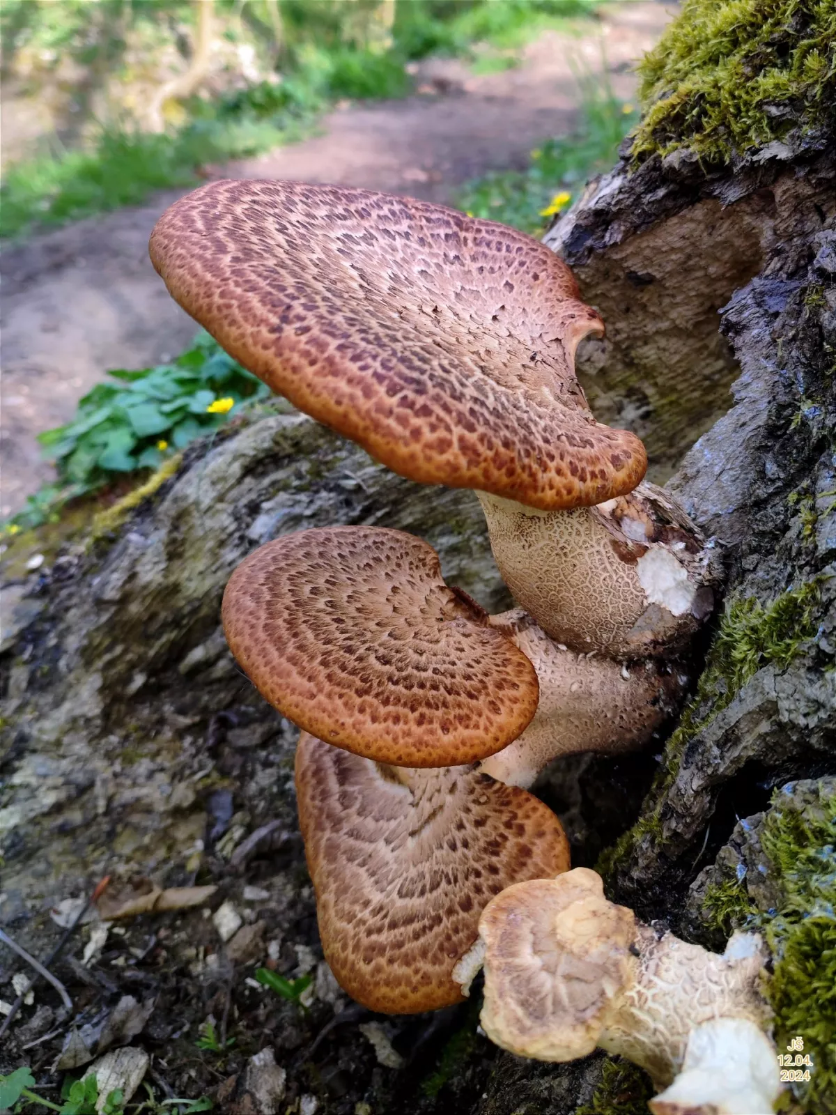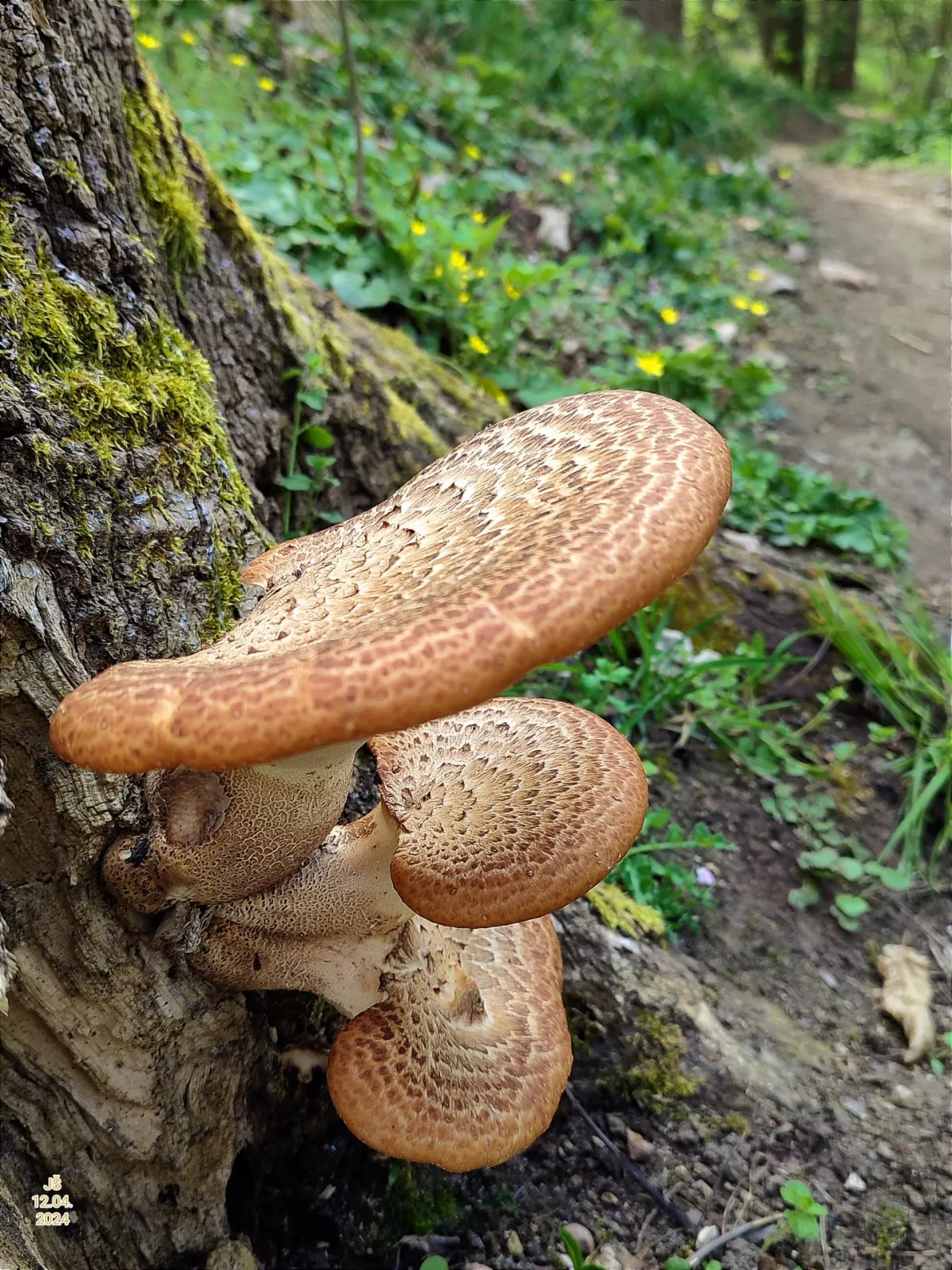 Skoro stejné je to v Hradečné, ale houby rostou na návsi těsně u hřbitova, kde jsou taky mohutné lípy, kaštany a duby. Roste tam koloděj a taky hřib medotrpký.