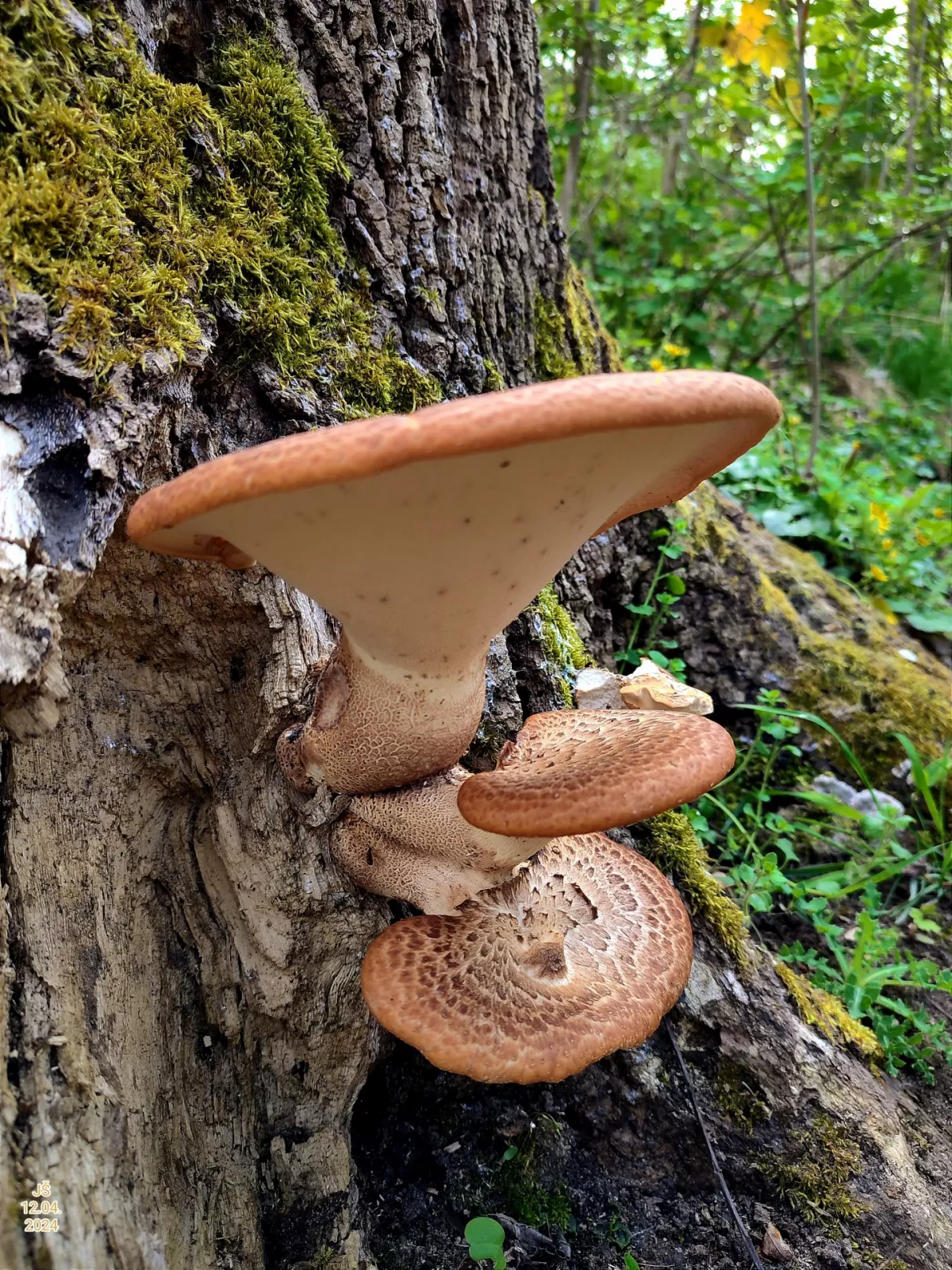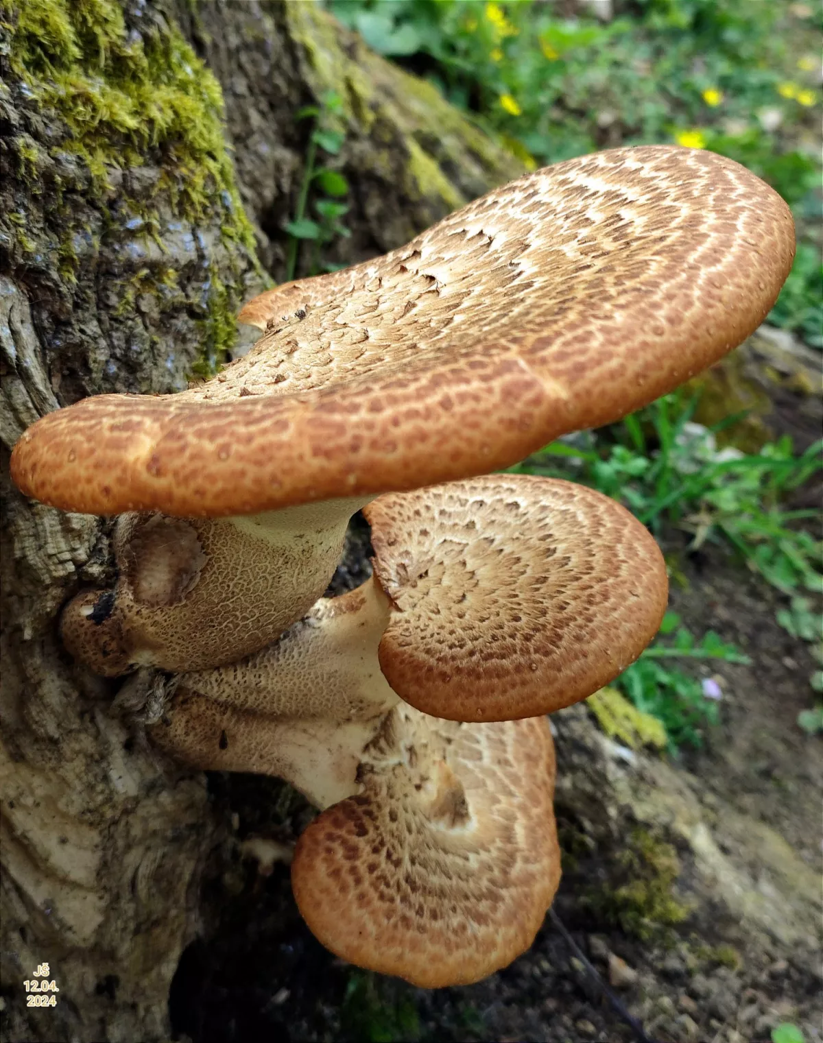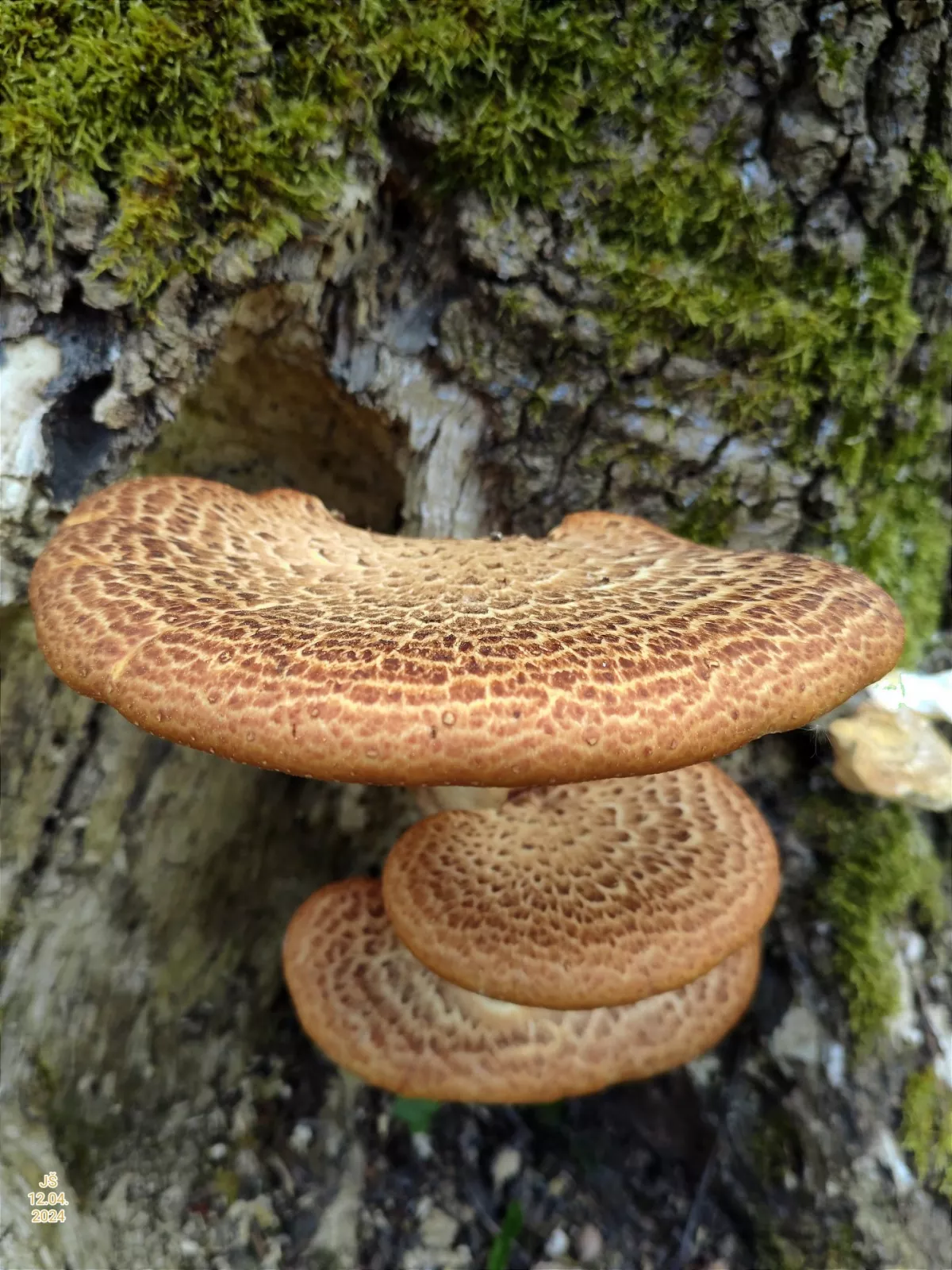 Choroš šupinatý u nás roste na ořešácích. Zatím jsou tam jen staré černé plodnice.