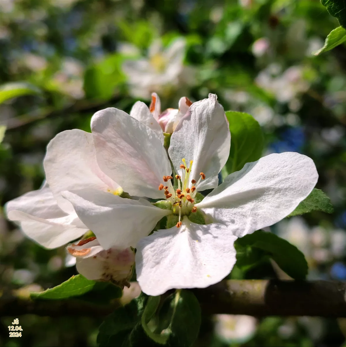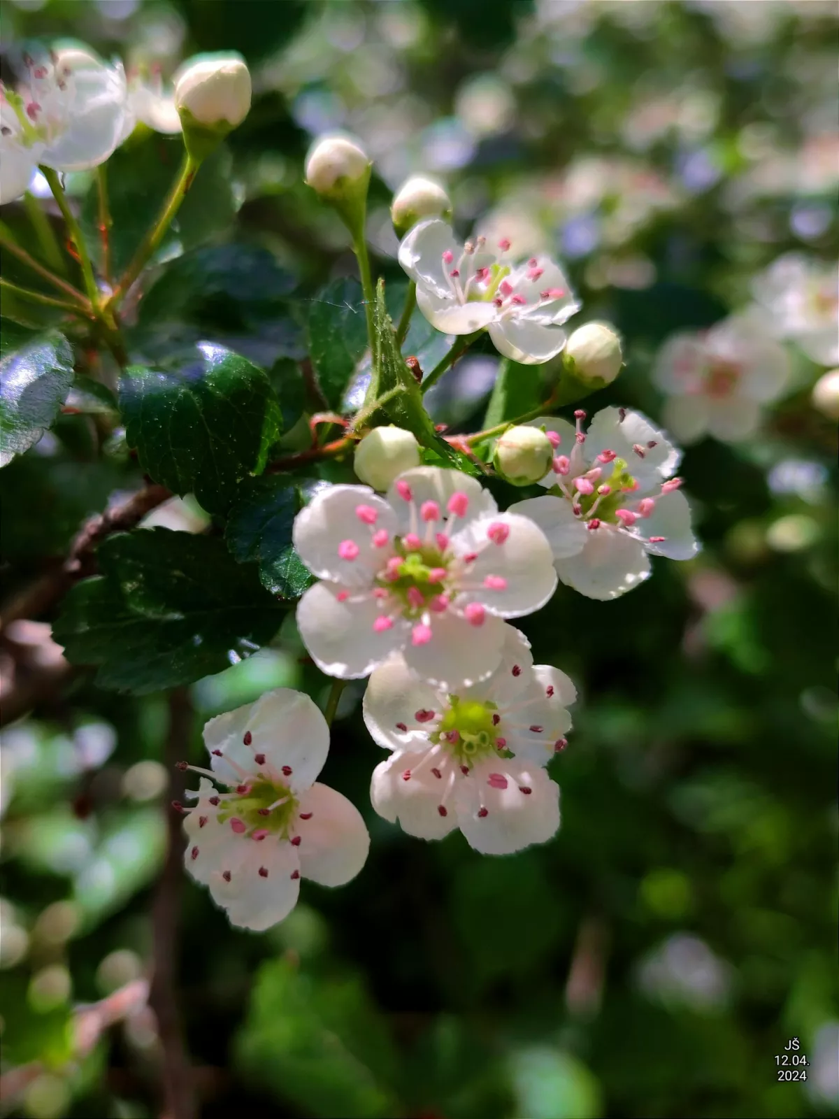Nevím, co řekne Josef, mně to připadá jako kdouloň, ale listy v popředí jsou třešňové. Nekvete letos třešeň...asi planá? A kdouloň může už být odkvetlá. Třeba rostou těsně vedle sebe.