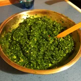 Pesto si namažu třeba na chleba s máslem nebo i bez másla, pesto stačí.... občas dám nahoru plátky vajíčka, sýru nebo šunky, aby byly i bílkoviny. Nebo pesto zamíchám do těstovin, rýže, vařených brambor. Potřu jím plátky červené řepy než ji zapeču. Nebo uvařím vejce naměkko, vyberu je do misky, smíchám s pestem....je to lepší než míchaná vajíčka na tuku. Taky se může namazat na topinky, přidat do guacamole....co koho napadne. Je to mňamka.