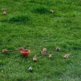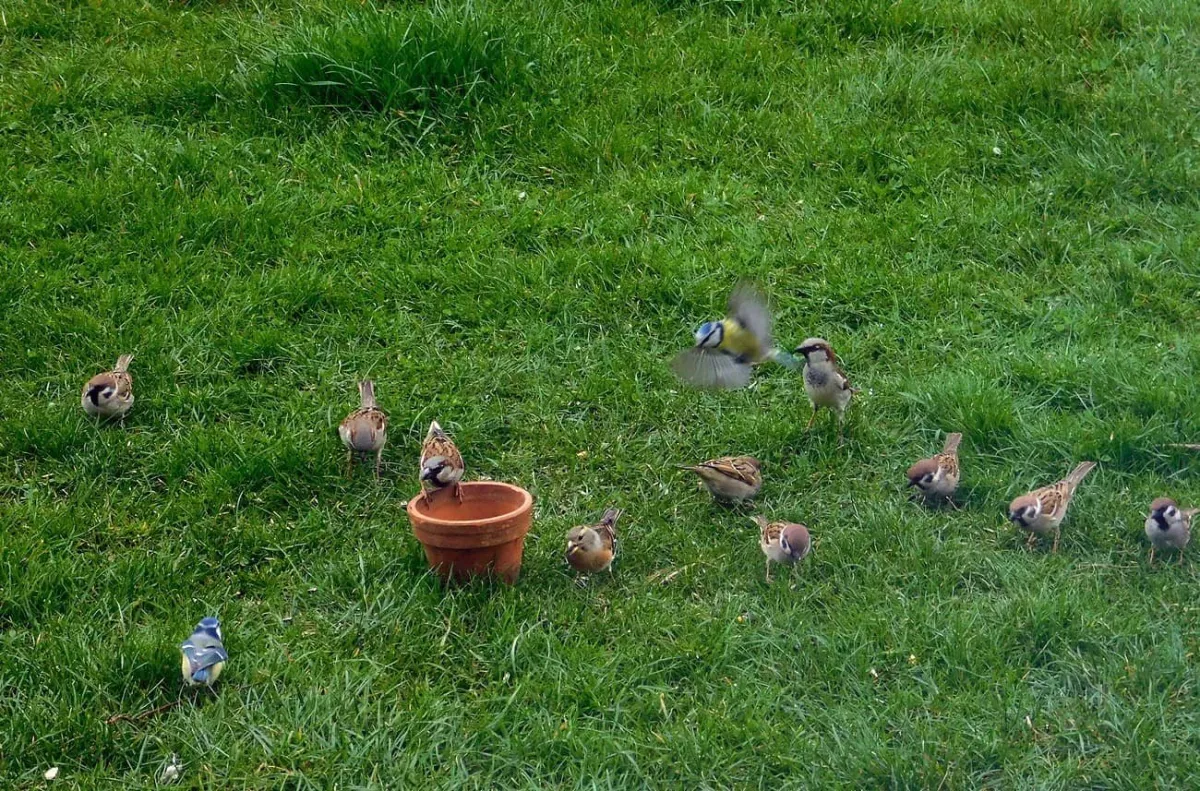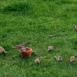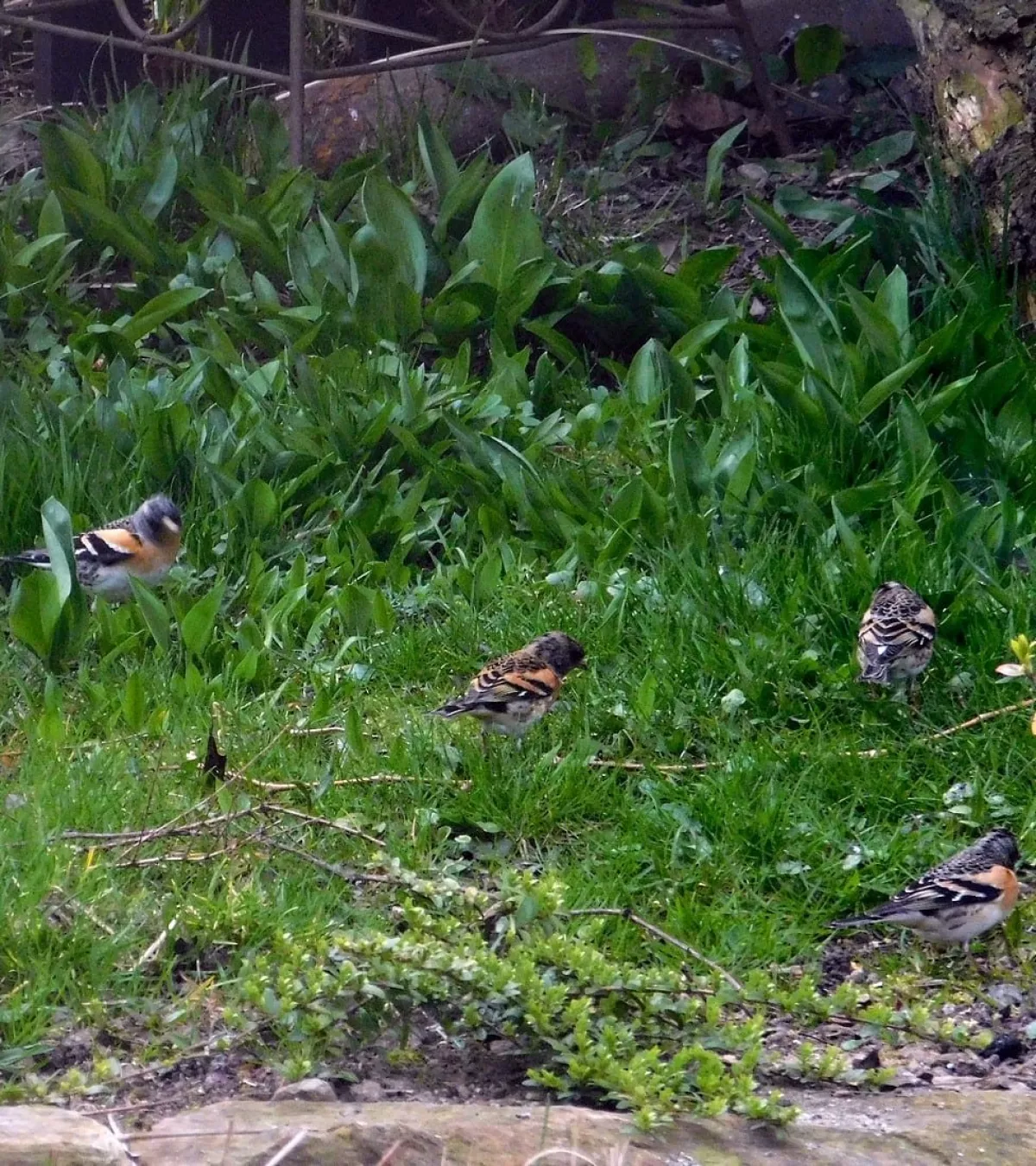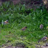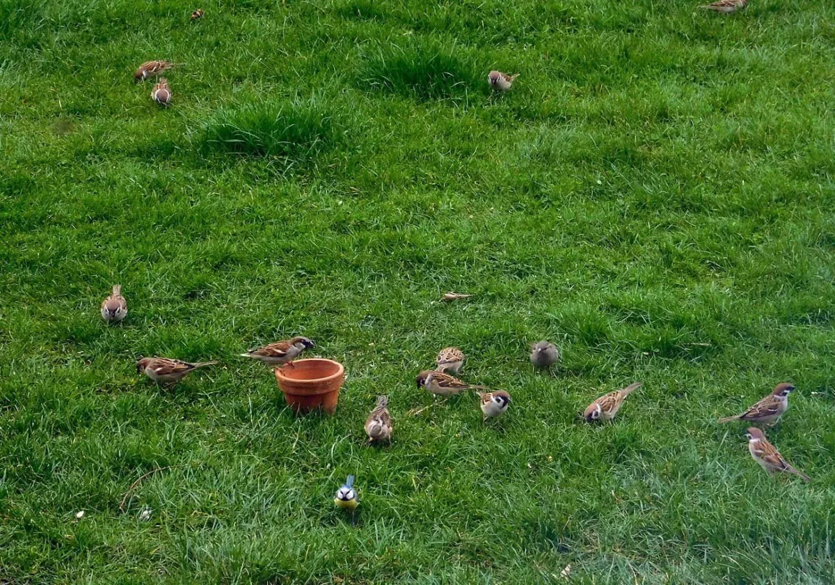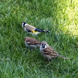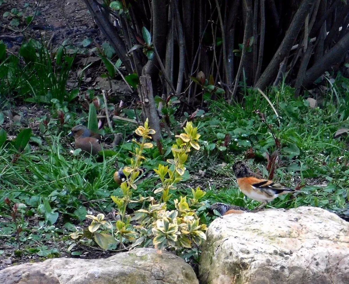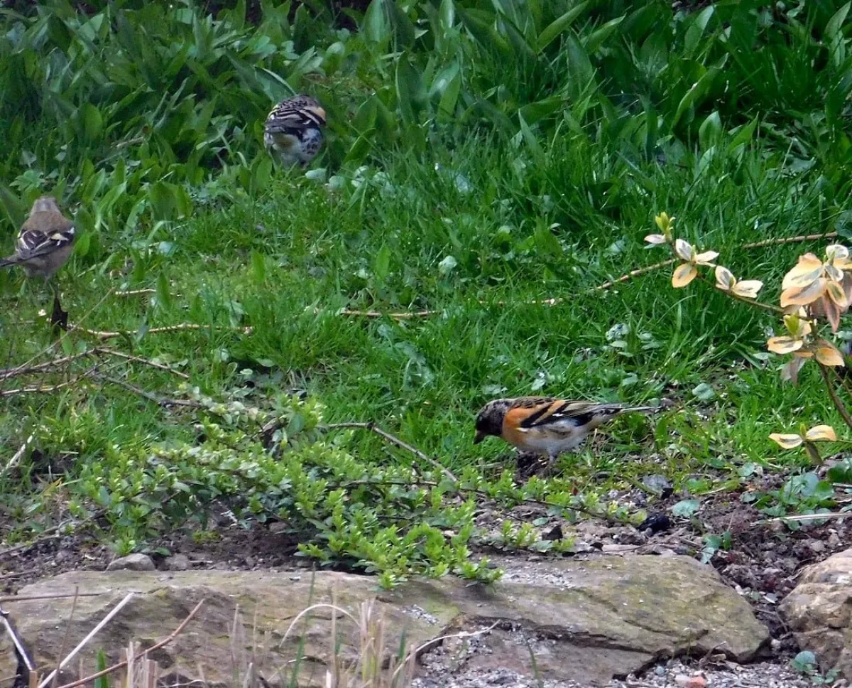 Dnes.Tolik ptáků za celou dobu co tu bydlíme nepamatuji.Ráno straky,hřivnáči,strakapoudi,brhlíci,kosi,hejno vrabců,stehlíků.Sýkory tři druhy,červenka,špačci ,už tu byli,ale později až hnízdí,se ráno chodí pást na trávníku,tahají žížaly.