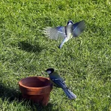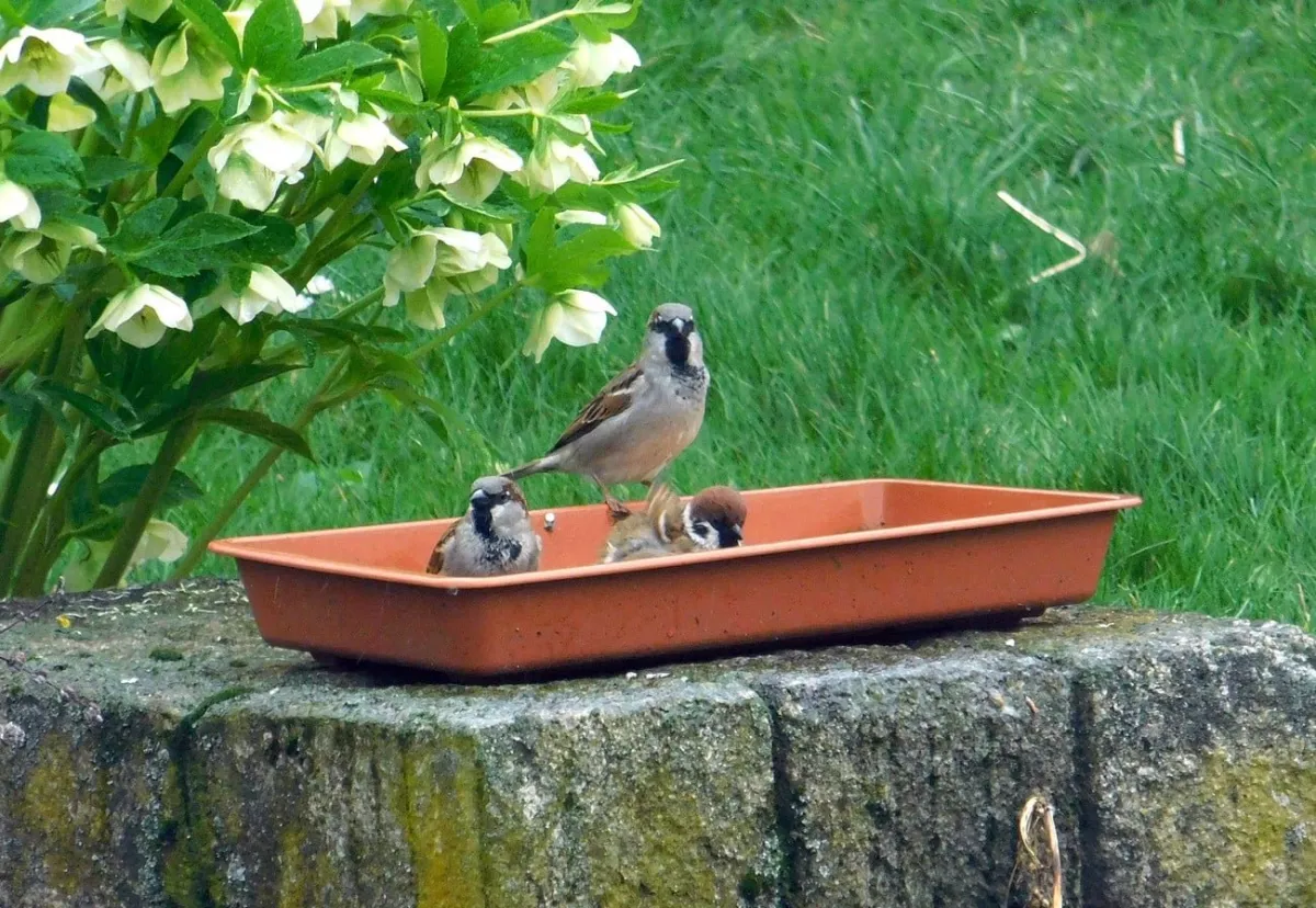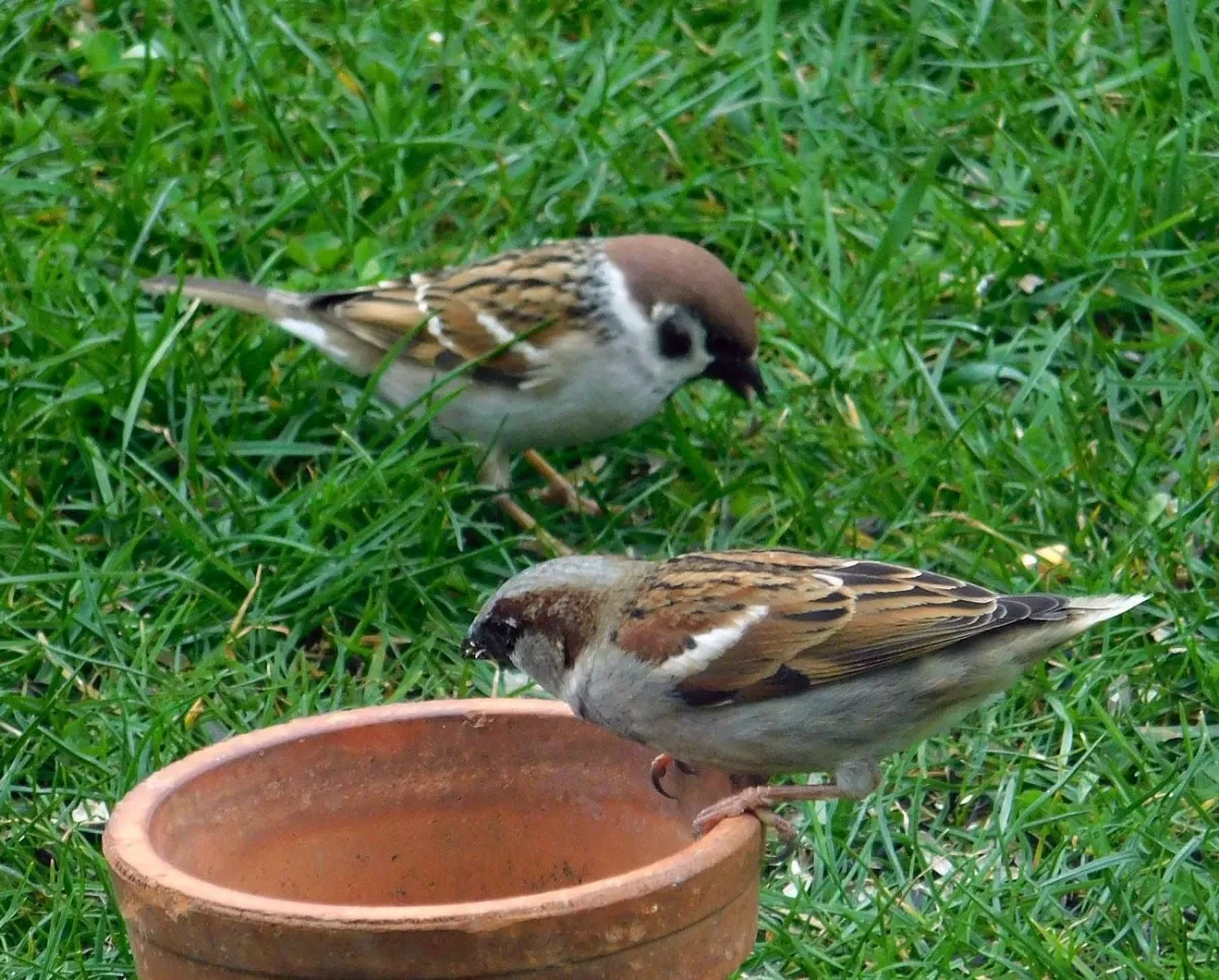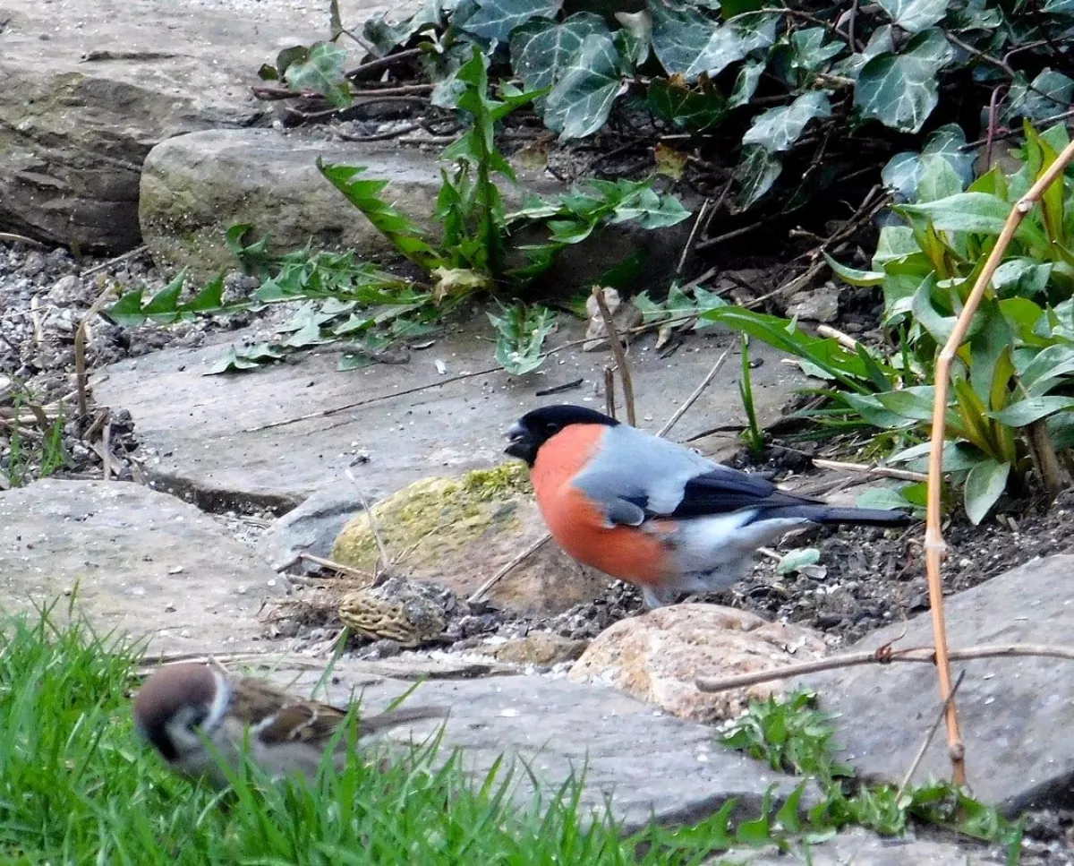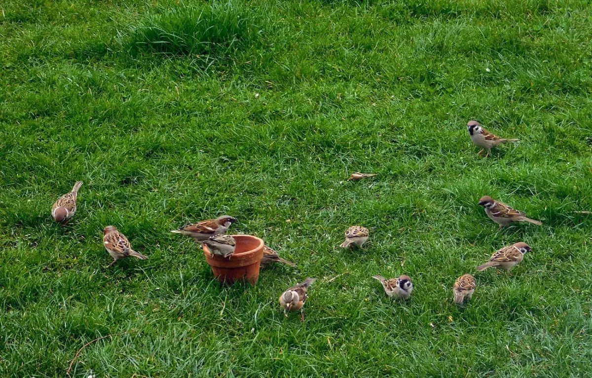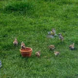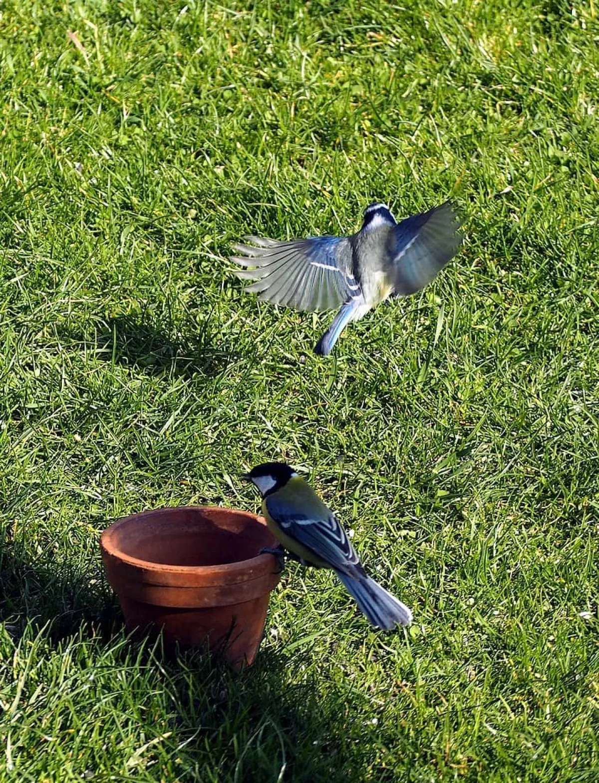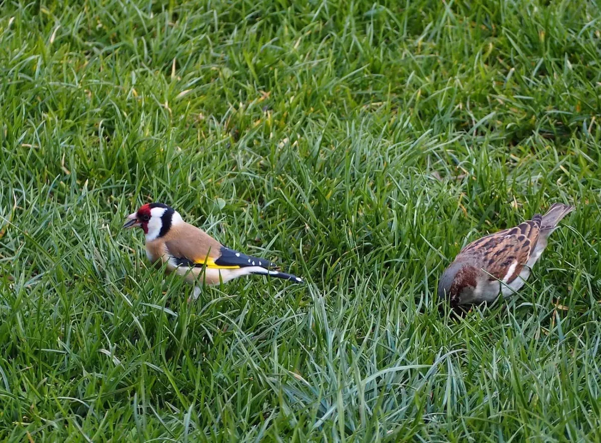 Dnes.Tolik ptáků za celou dobu co tu bydlíme nepamatuji.Ráno straky,hřivnáči,strakapoudi,brhlíci,kosi,hejno vrabců,stehlíků.Sýkory tři druhy,červenka,špačci ,už tu byli,ale později až hnízdí,se ráno chodí pást na trávníku,tahají žížaly.