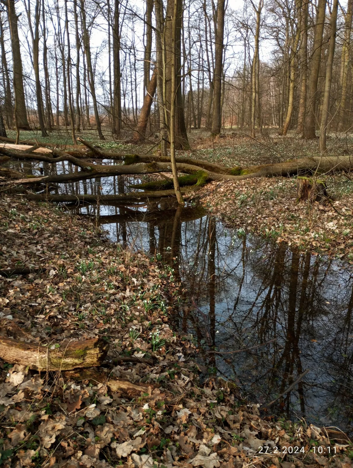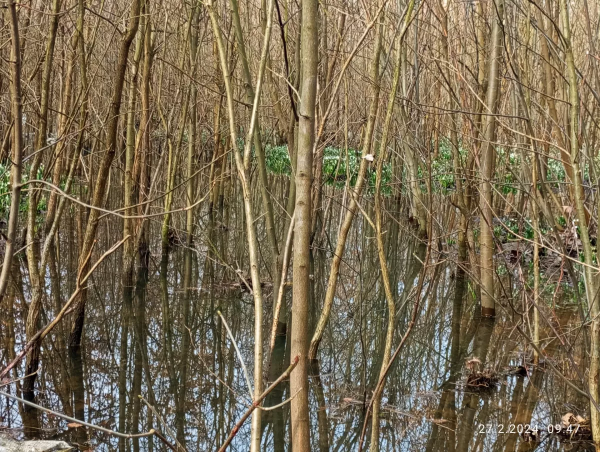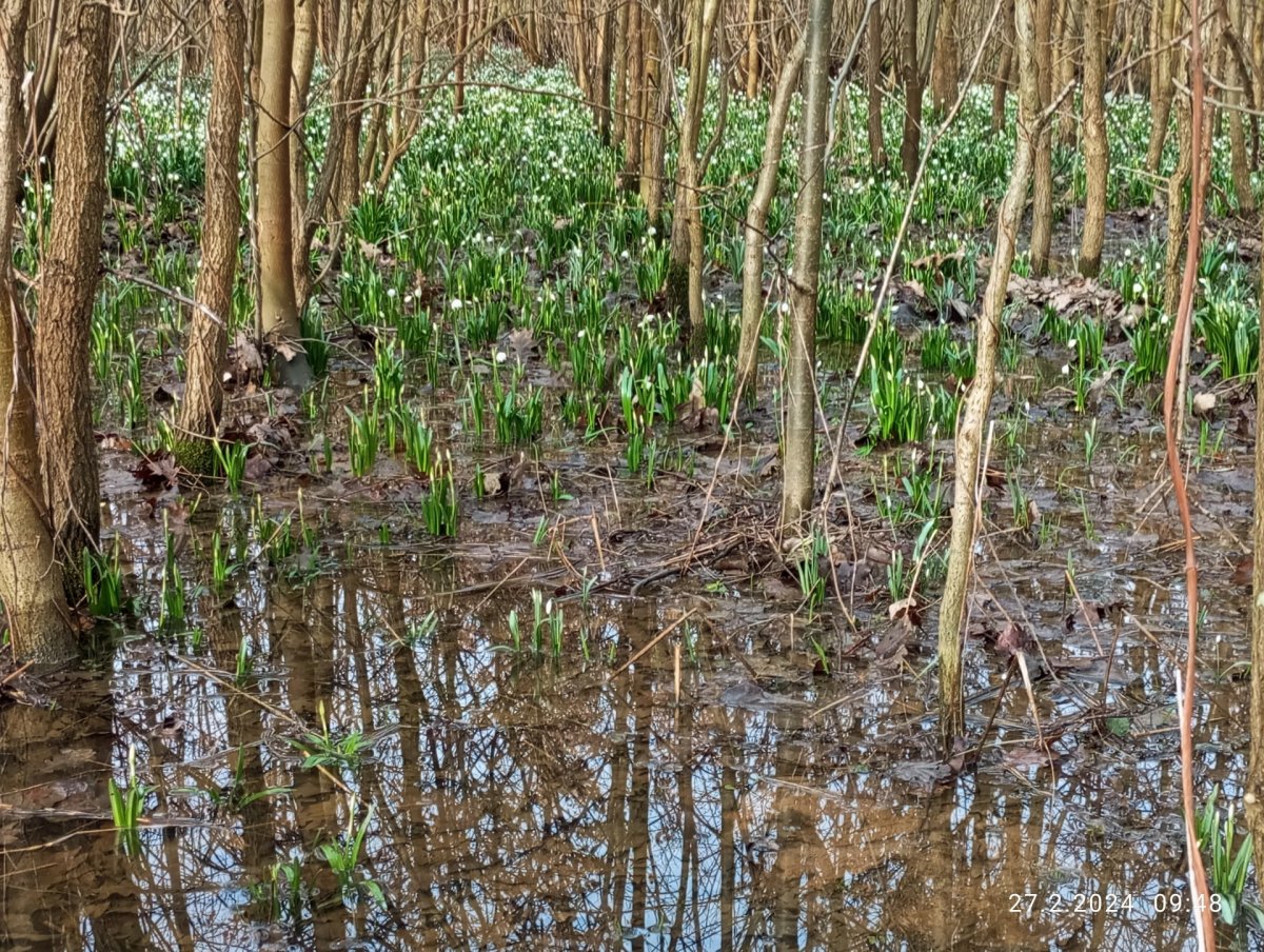 Dnes bylo krásně, sluníčko svítilo, teplo jako v dubnu. Se sestrou jsme toho využily a vyjely se podívat do Doubravy...do známé chráněné krajinné oblasti Litovelské Pomoraví. Jezdím sem skoro šedesát let, ale letos je tady snad nejvíc vody, co jsem viděla. Taky bledulí a sněženek je víc a víc. Byly jsme se podívat i k Moravě, je taky letos hodně plná vody. Houby žádné nebyly... ani uši na bezech.