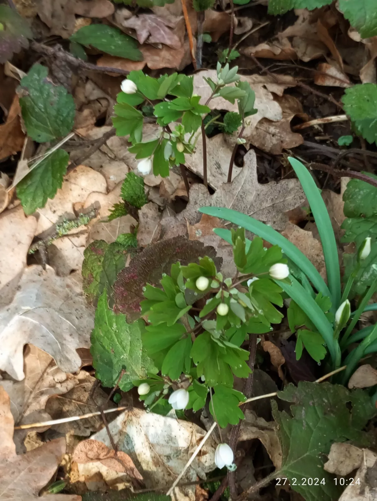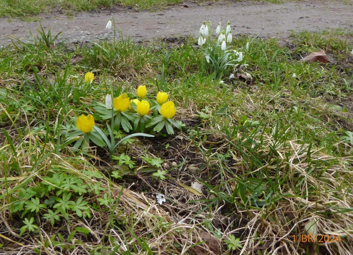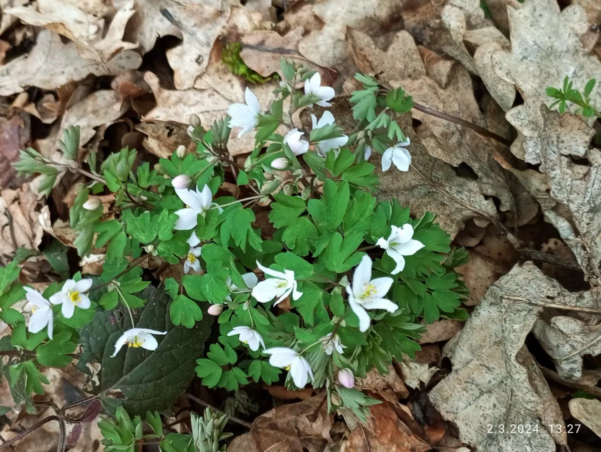 Kromě sněženek a bledulí už kvete i zapalice žluťuchovitá, sasanky...roste tu hajní a pryskyřníkovitá...mají poupata. Roste medvědí česnek, i orsej začíná kvést. Zatím není vidět žádná dymnivka ani petrklíč, ale je únor. Normálně kvetou v dubnu.