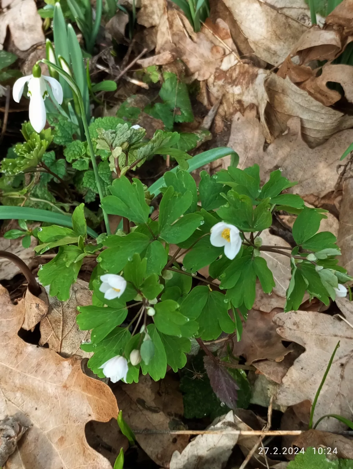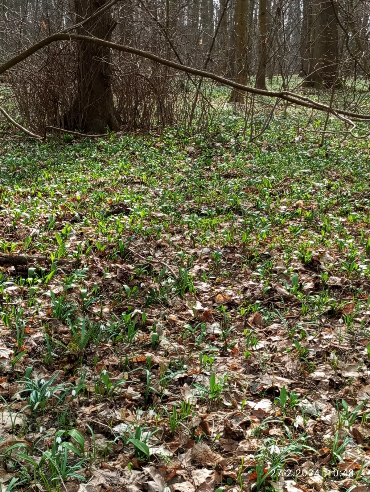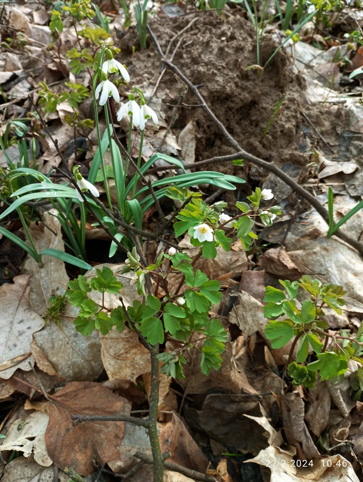 Kromě sněženek a bledulí už kvete i zapalice žluťuchovitá, sasanky...roste tu hajní a pryskyřníkovitá...mají poupata. Roste medvědí česnek, i orsej začíná kvést. Zatím není vidět žádná dymnivka ani petrklíč, ale je únor. Normálně kvetou v dubnu.