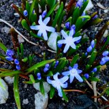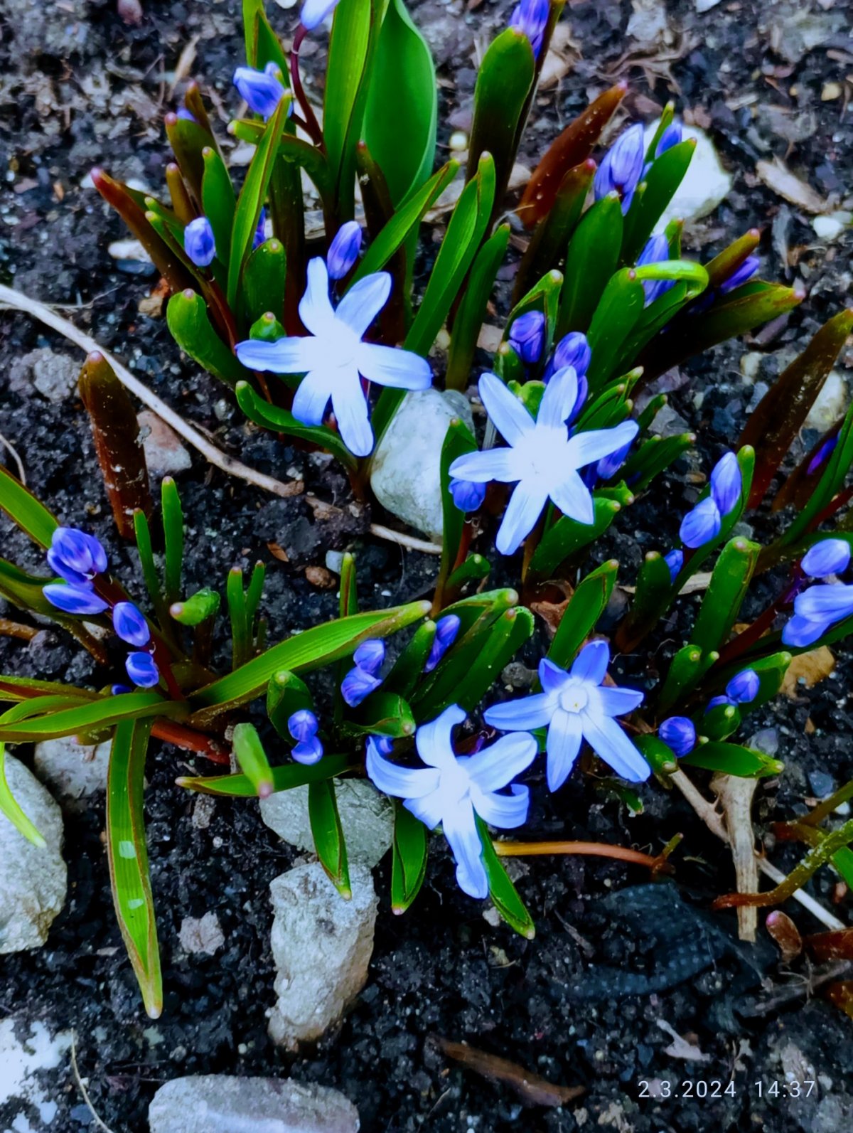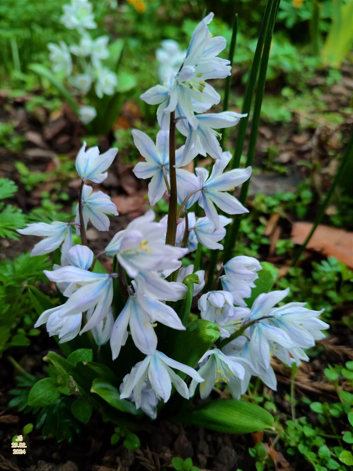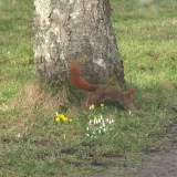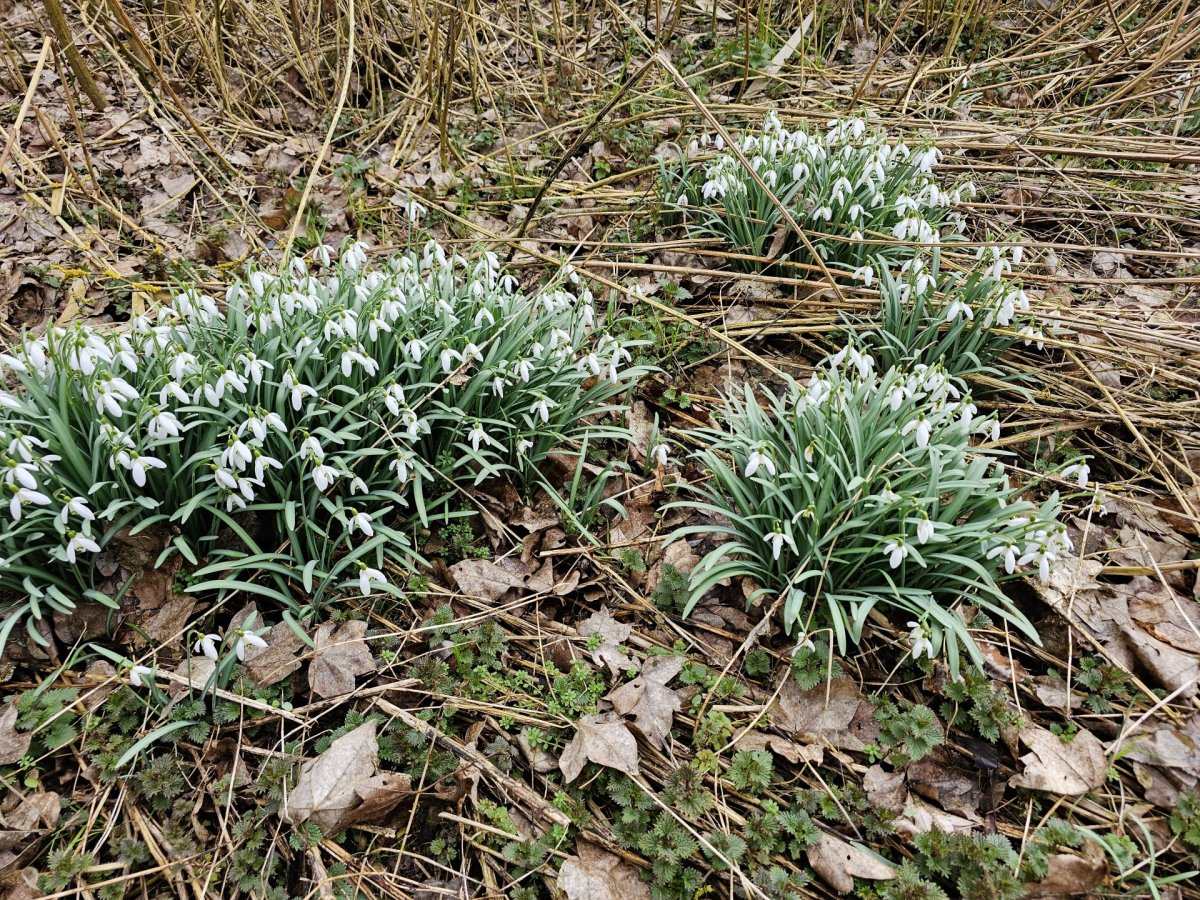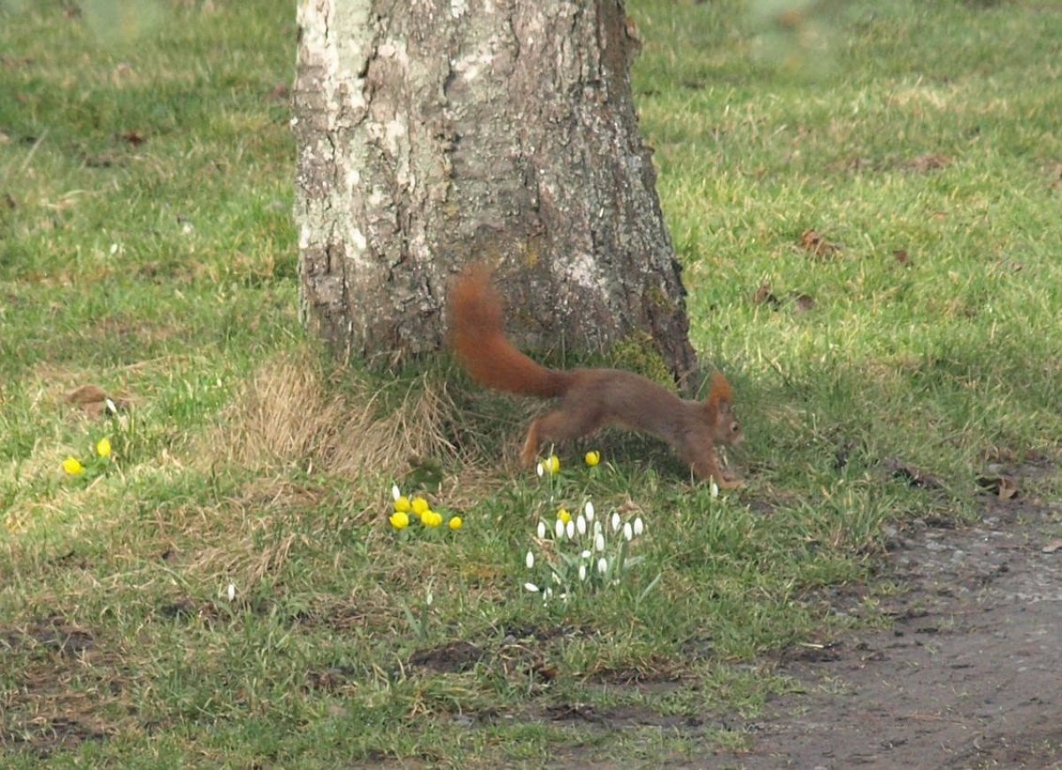 Do lesa jako paní Marie jsem se zatím ještě nevydal, ale na naší zahrádce už také něco vyrostlo. Bledule, sněženky, talovín. Jenže sluníčka je tu málo, takže květy nejsou moc rozvité. Vše roste divoce v trávě mimo záhony. A veverce čiperce je úplně jedno, že do toho mála co tu roste, ještě skáče. Potěšil mě pár hrdliček, které na podzim kamsi zmizeli a teprve před několika dny se vrátili.