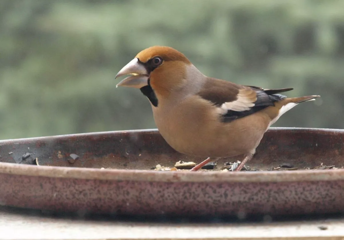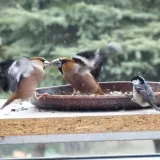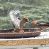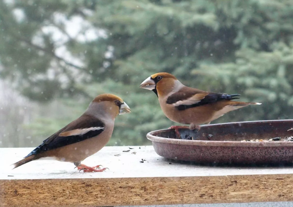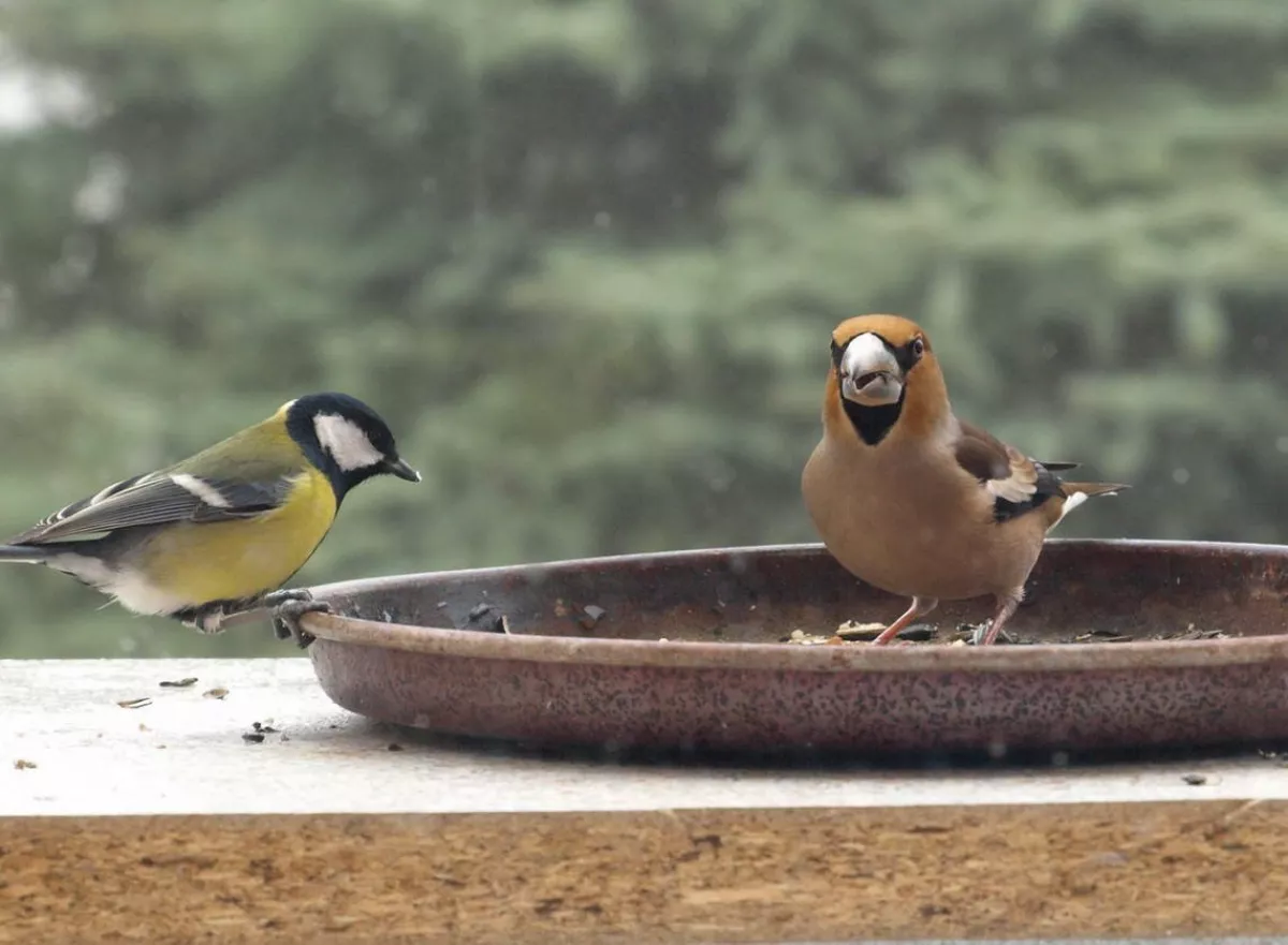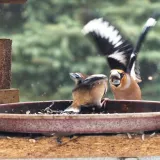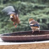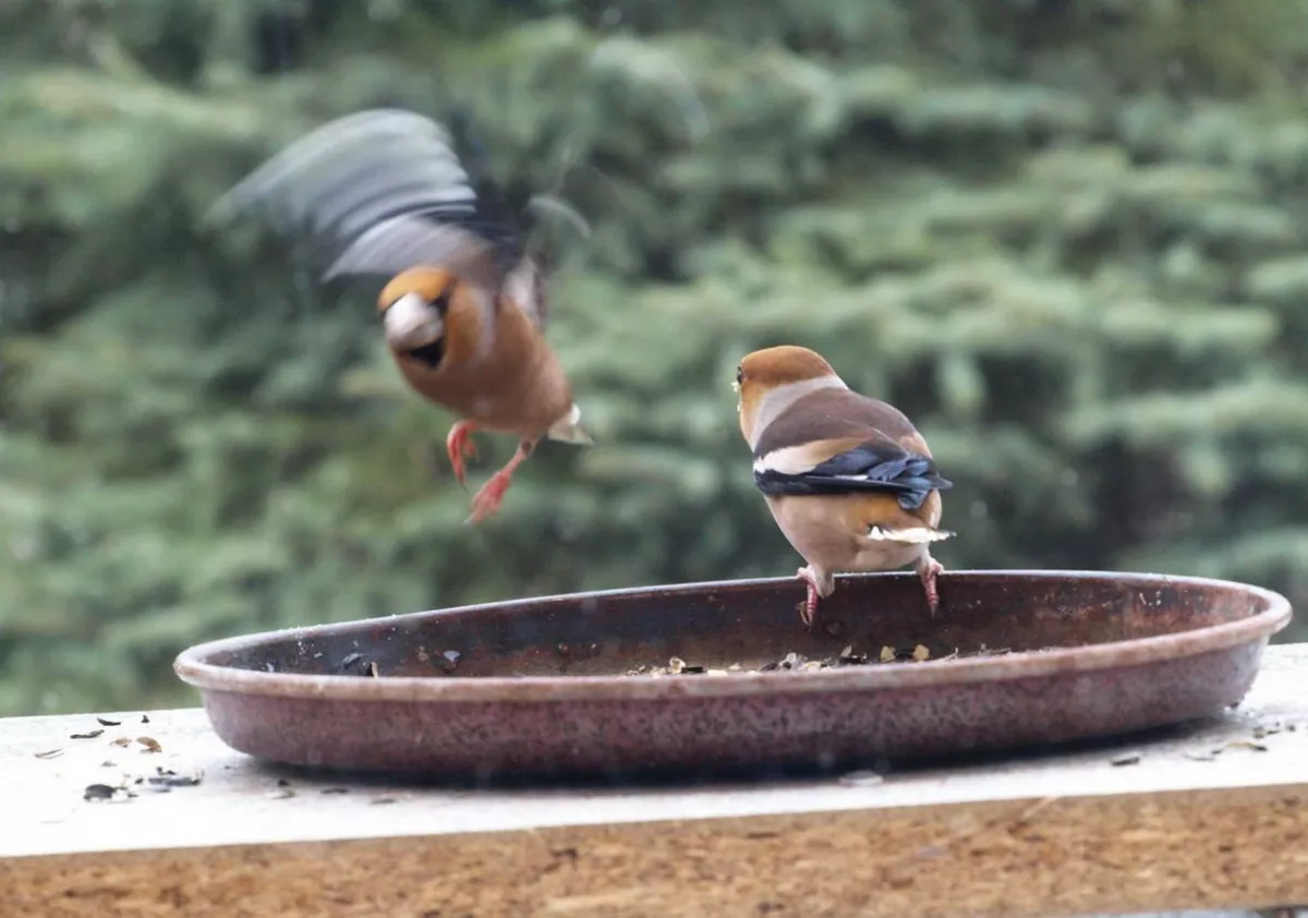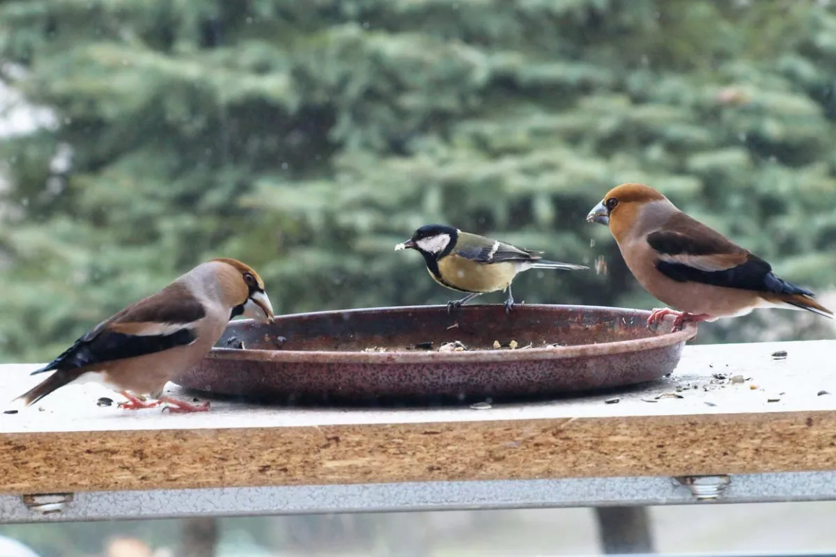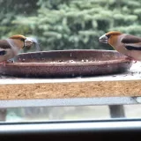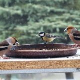 Omlouvám se za nehoubařský příspěvek, ale vzhledem k problémům s kolenem zatím do lesa nechodím. Takže jako správný důchodce krmím ptáčky. Před několika dny se k nám na zahradu slétlo hejno dlasků. Ale někteří se navzájem na krmítku nesnesou. Takže takto to za oknem vypadalo.