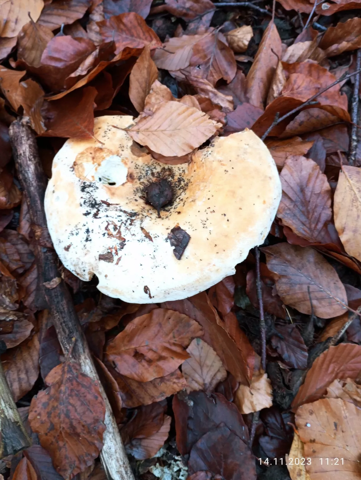 vyrostla na zahradě pod meruňkou teď v listopadu. Prosím o určení, co je to za houbu.