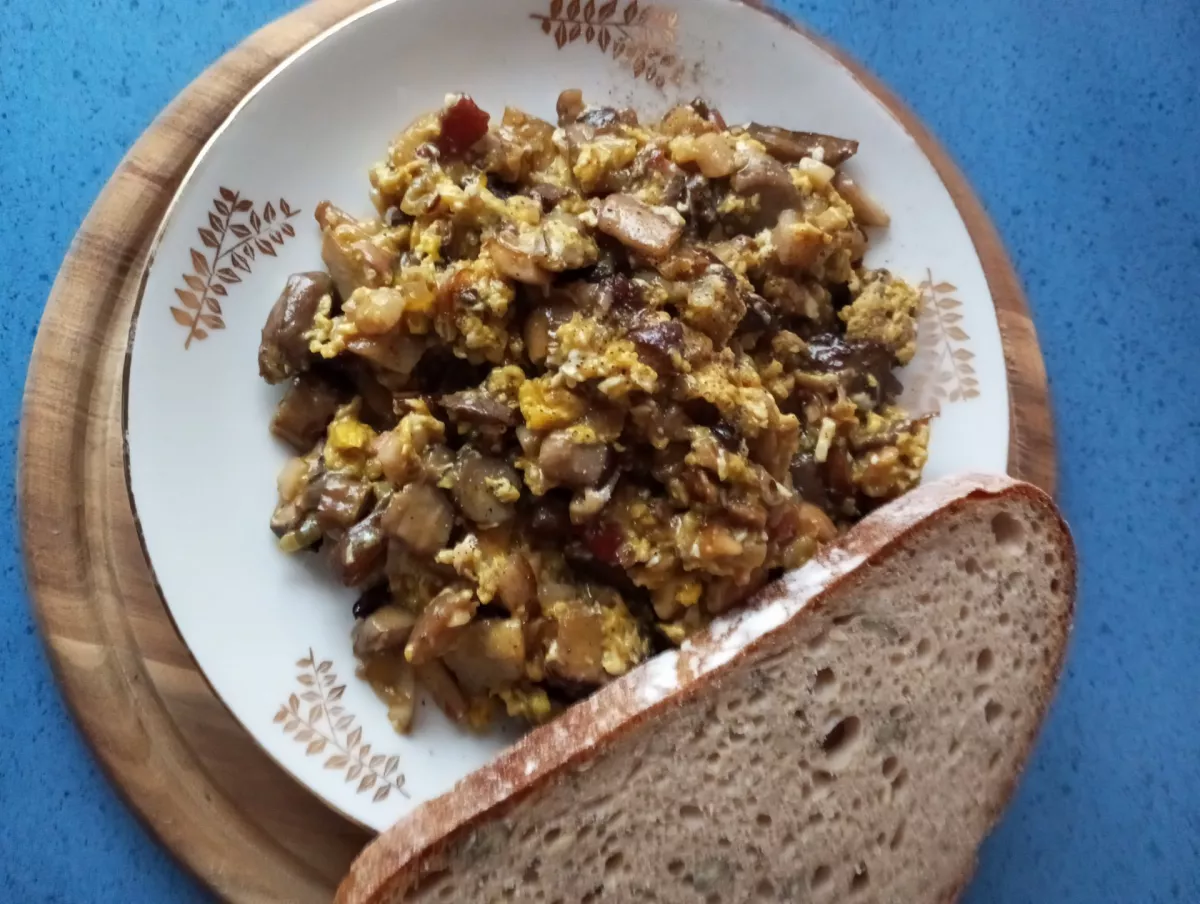 Dnes k snídani taky smaženice a domácí kváskový chleba.😉