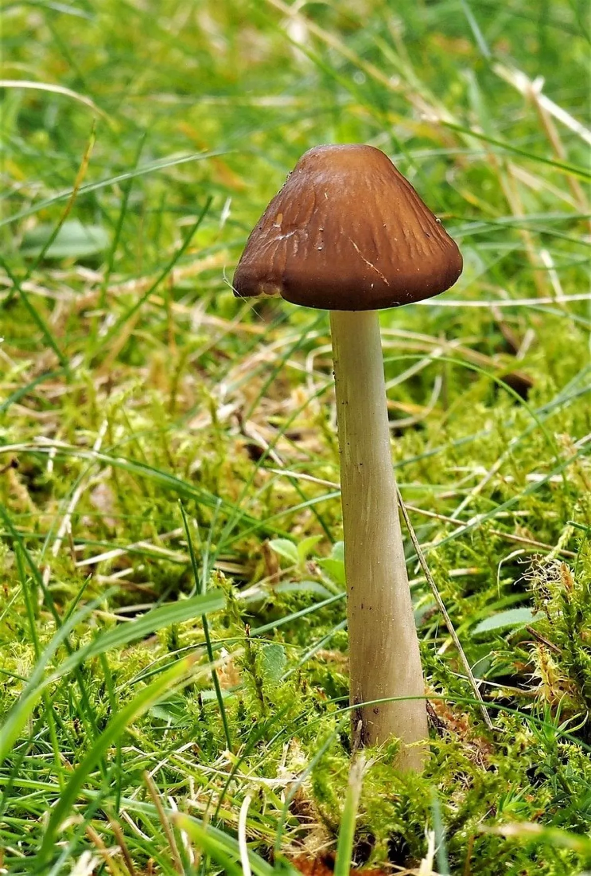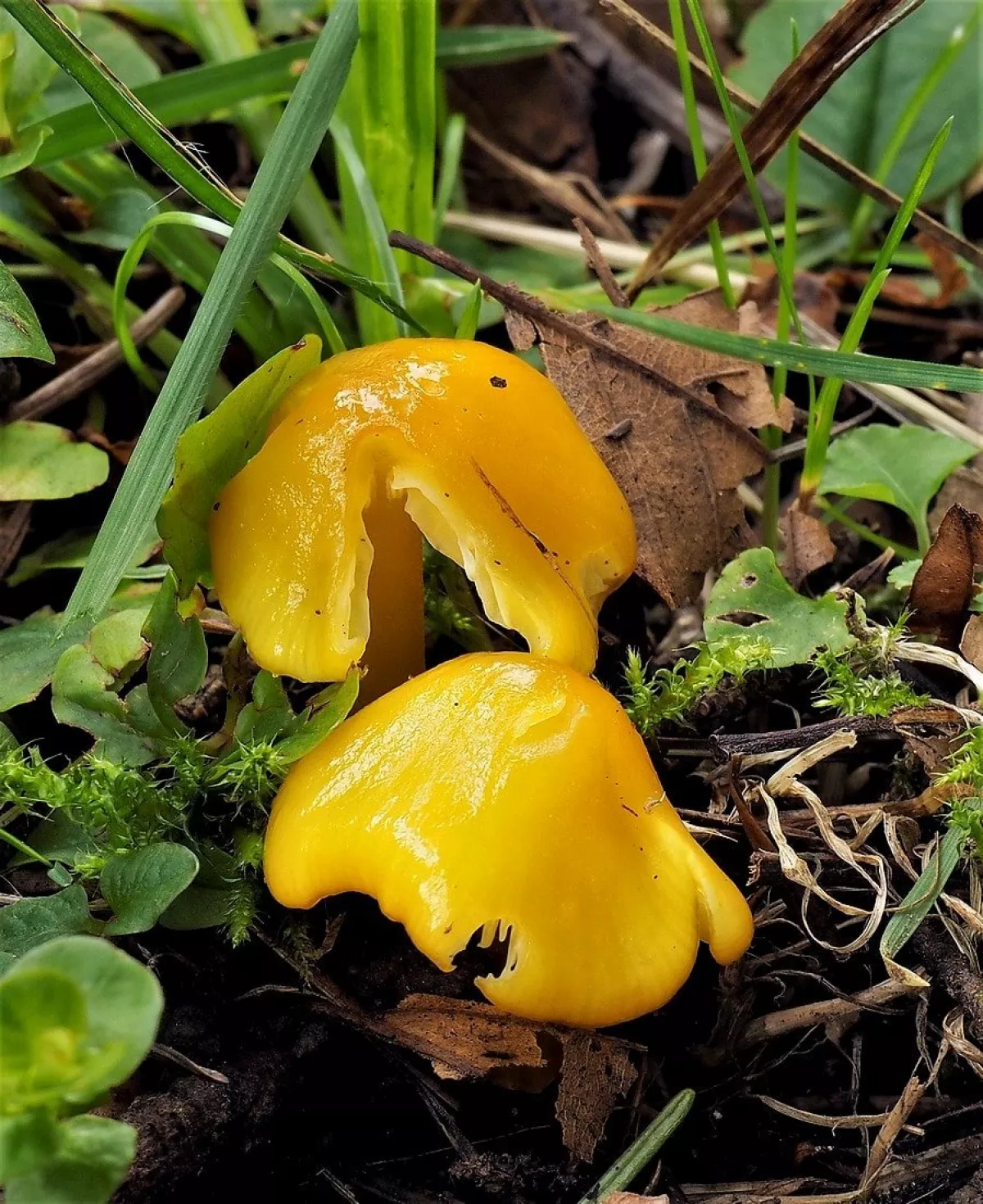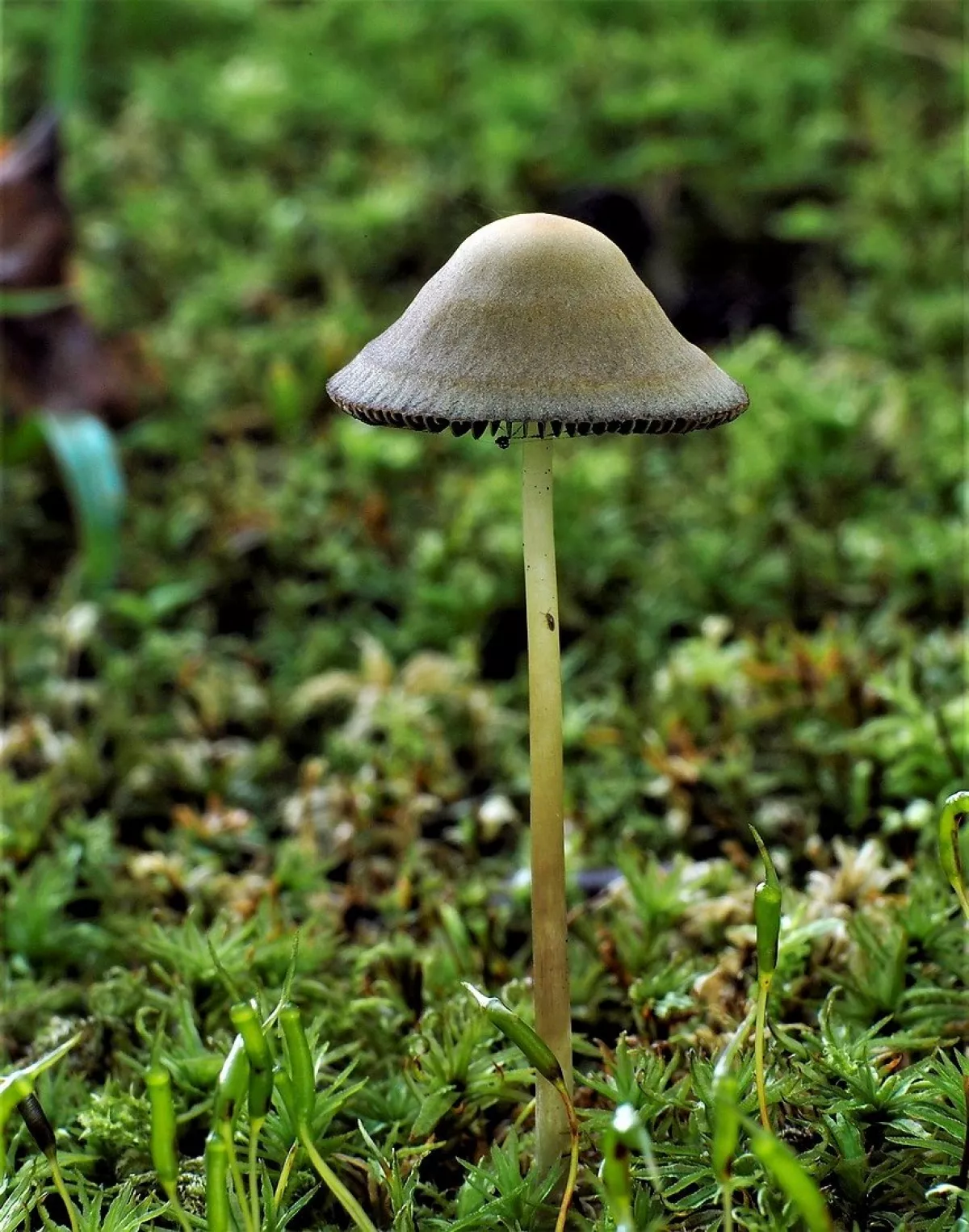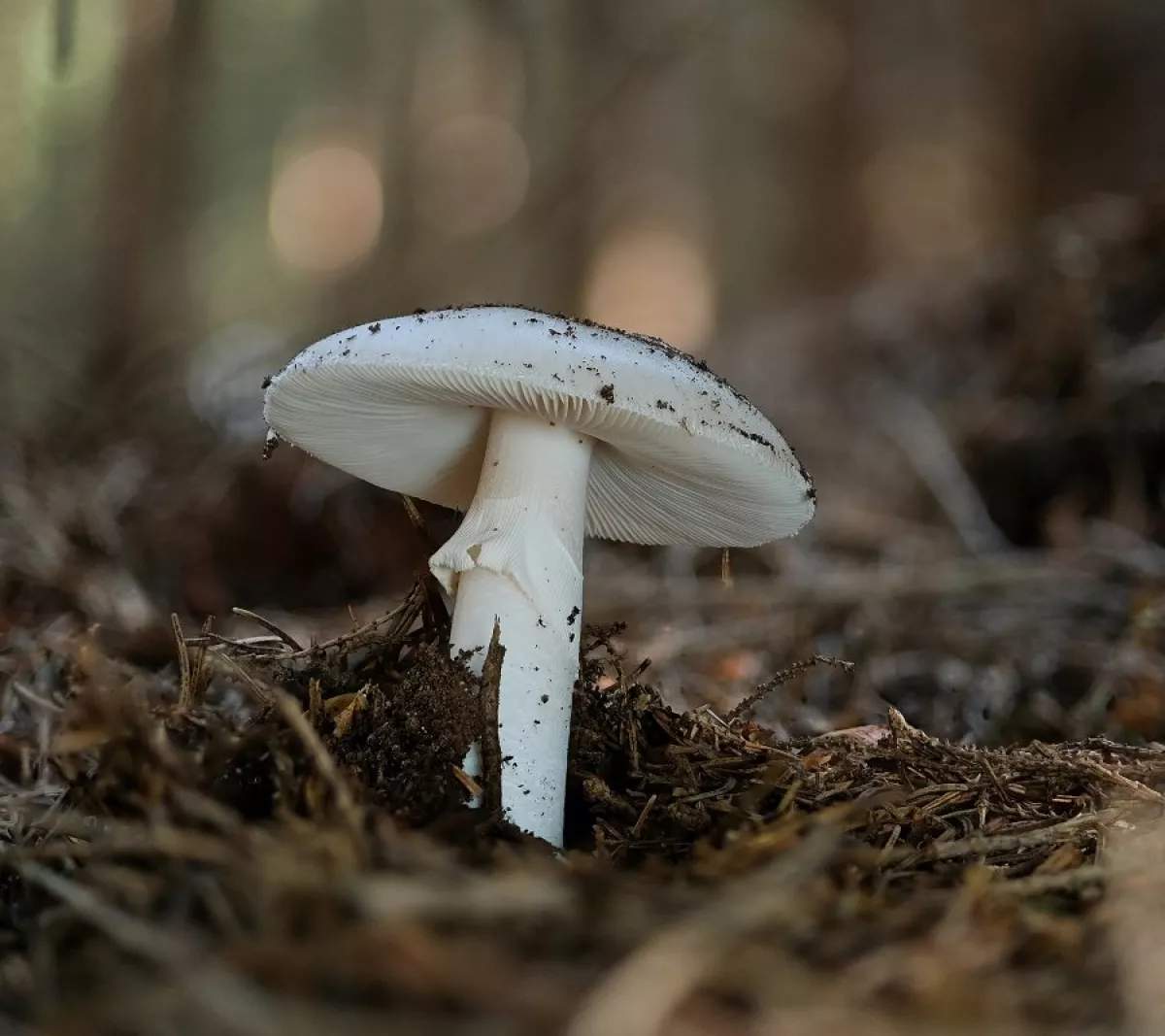této houbě se z nějakého důvodu otočily lupeny vzhůru a povrch klobouku zůstal uzavřen uvnitř
