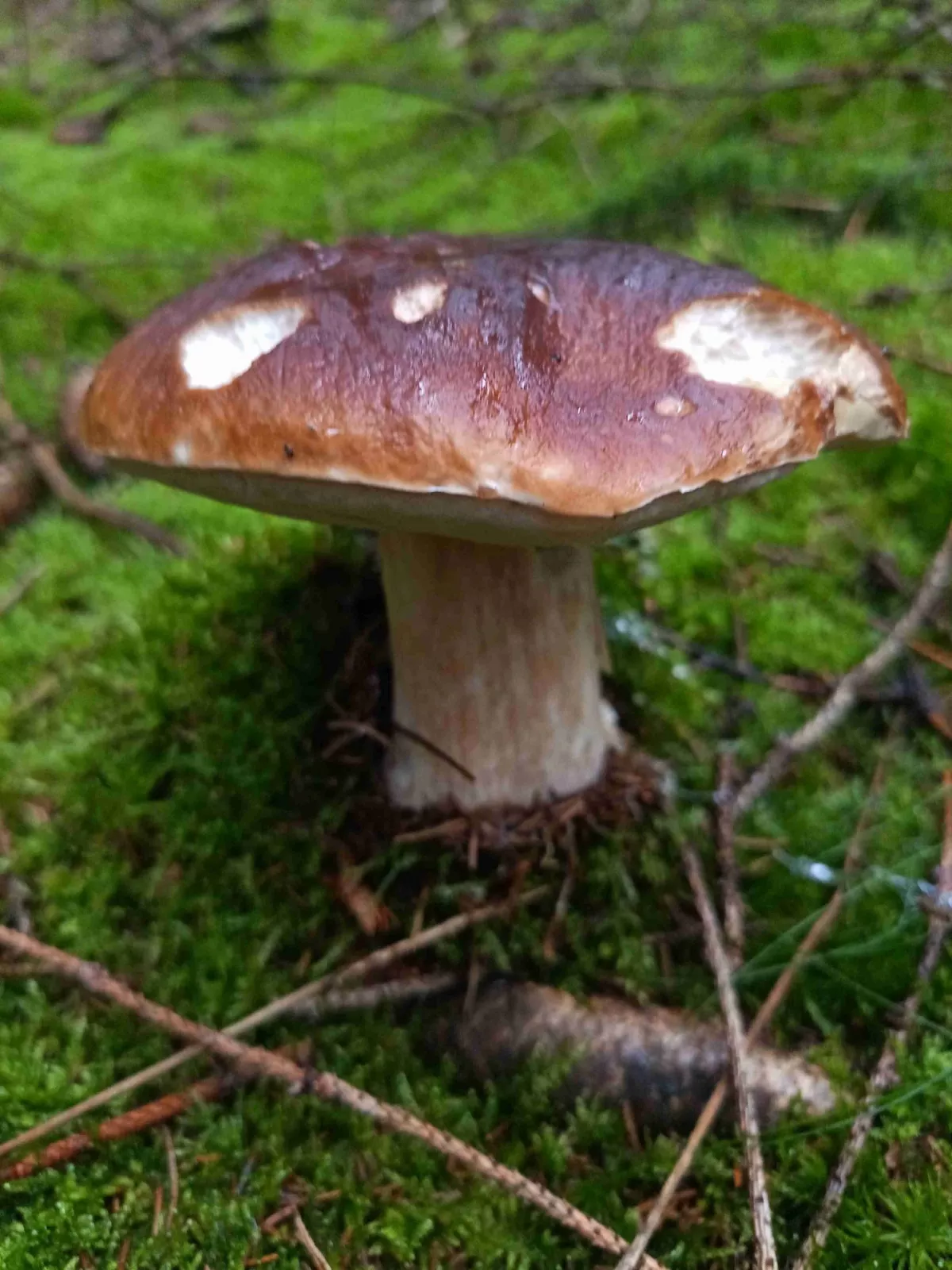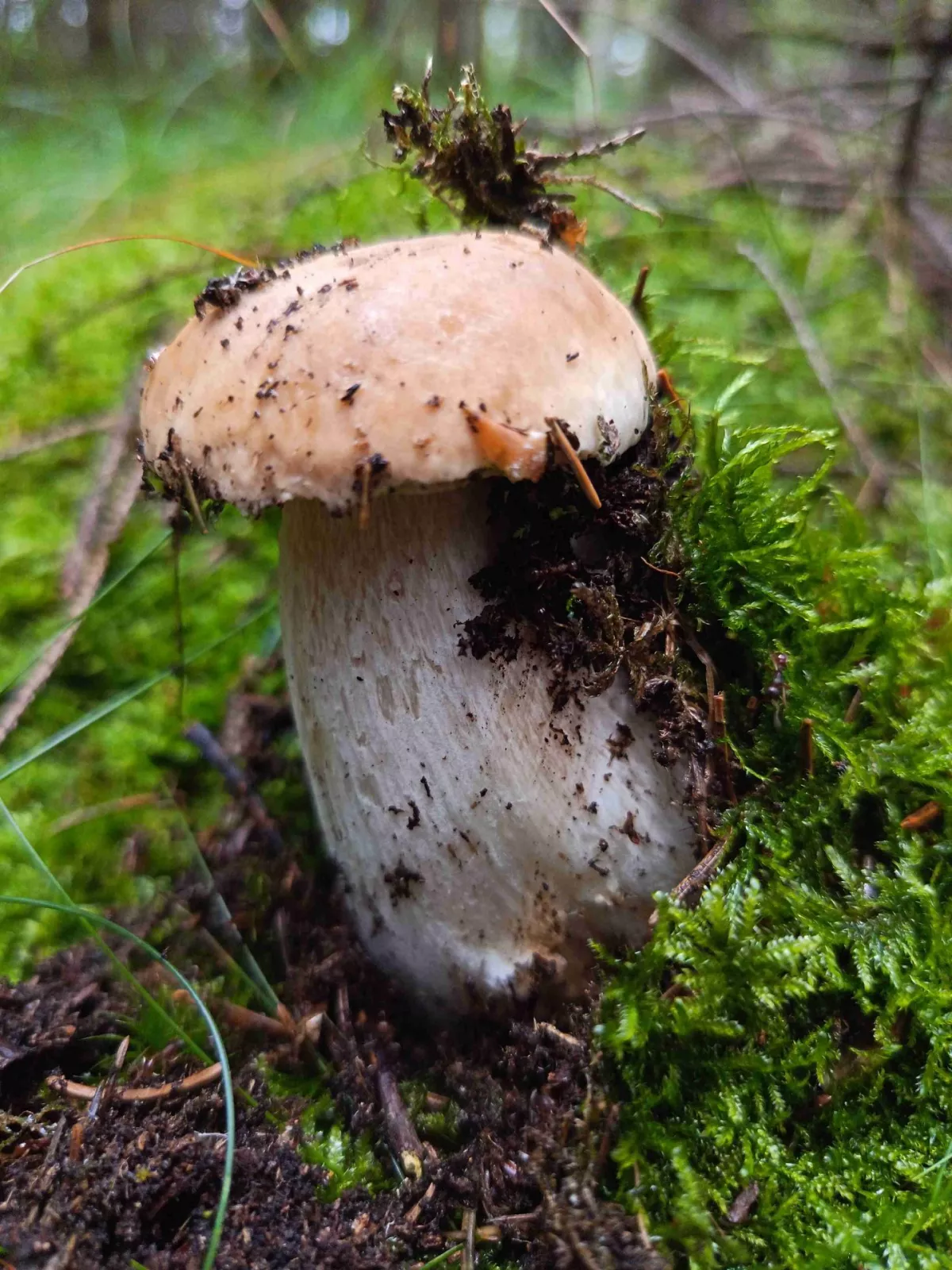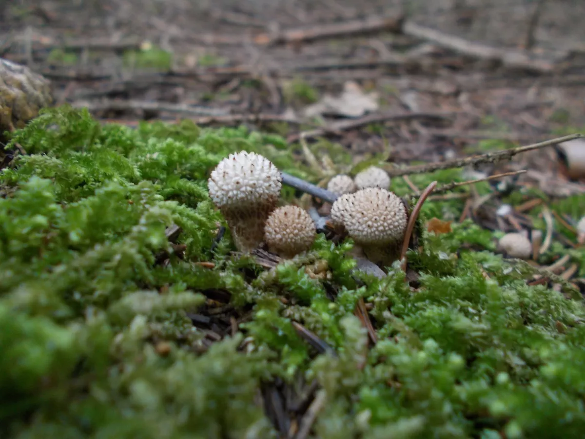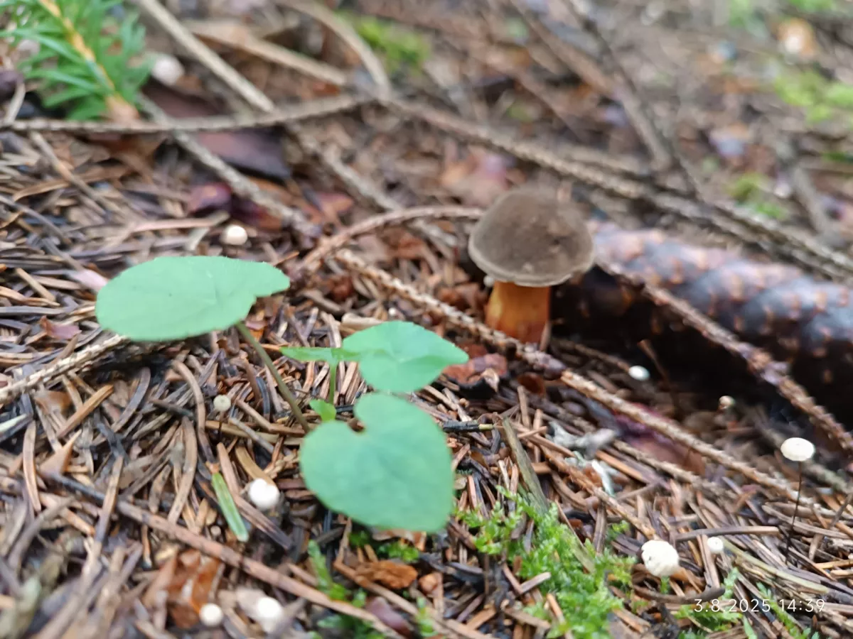 Dobrý den, vím, že to je nekvalitní fotka, protože středem záběru je ta "babka", ale neví někdo, co jsou zač ty malé bílé houbičky okolo? Byli všude po lese v okolí Jevan a Struhařova. Myslel jsem že to jsou penízovky smrkové, ale ty nejsou tak extrémně bílé, a nebo špička listová, ale nepřišly mi zase tak křehké.