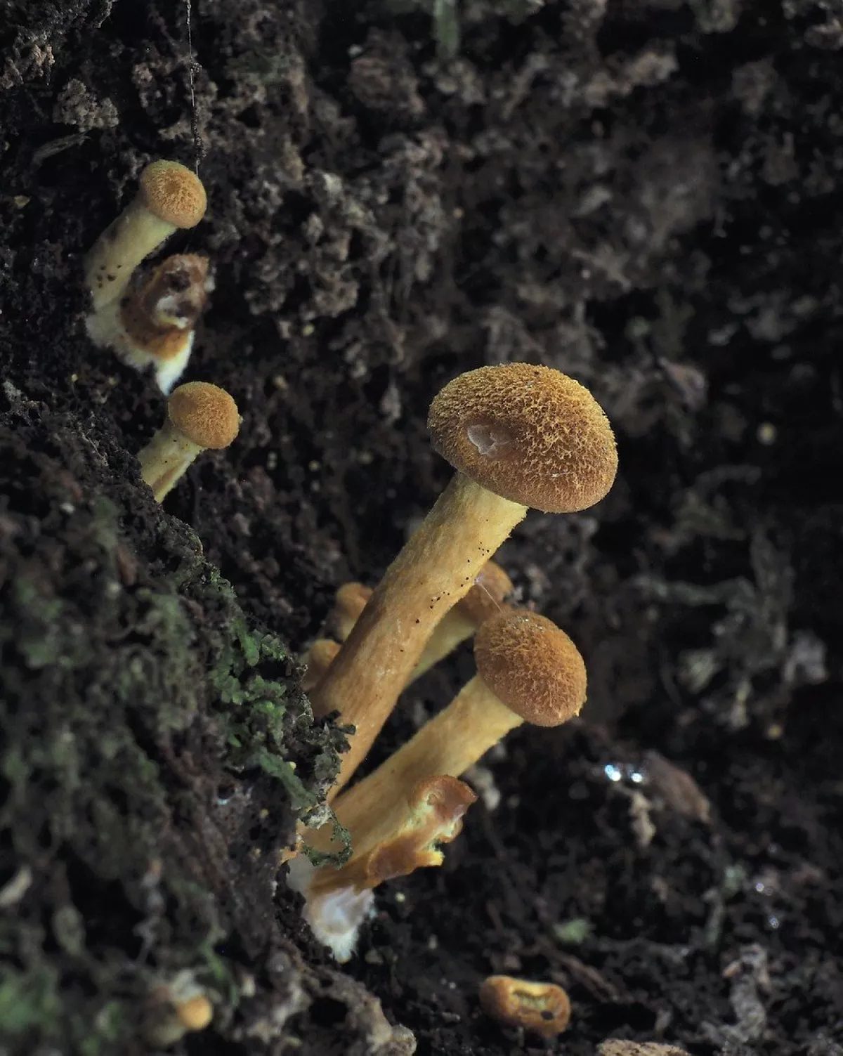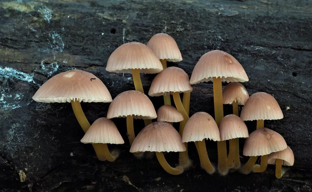 Není to vono,moc se mi nechtělo,poslední týden jsem dělal dřevo,tahal jsem olše z bažiny a včera jsem nakládal patnáct metrů na vlečku,nohy moc neslouží.Chtěl jsem si dnes udělat volno,ale je tři dny po dešťích,tak jsem k večeru vyrazil.Prošel jsem celé pastviny a rokle nad barákem a to je vše,co jsem našel.Ale je to na dobré cestě.Fotky za moc nestojí,je to pod zelenou klenbou v zapadajícím sluníčku,někde už byla skoro tma.Válečkovka je hrozně maličká a ty malé helmovky mají tak tři,čtyři mm.