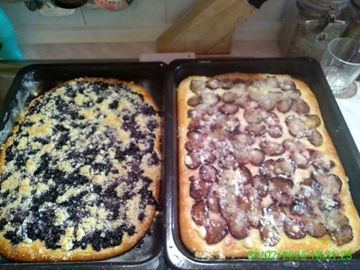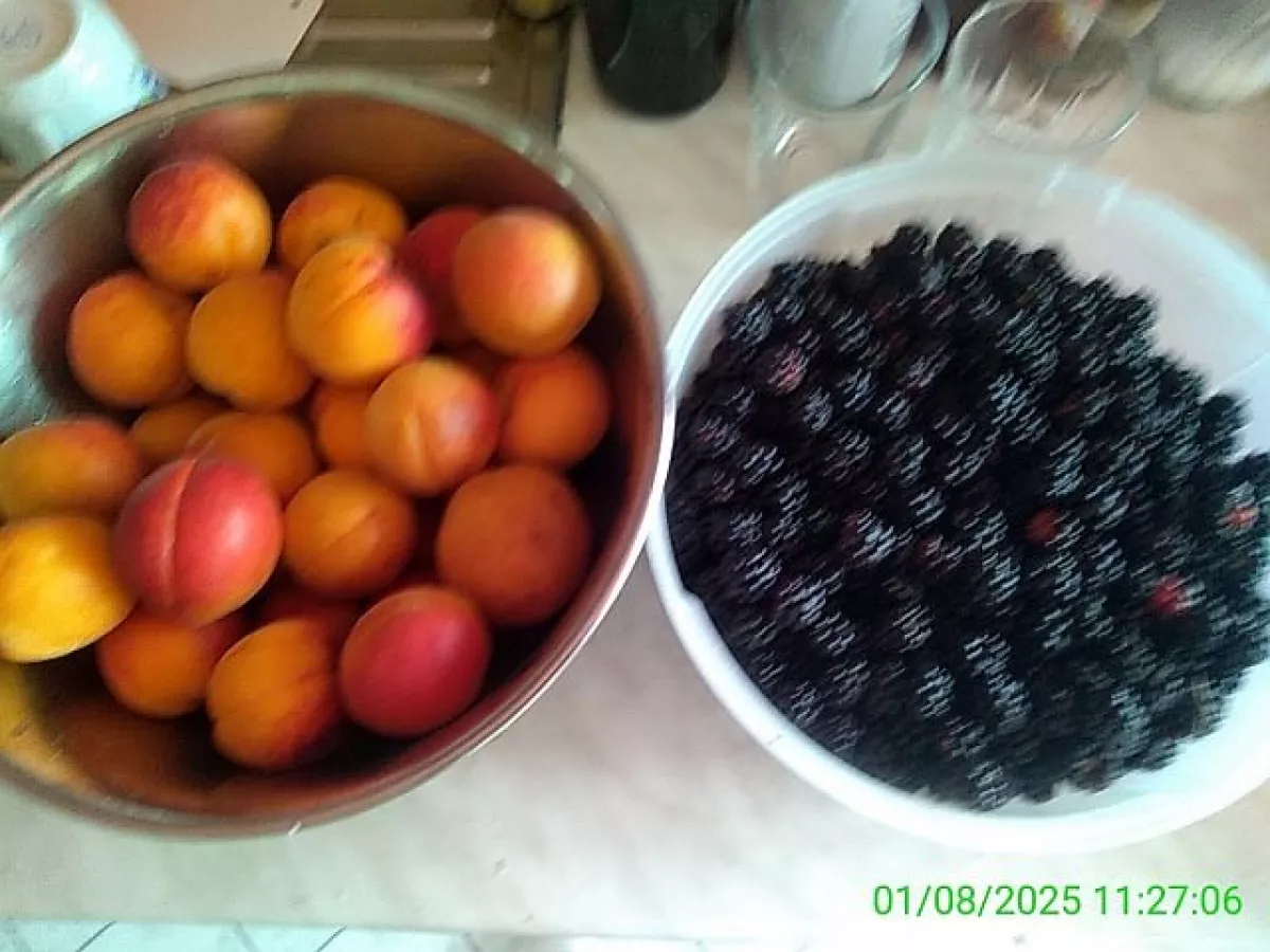 Paráda, já to mám podobně. Místo ostružin maliny a místo broskví švestky a ryngle.