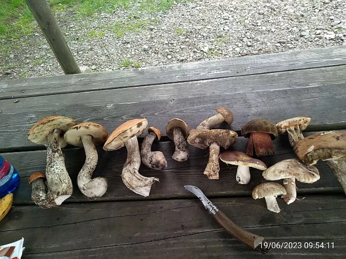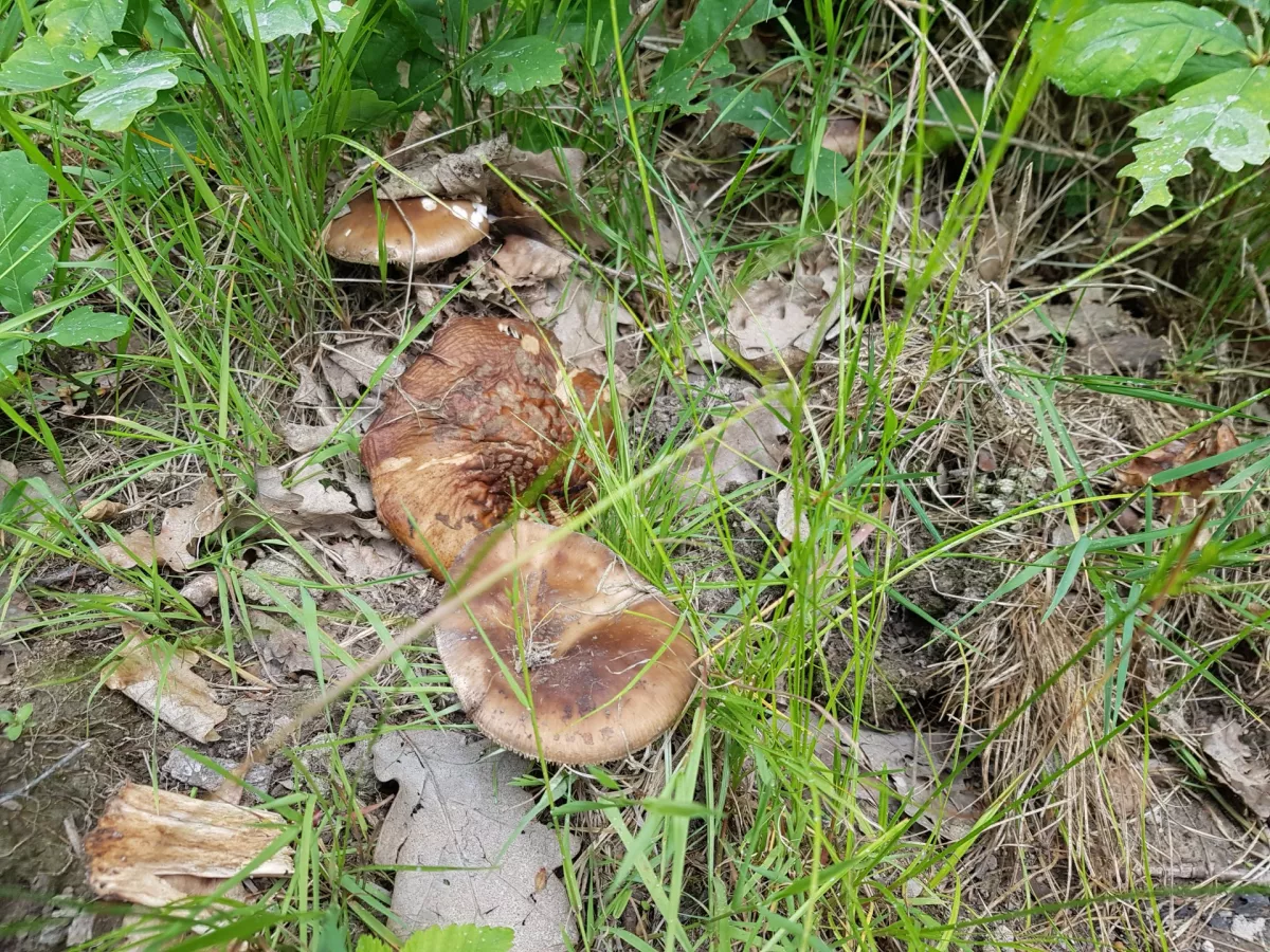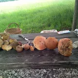 Dnes jsme potkali hlavně šedivky, pěkného masáka, malého klouzka a ta oranžová houba bude asi štítovka žlutá.