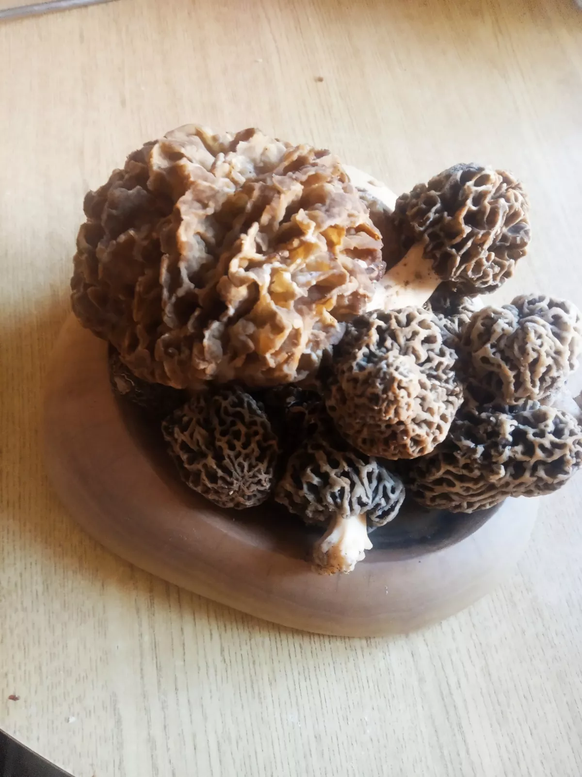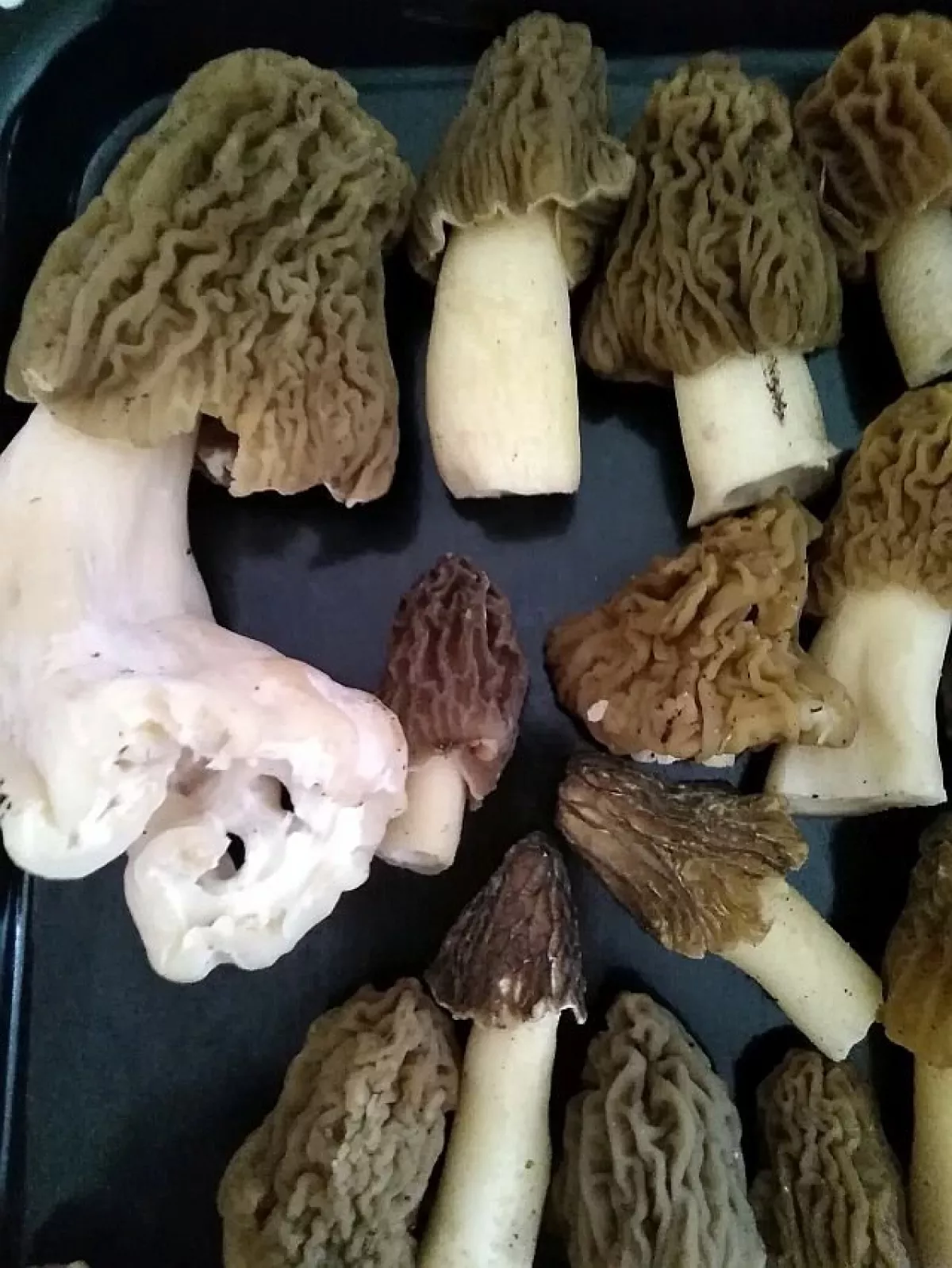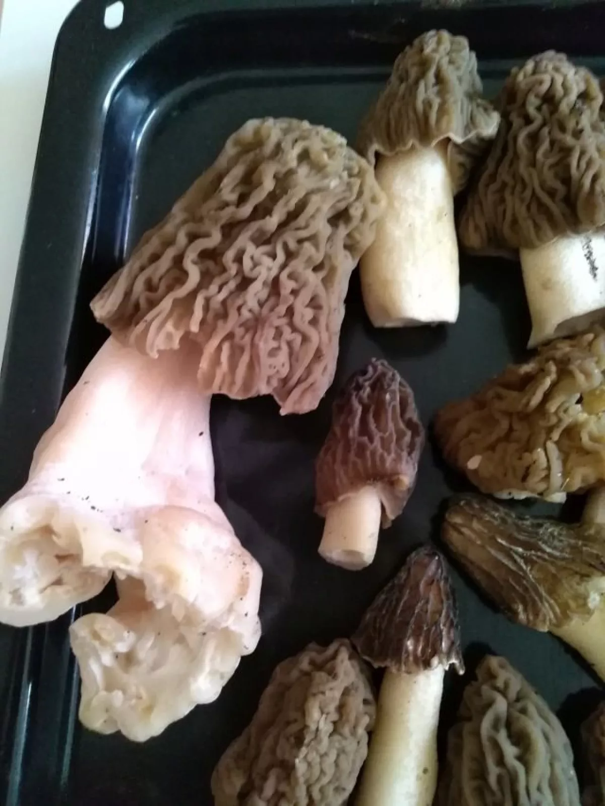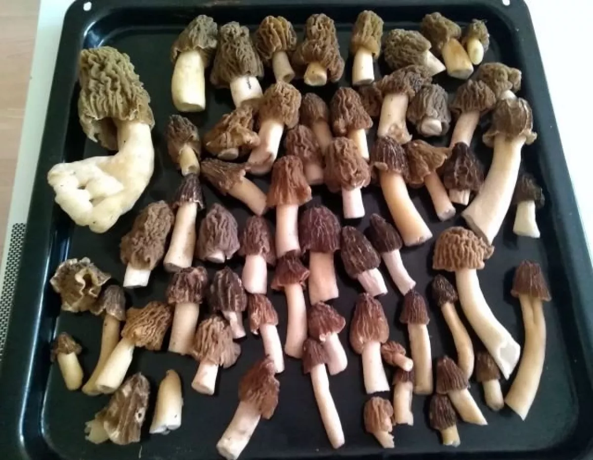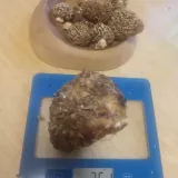 před týdnem ještě jani ťuk,tak dnes jsem to šel očumět a smrže začínají.a jako každé jaro jsem si na tom fleku při pohledu na torza vatovců vzpoměl že jsem je opět zapoměl loni sezbírat.před asi pěti lety jsem tam při sběru smržů našel dvě vatové koule.tak jsem si s nima kopal jako s balonem a od tý doby pokaždé na jaře když je sezonu před neseberu tak s nimi hraju fotbal.věřte nebo ne ale asi to fakt funguje protože ted jich tam je plný lesík.zkusím jich pár sebrat a rozházet někde jinde v podobným biotopu.na nejlepším fleku na smrže byl jen jeden ale zato bigbambule,viz váha.s desticema se opět roztrh pytel.překvapilo že vše osychá přesto že dost pršelo.pokud se něco nepodělá tak za týden to bude na košík. velký půjde zítra na pekáč pod maso a ostatní na smaženici s bažantími vejci.tak ať se daří