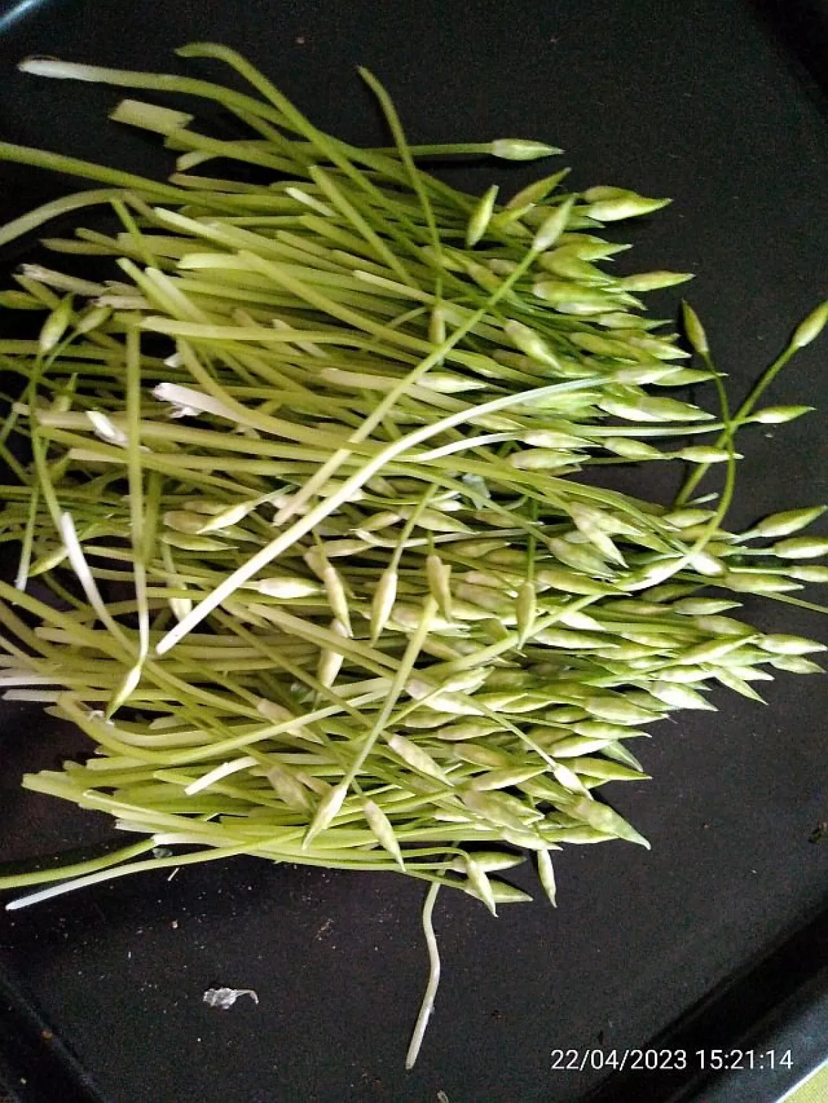 česneku skoro jak u nás.hi.kapary už nerobím bo jsem sbíral jen pupeny a to je jak sbírat v srpnu rosypanu pšenicu kolem cest.beru jen trochu čerstvého na krajíc bo se sádlem je to dobré jak cyp.pak až na koncu léta až se ůplně zatáhnou,chodím na cibulky česneku.