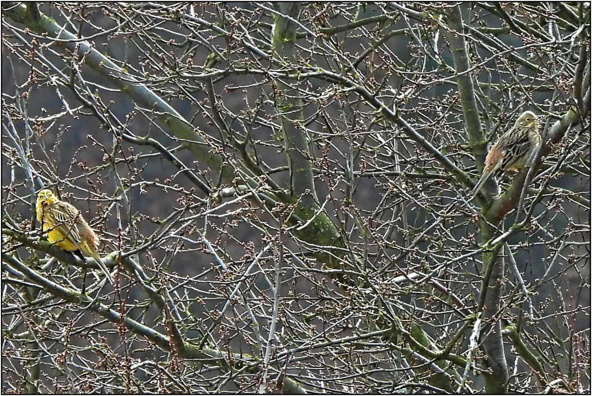 Strnadi a holub hřivnáč