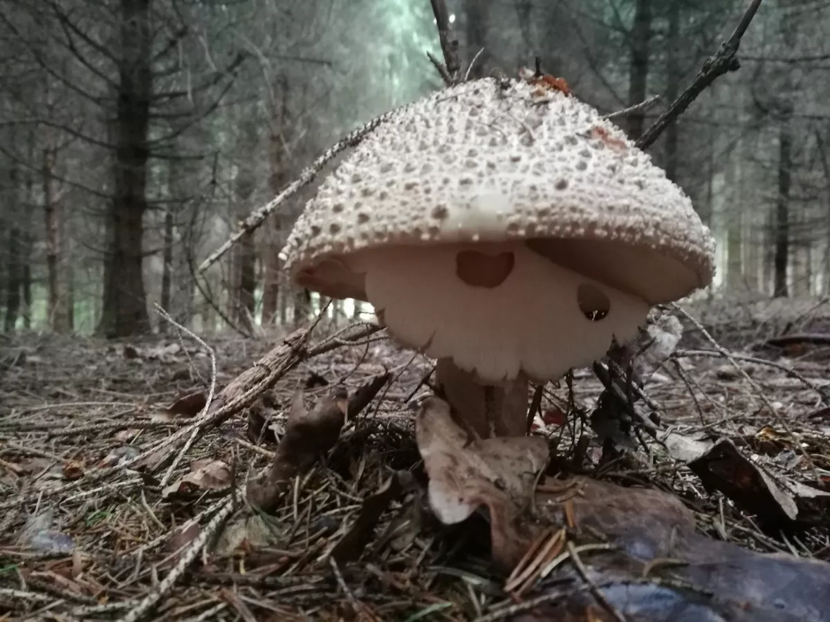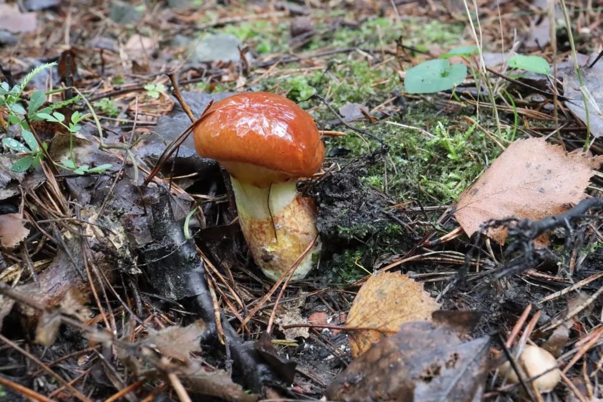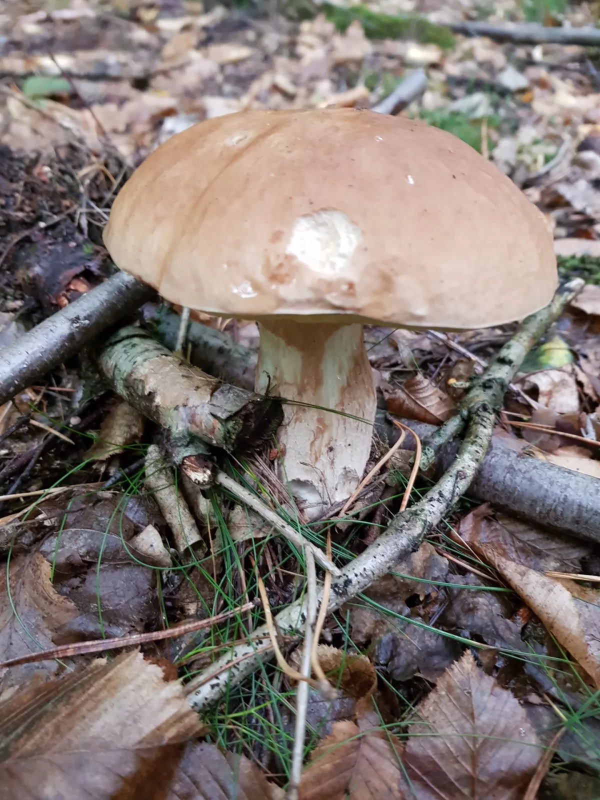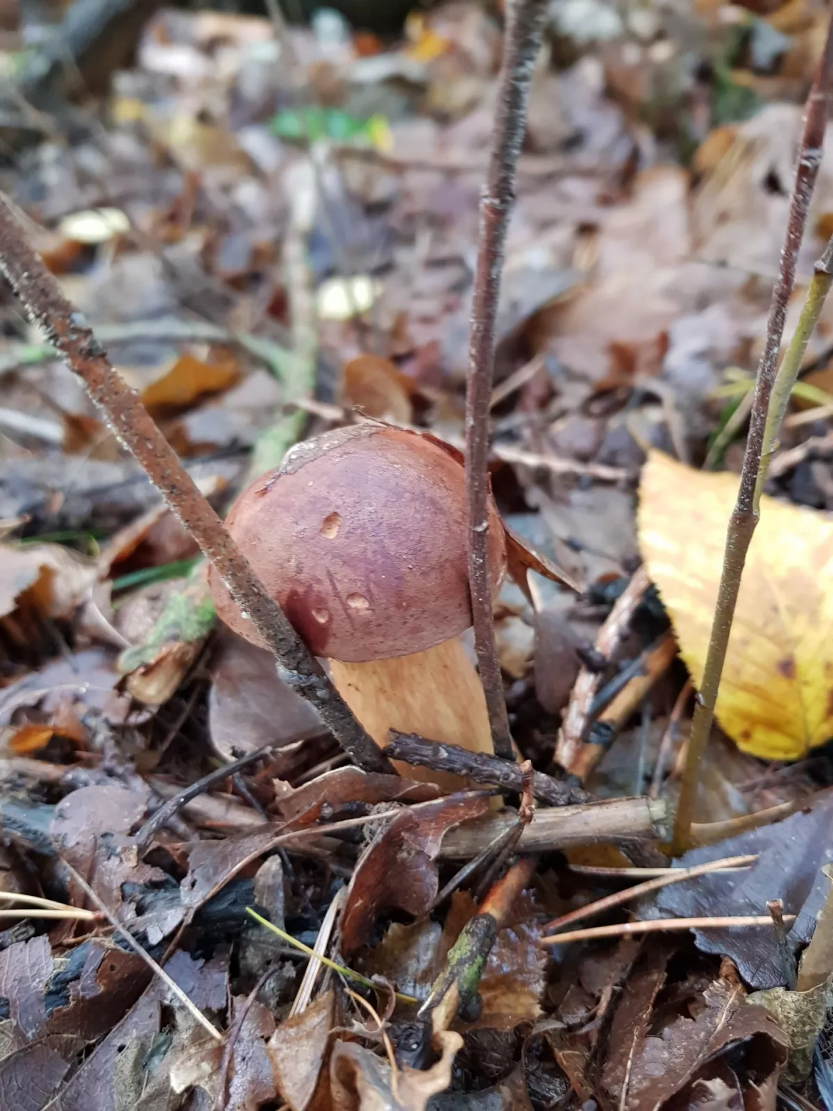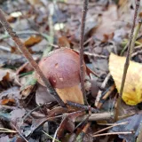 Zrovna jsem ji fotil, vy chcete hledat poslední hřiby a já hledám první, konečně jsem jednoho prcka našel. Křemílci nula.