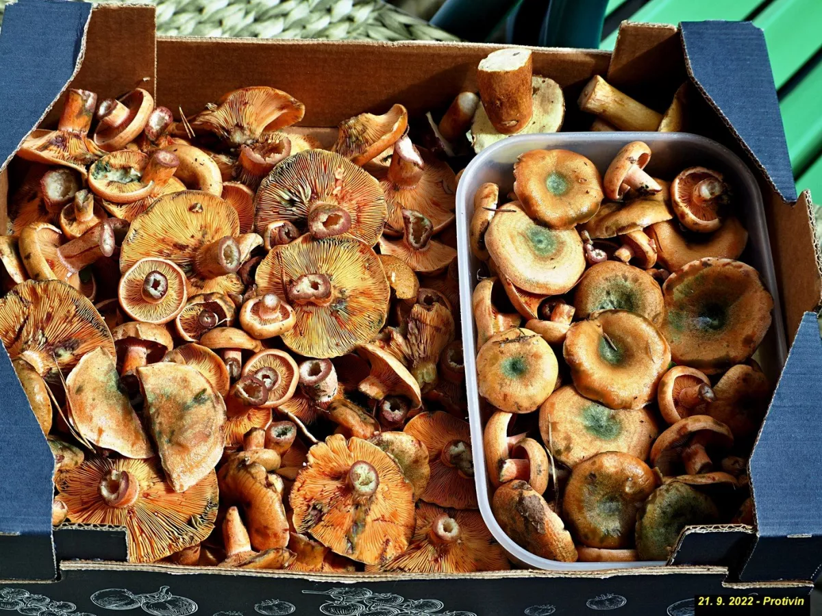 Přestalo na chvíli pršet, tak mi taky nedalo a na chvíli jsem mrknul za město na žabinu. Gaďorů je plný les, akorát že většinu stejně neznám. Nevíte náhodou co je číslo jedna a dvě ? Sytě žlutá barvy i uvnitř na řezu. Zítra zkusím mrknout na poslední hříbky, samozřejmě pokud zas nebude valit. Mějte se.