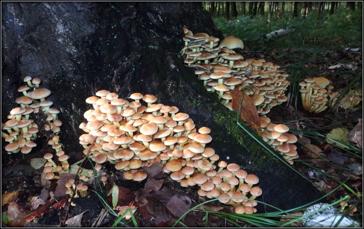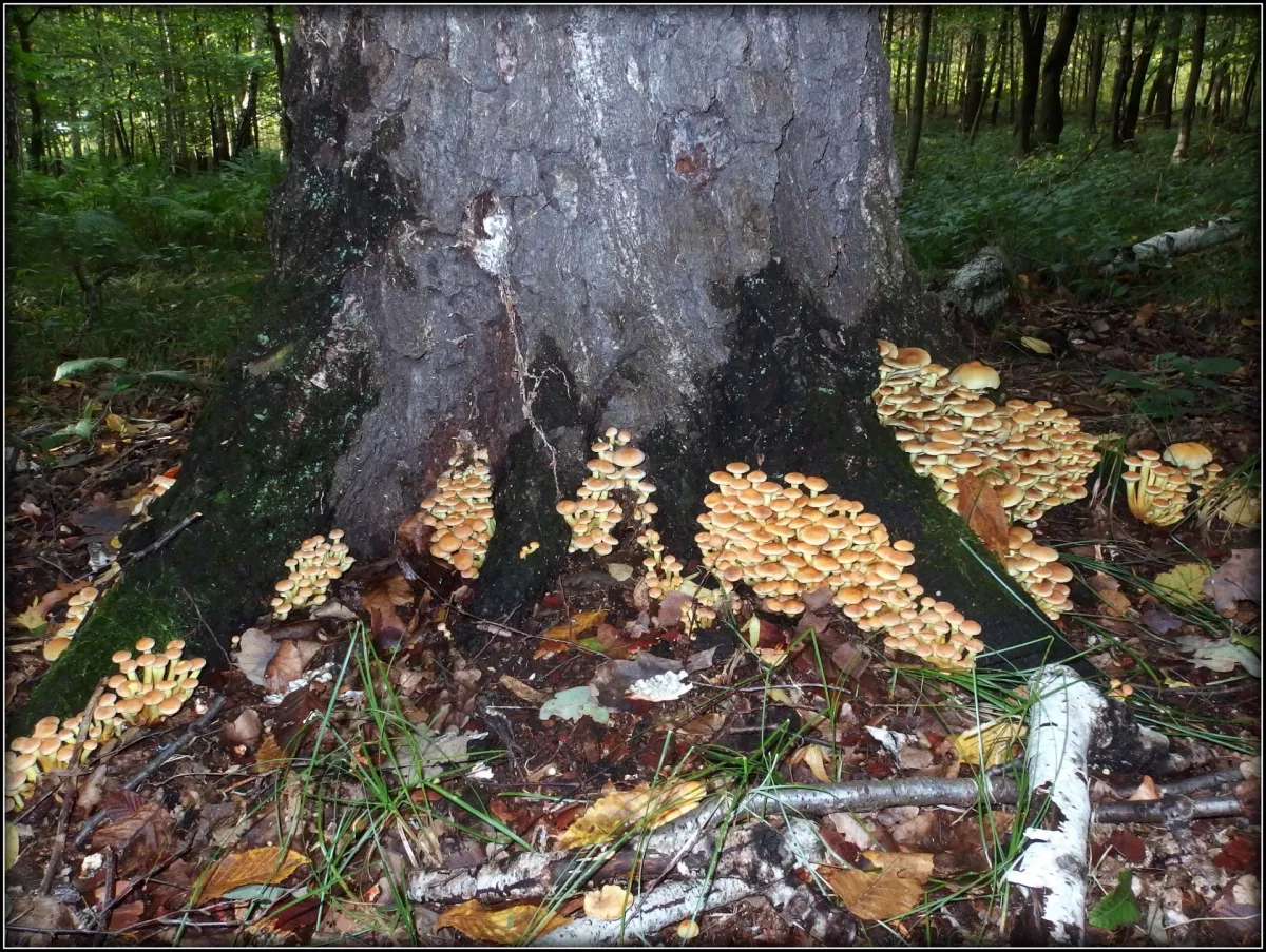 Dnešní fotky. Zajímavé je, že na té bříze jsme letos dvakrát našli hlívu plicní a teď tam roste jiný druh hlívy. Tam musí být těsno.