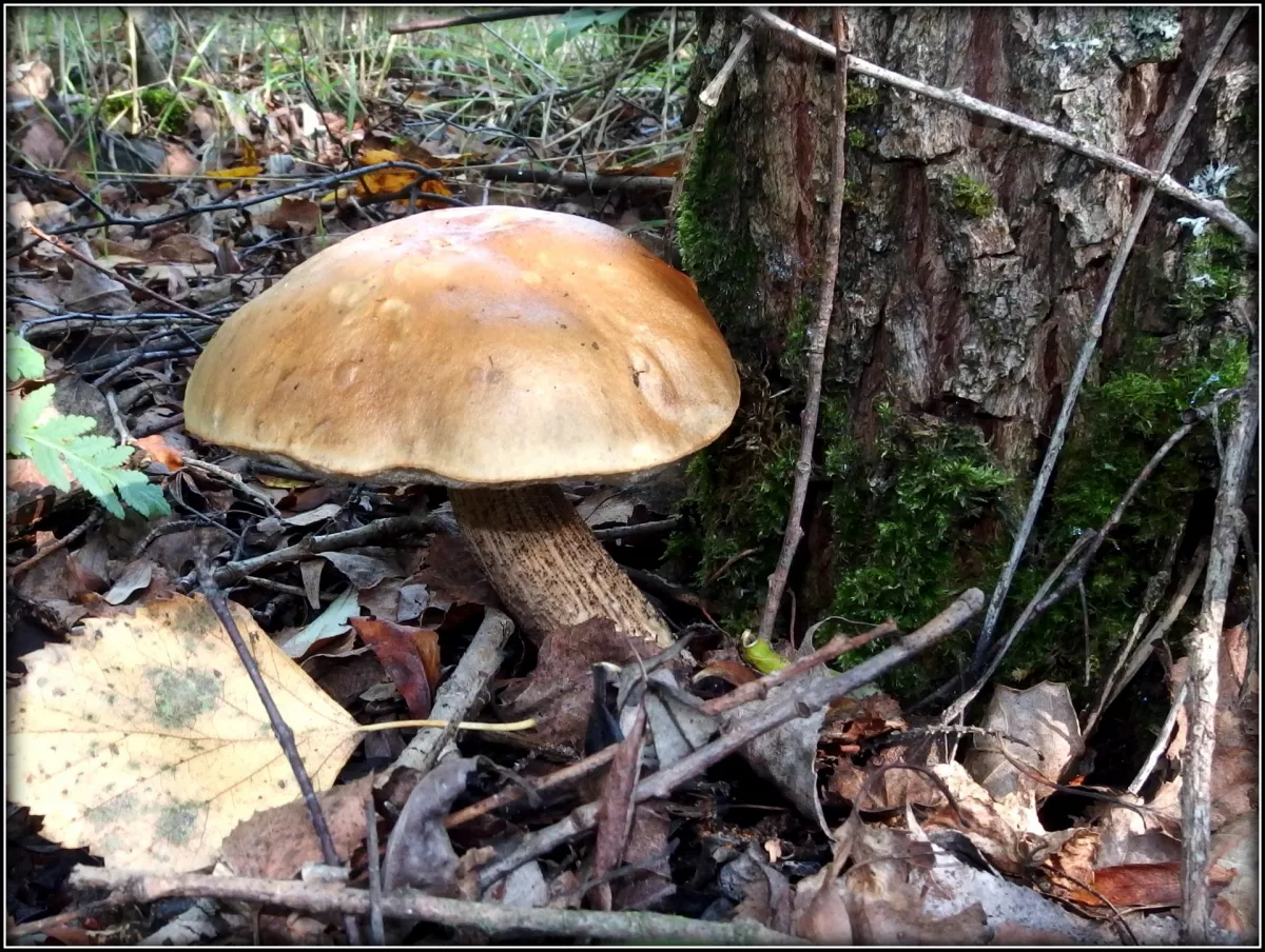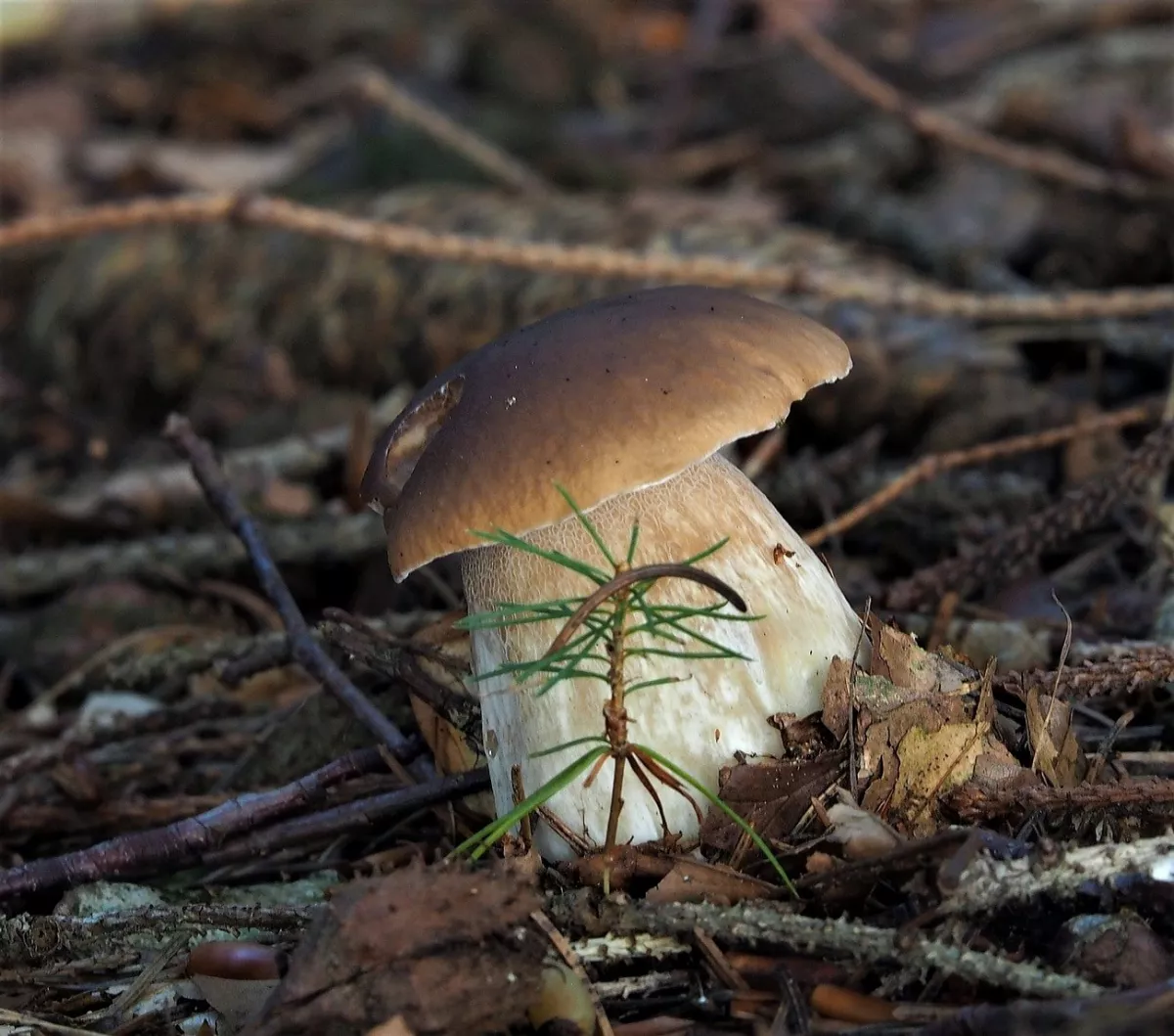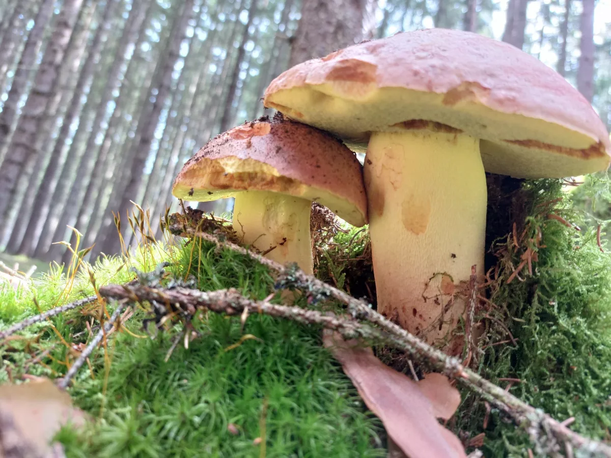 Hřib královský a ve smrčině? HAHA. I malý hříbek pár cm na velikosti, když nafotím na celou fotku vypadá jako obr.