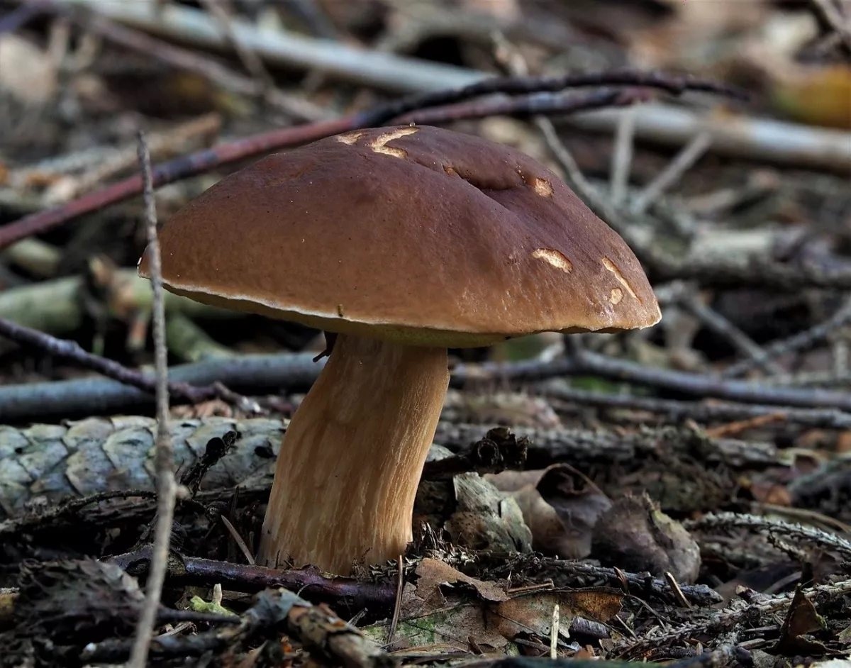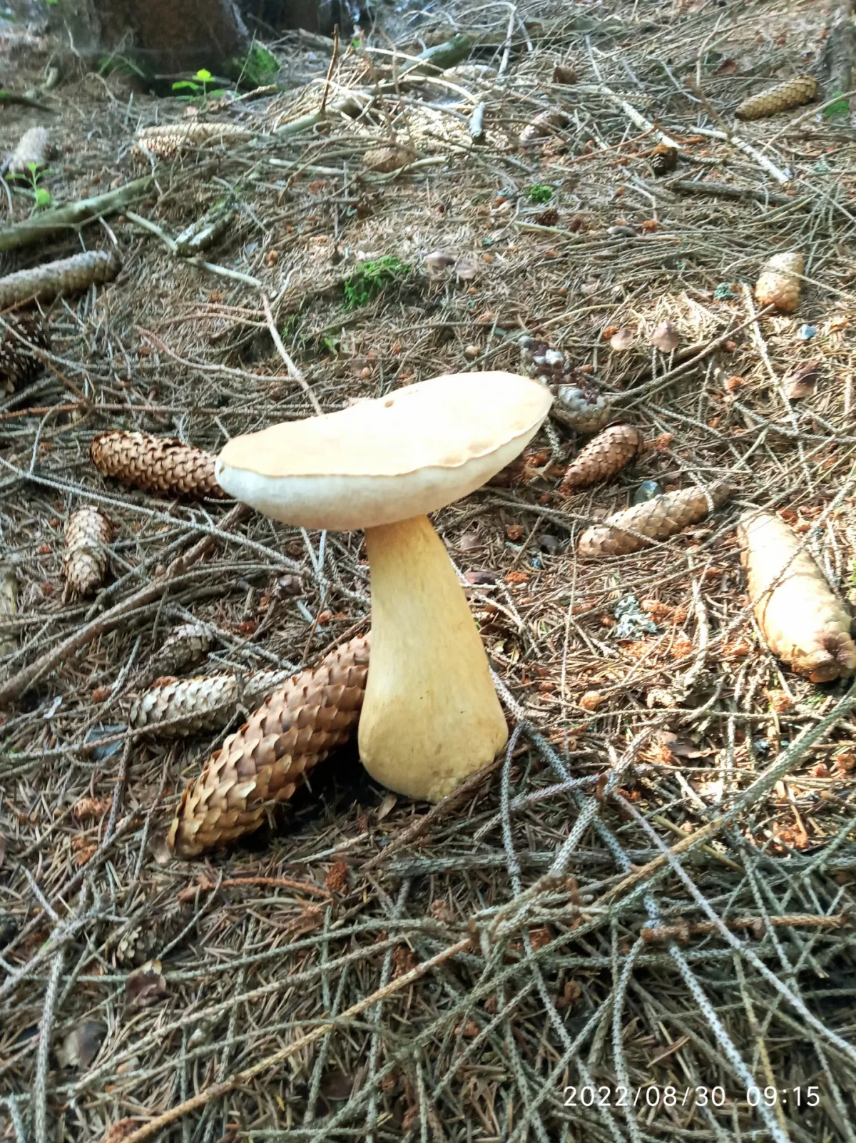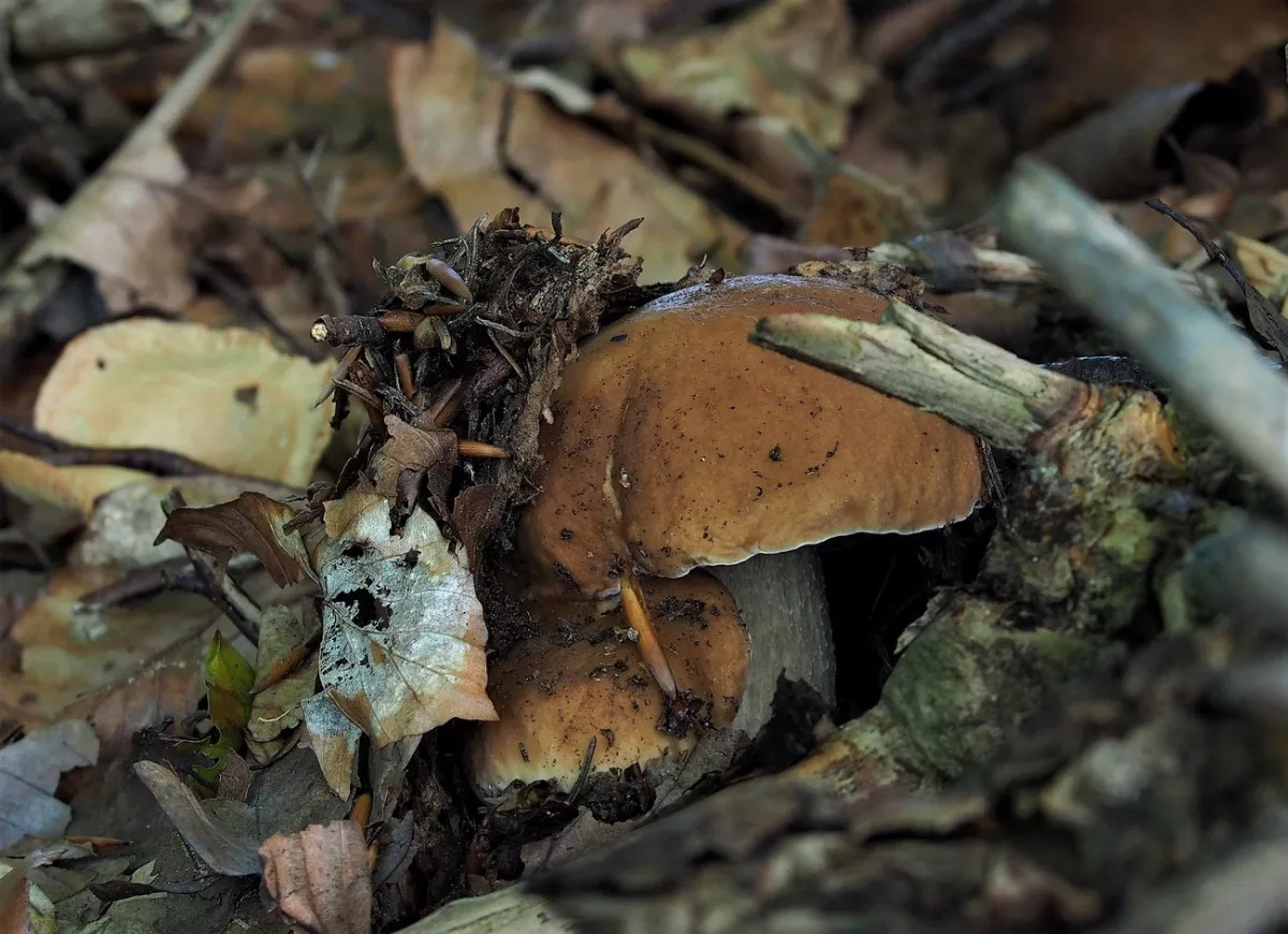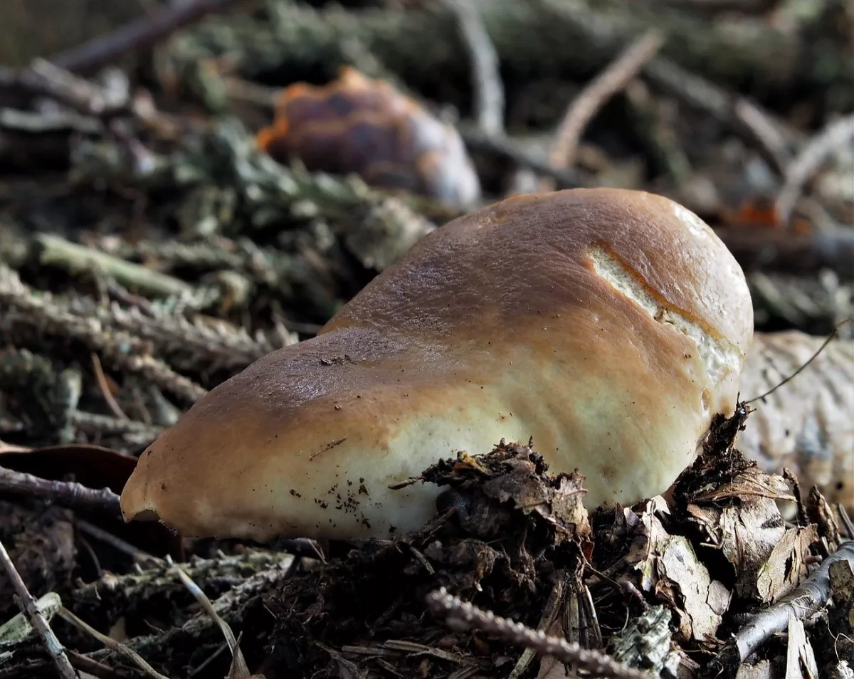 Hřib královský a ve smrčině? HAHA. I malý hříbek pár cm na velikosti, když nafotím na celou fotku vypadá jako obr.