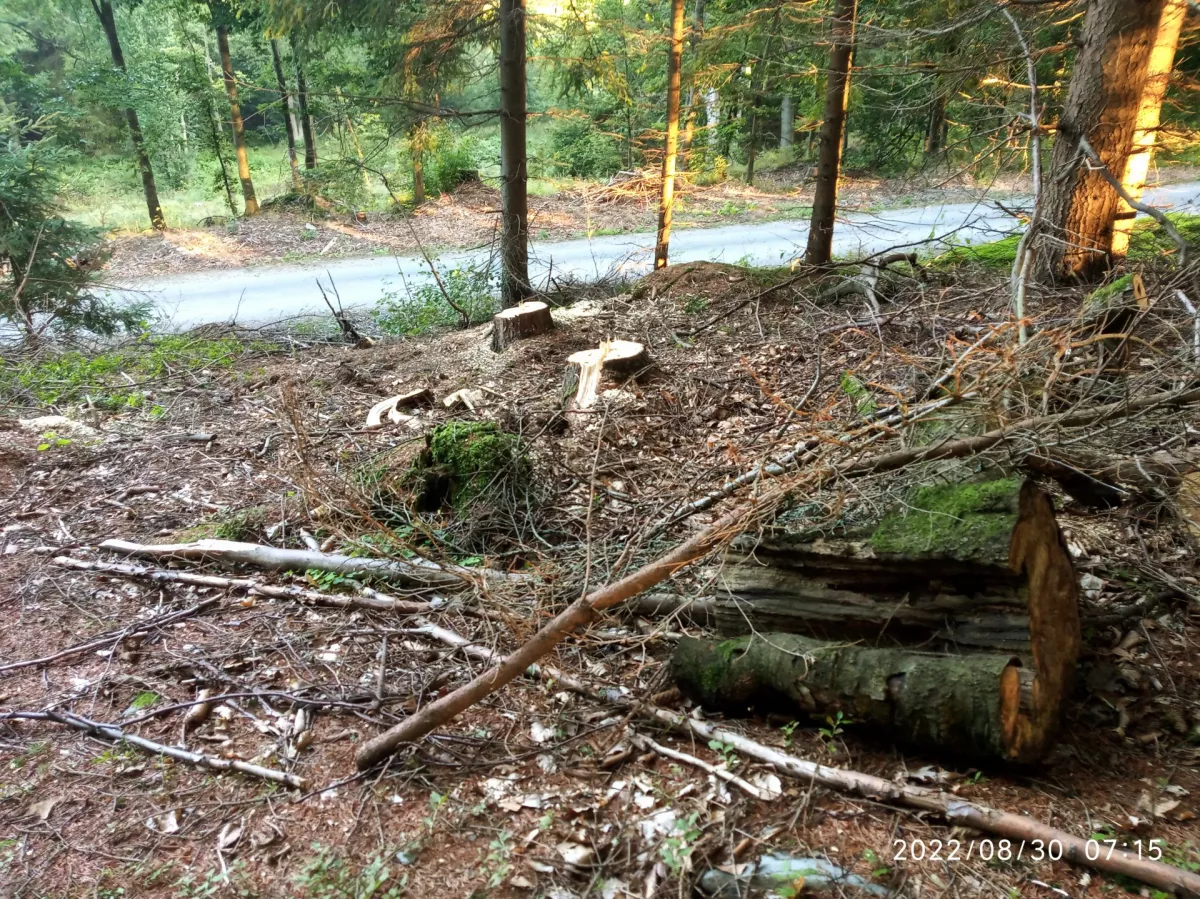 Jela jsem do lesa natěšená a hned na kraji mě čekalo první zklamání. Lesáci se opět činili, vykáceli další kus lesa. A co víc...tam, kde rostly křemenáče, udělali průklest, takže břízky, smrčky leží na hromadách a les je v těch místech neprůchodný. Po deštích zatím moc hub neroste. Většinou jen holubinky, pár růžovek, znovu začínají klouzci, jen jeden malý smrkáč, hrst lišek. Zato narostlo dost hořčáků.