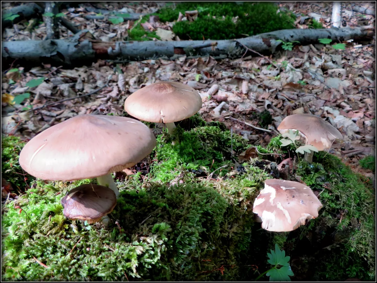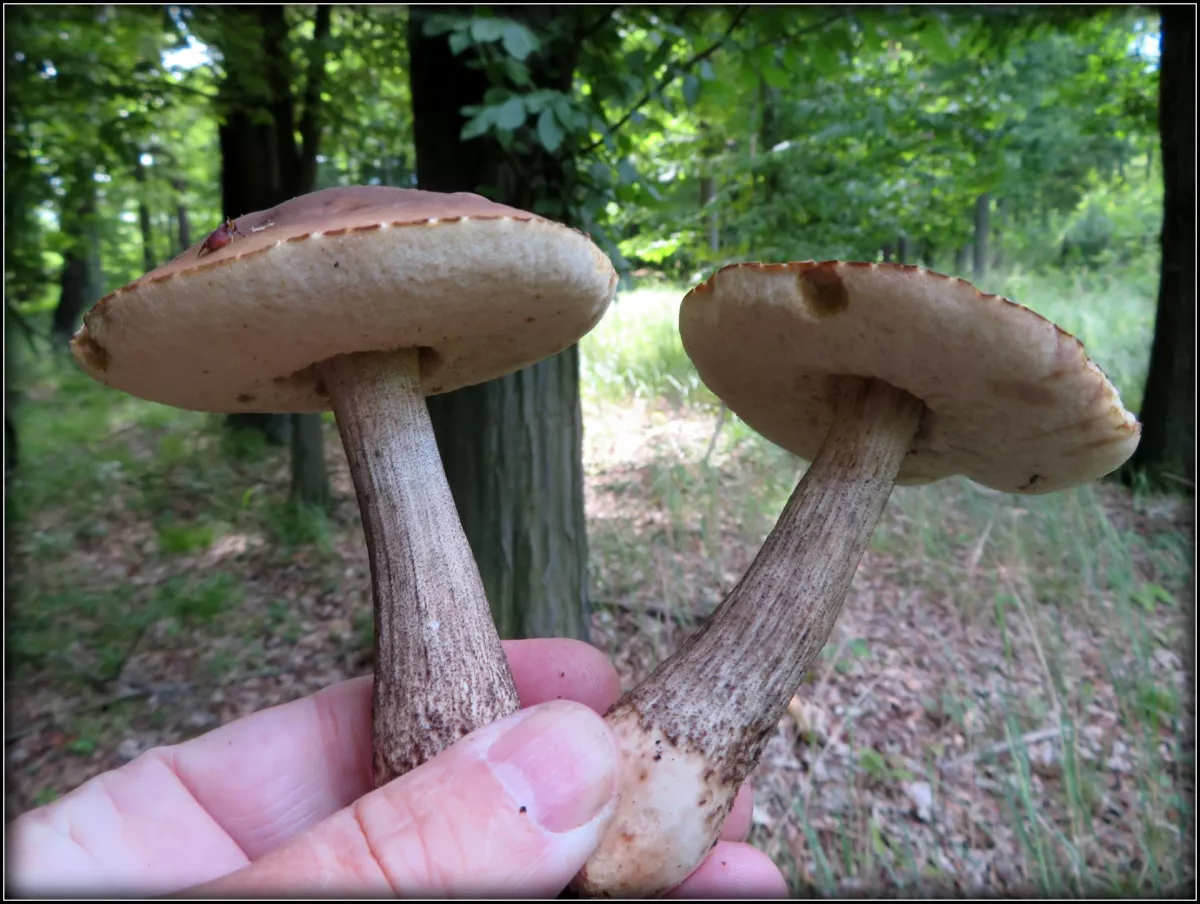 Zdravím ze Slánska, dnes na skok v lese ještě před bouřkou. Hub pomálu i když je celkem vlhko. Byl jeden kozák, jeden klouzek, potkal jsem hnědáka Sch. , outkovku hrbatou, hlenku, krásný náprstní červený, šneka. Zaujal zlomený buk a tak přemýšlím, zda jeho napadení troudnatcem vedlo k zeslabení kmene, či byl napaden až po zlomení. Vedlejší buky napadeny houbou nejsou. MSF.