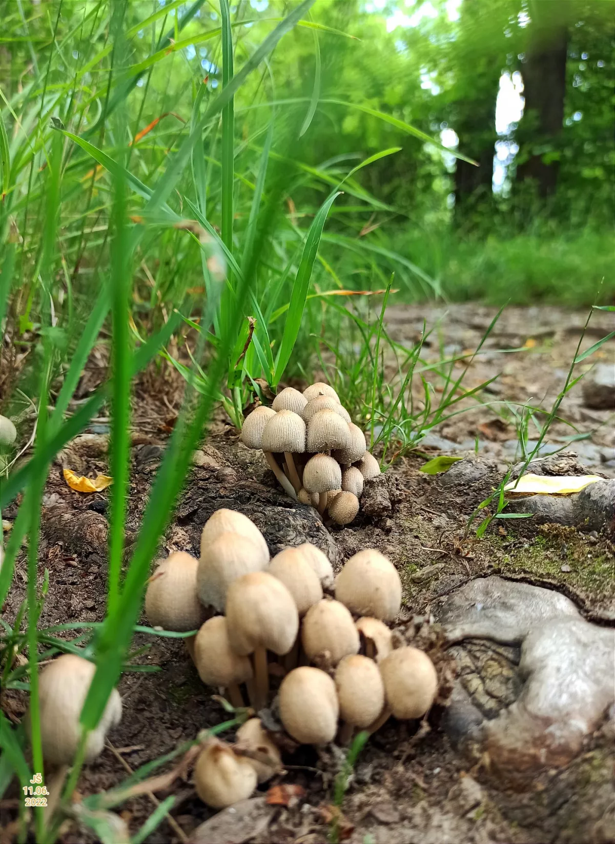 Kouknul jsem do smrčin a je tam dost sucho. Nicméně začaly růst růžovky. Podél cesty v listnatém stále žaběny. Ty jsou věčný.