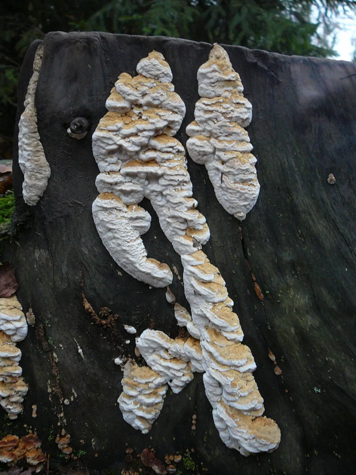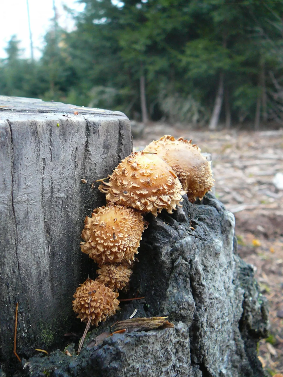 Čim víc nad tim přemýšlím, tim víc si myslím, že to je lidský výtvor. Asi někdo chodí po lese a pokládá na pařezy jídlo pro zvěř. Ty malé houbičky okolo rostou z toho jídla.