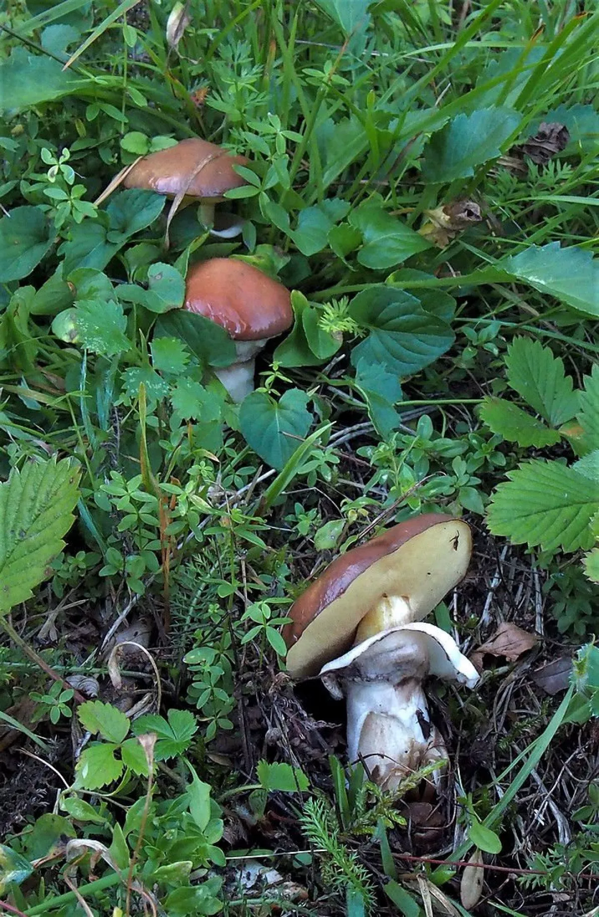 ... č. 1 by mohla být holubinka jahodová, č. 2 nějaká čirůvka, jaká nevím... (nebo šafránka)