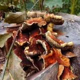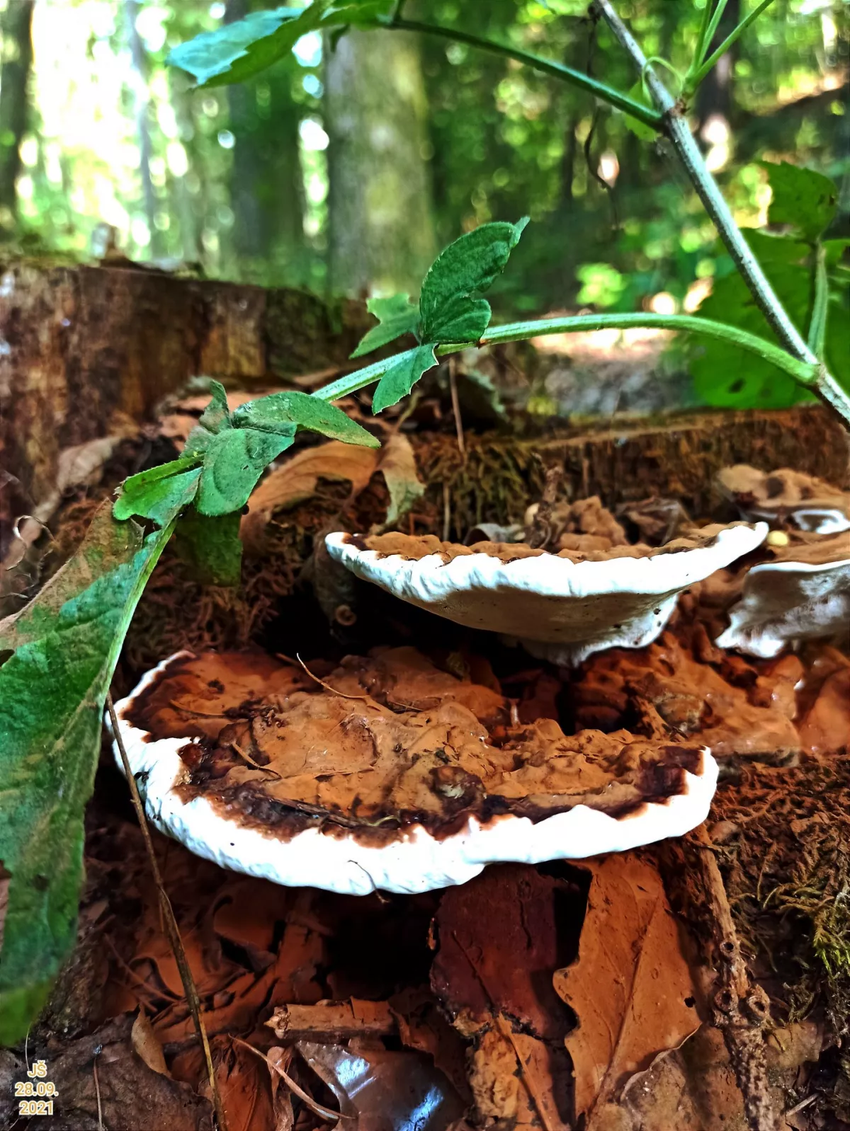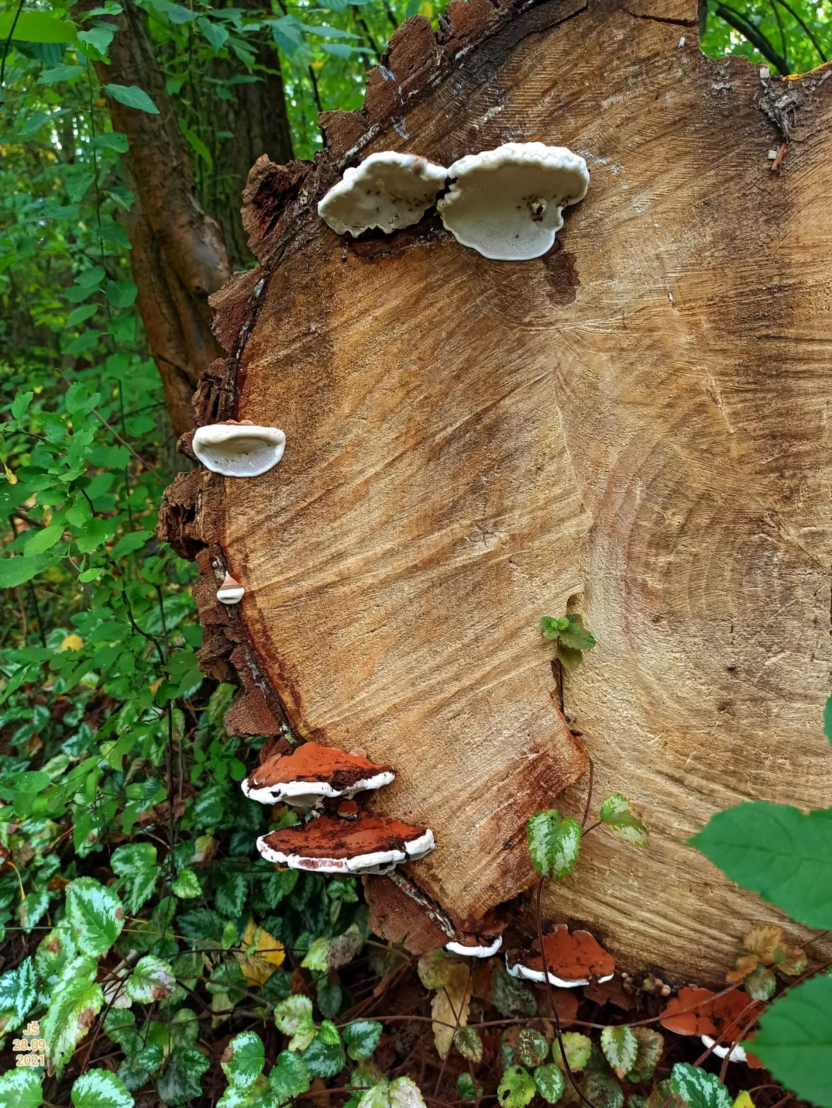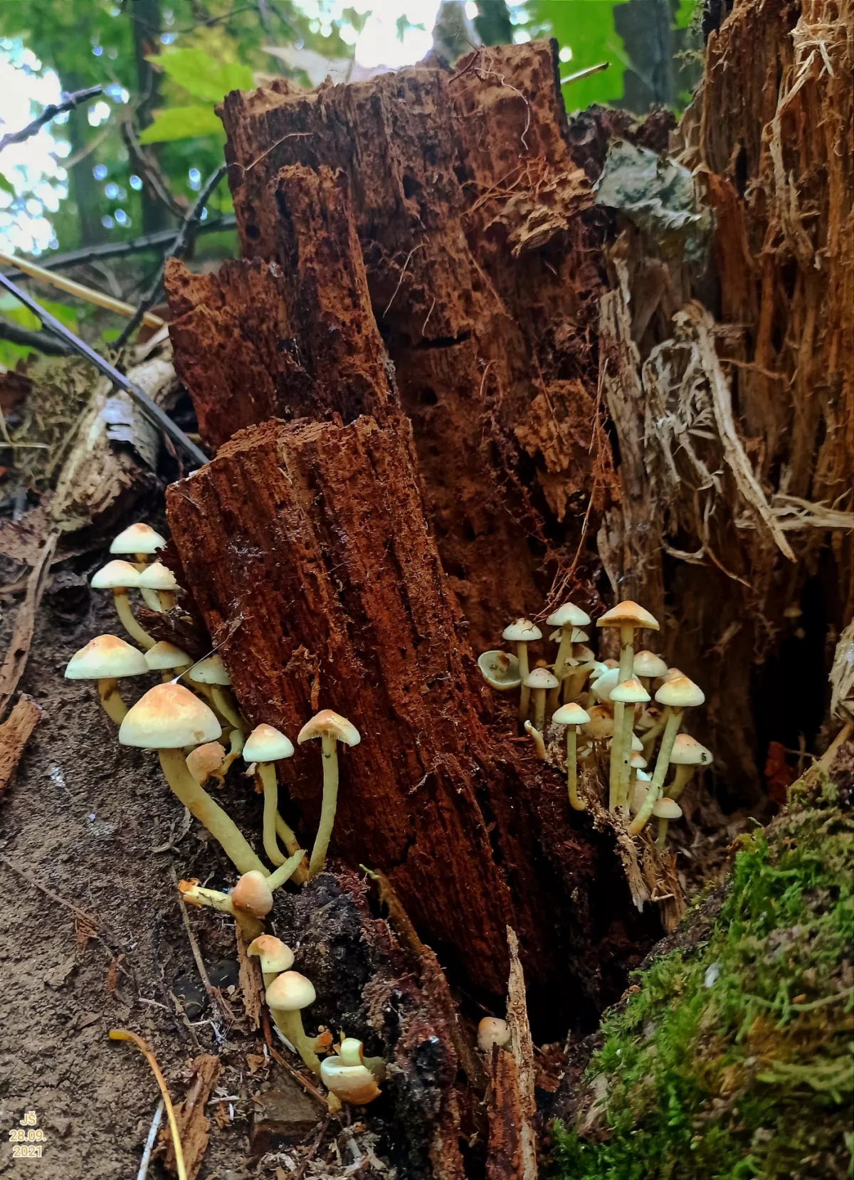 "Dnešní fotky. Z té šesté fotky nejsem moudrej. Vůbec nevím co ta část pařezu s červenými důlky je. Okolo byly takové malé houbičky. Na poslední fotce…"