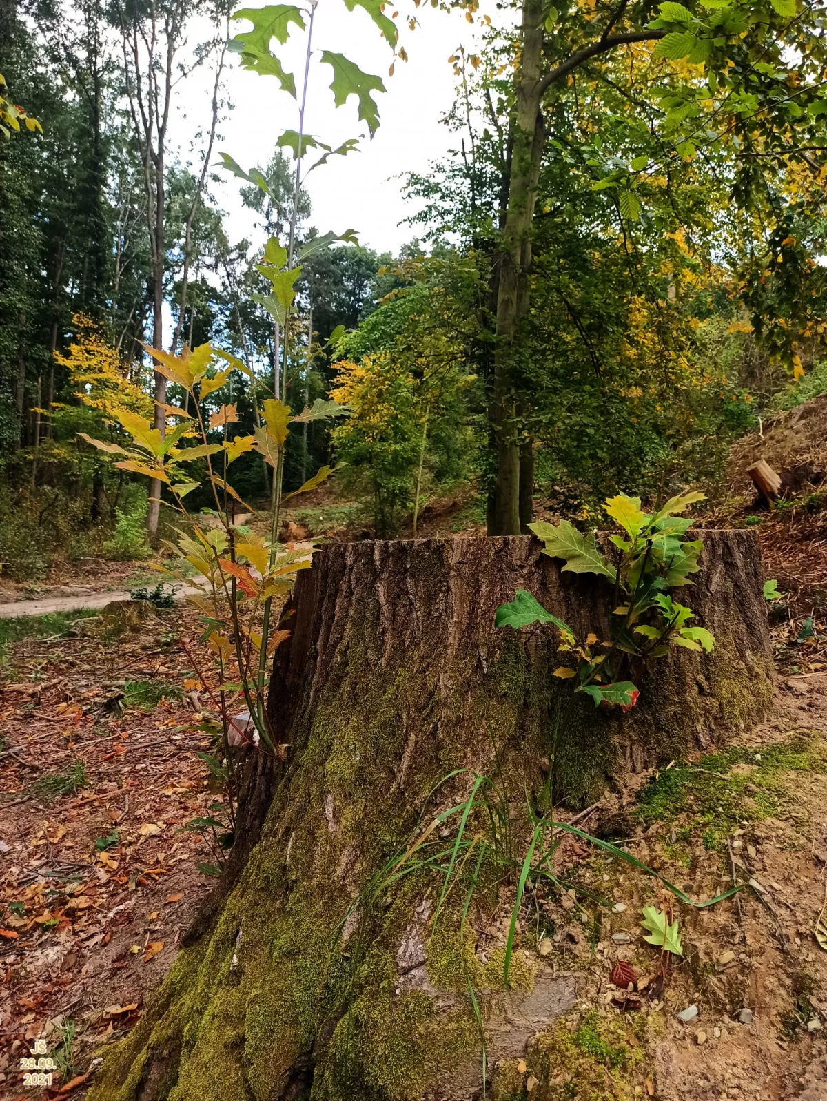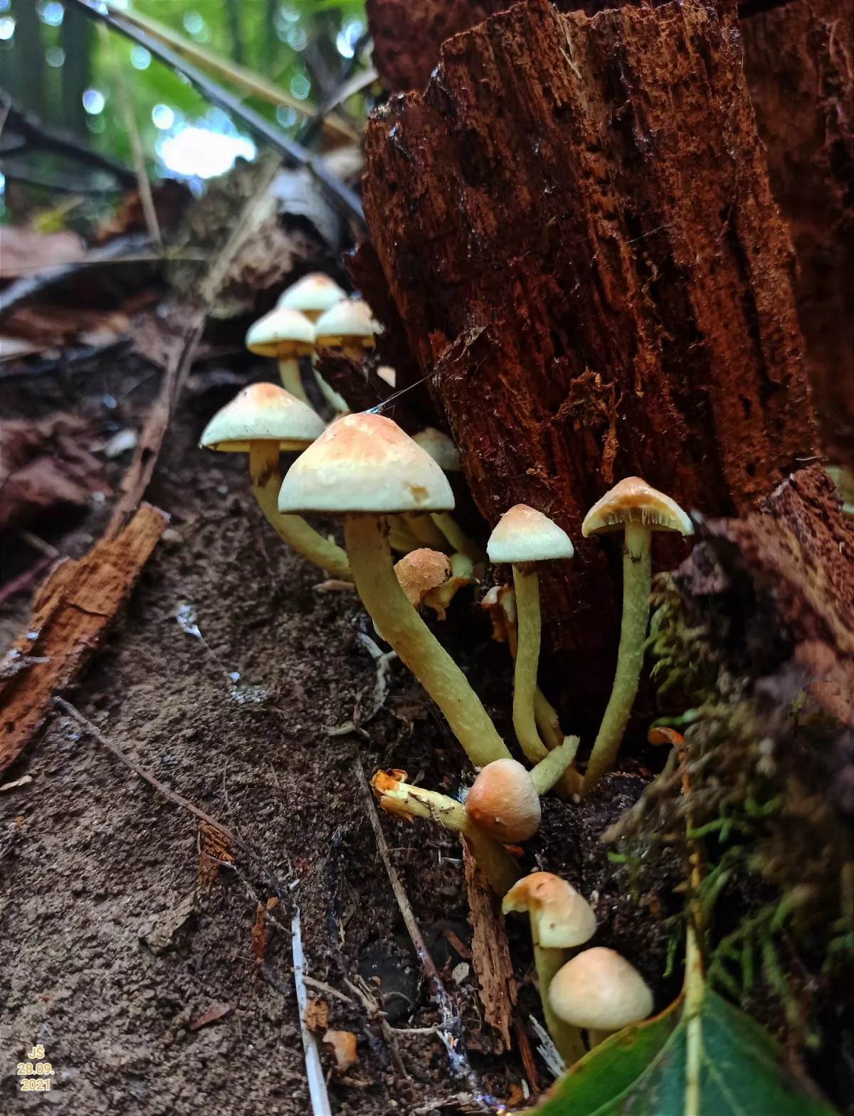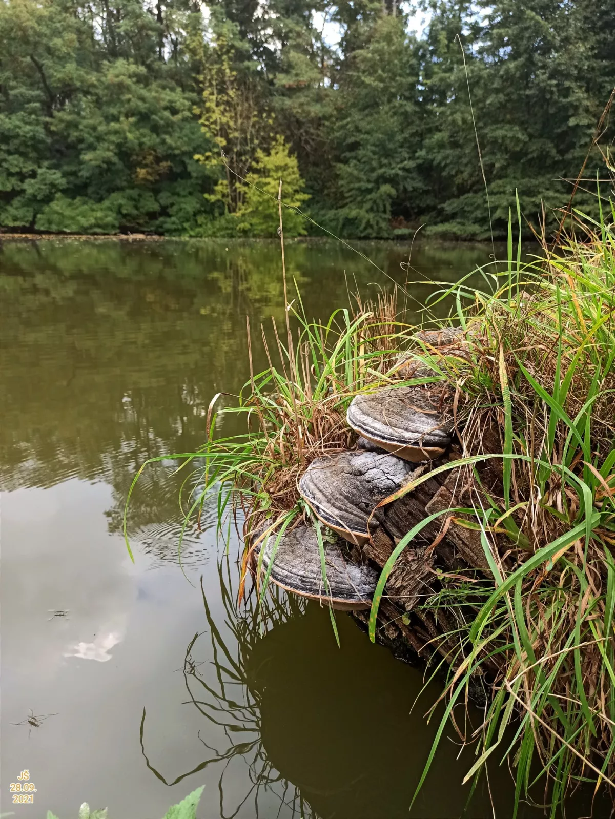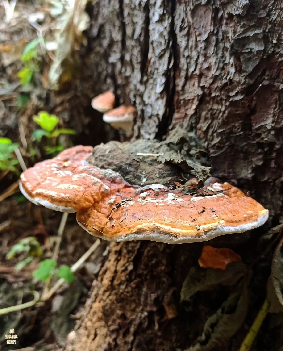 "Dnešní fotky. Z té šesté fotky nejsem moudrej. Vůbec nevím co ta část pařezu s červenými důlky je. Okolo byly takové malé houbičky. Na poslední fotce…"