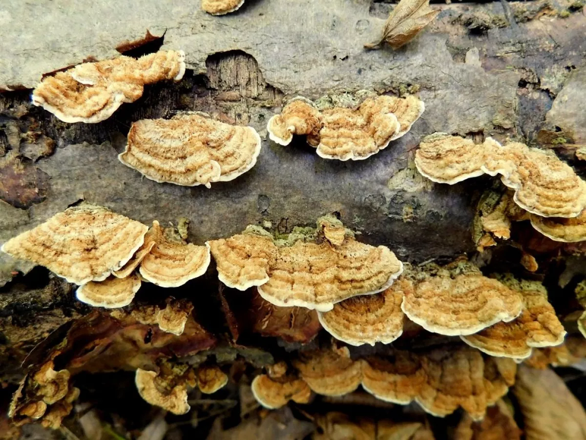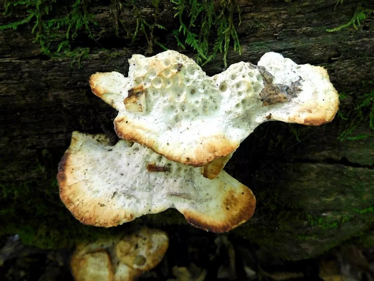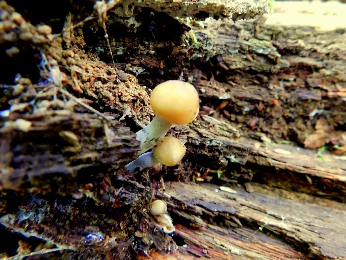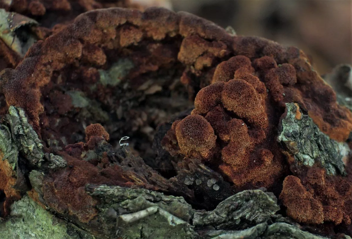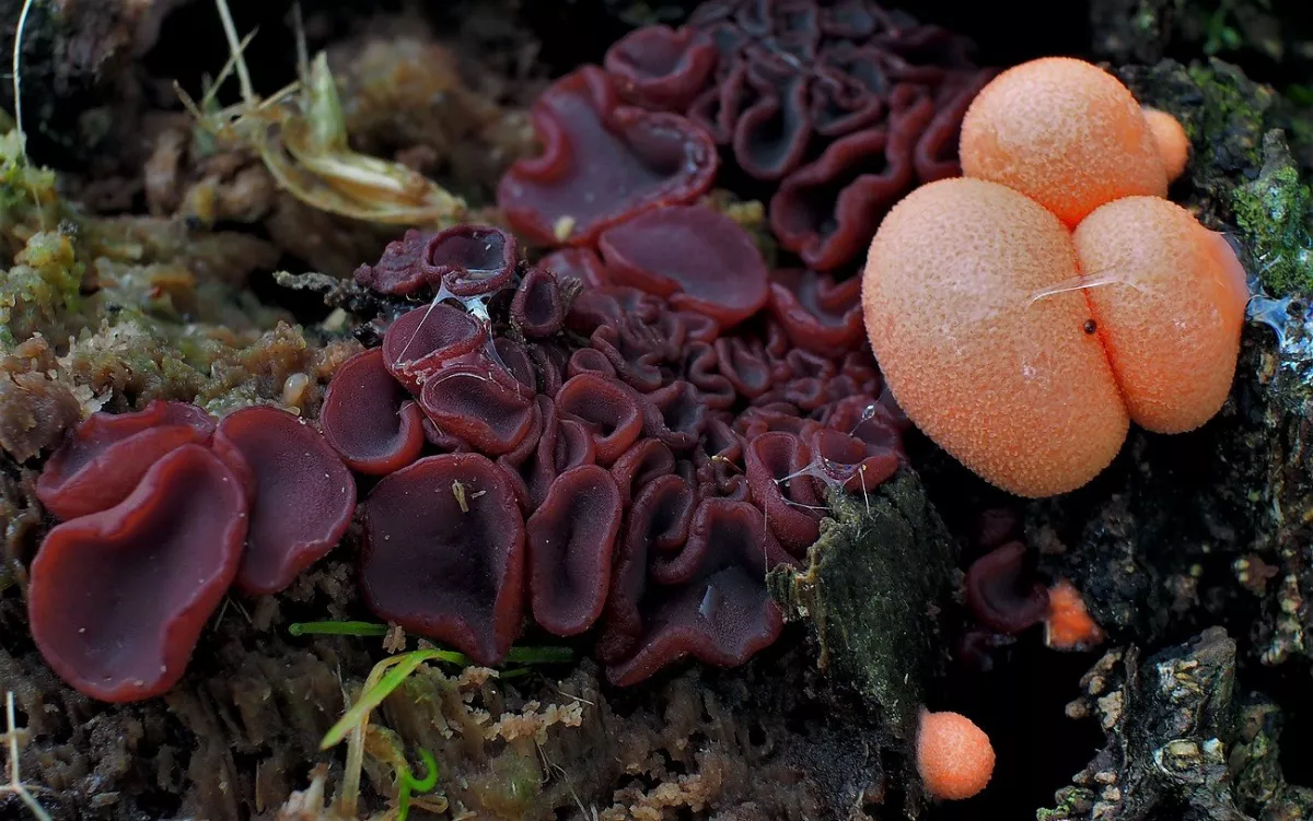 "Dnešní fotky. Z té šesté fotky nejsem moudrej. Vůbec nevím co ta část pařezu s červenými důlky je. Okolo byly takové malé houbičky. Na poslední fotce…"