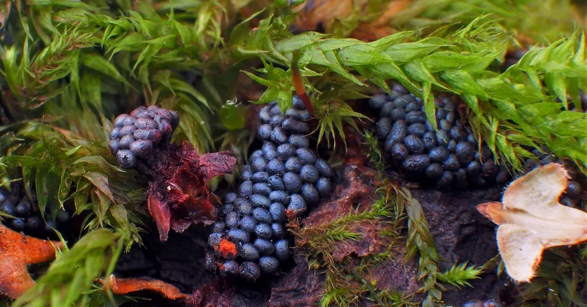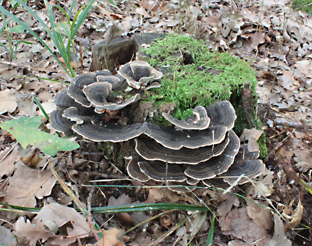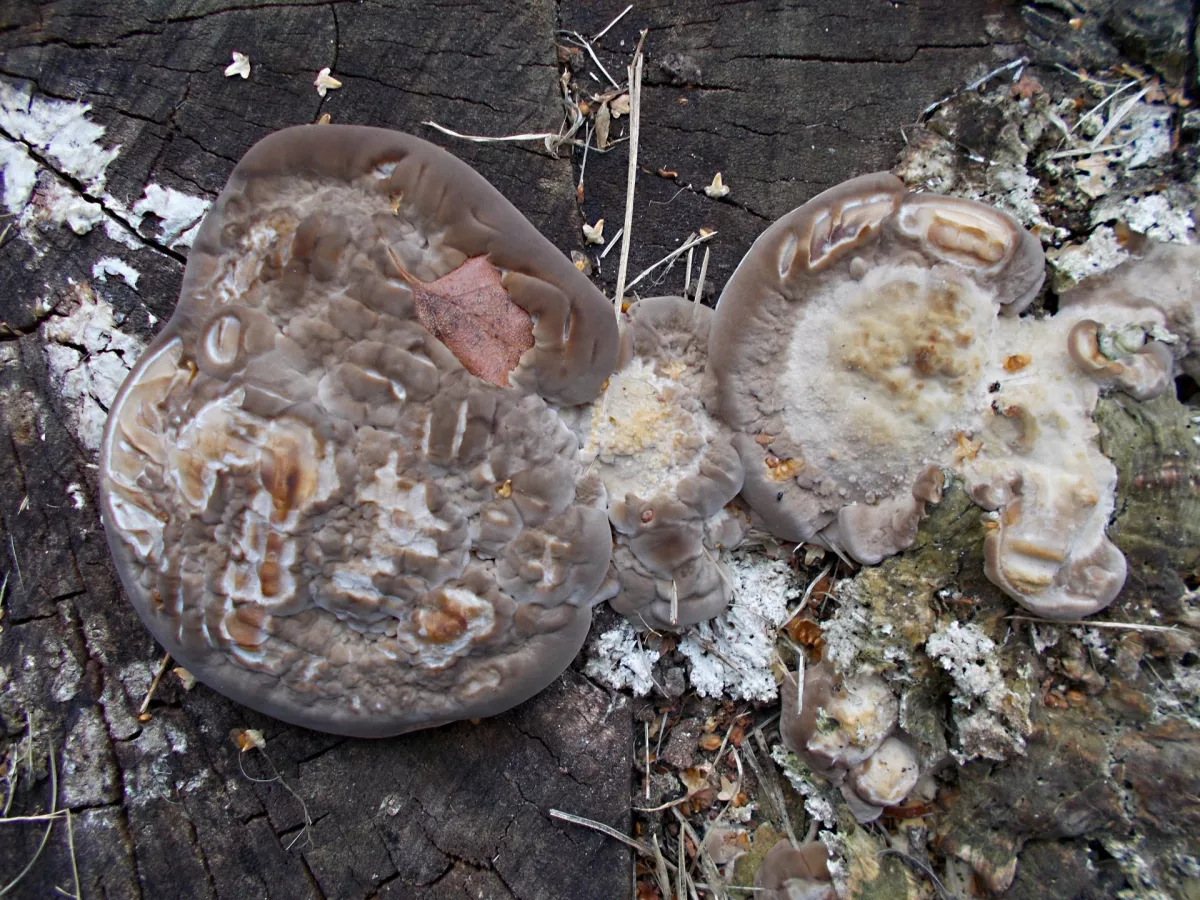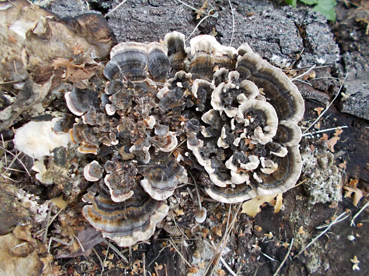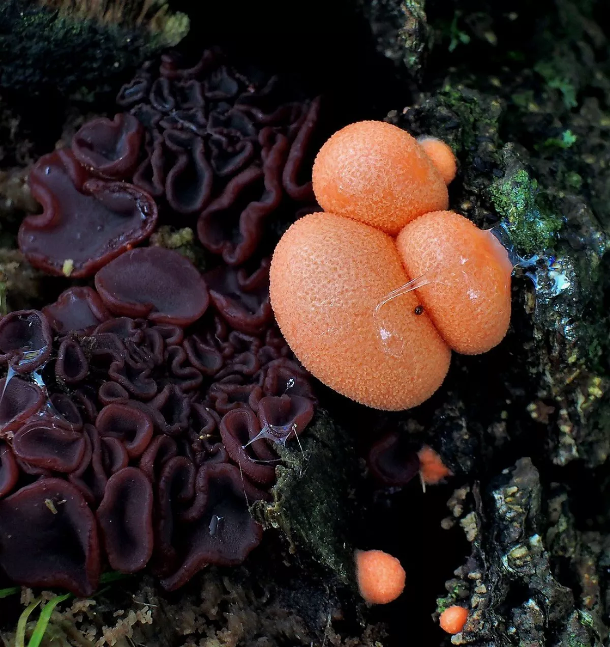 "Dnešní fotky. Z té šesté fotky nejsem moudrej. Vůbec nevím co ta část pařezu s červenými důlky je. Okolo byly takové malé houbičky. Na poslední fotce…"