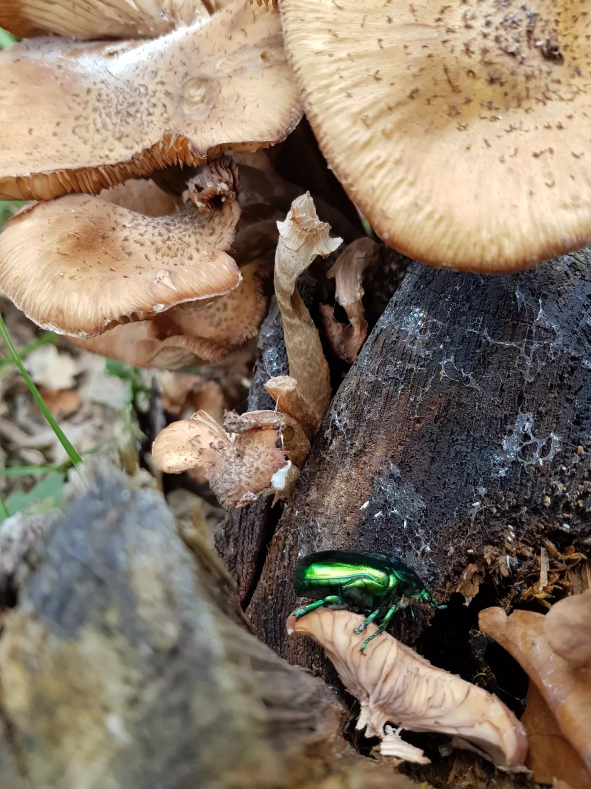 V Klánovickém lese toho zrovna moc neroste. Ale našel jsem opeňky a znovu jsem se šel podívat na místo, kde jsme před třemi dny našli václavky a byly tam nové trsy. A taky jeden zlatohlávek.