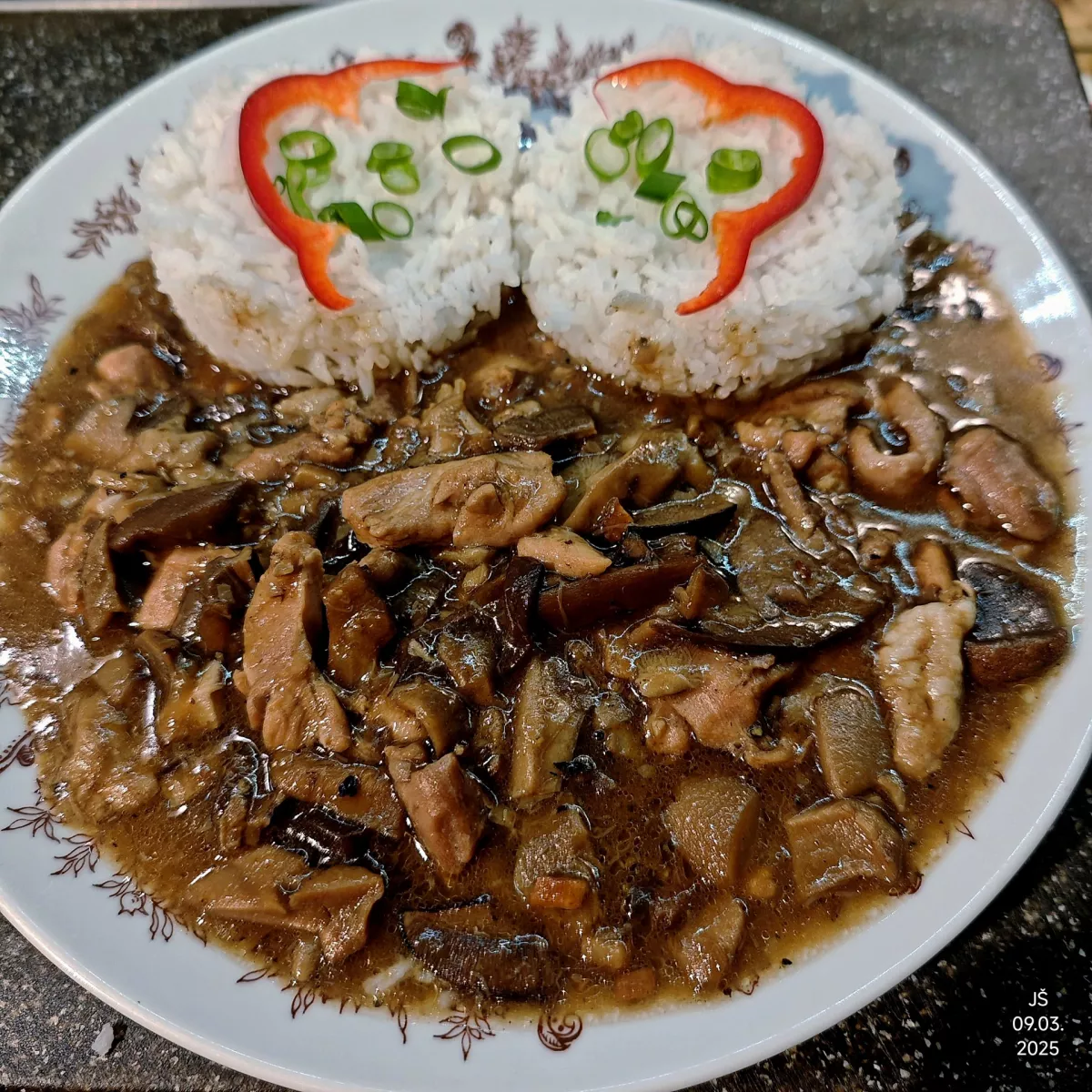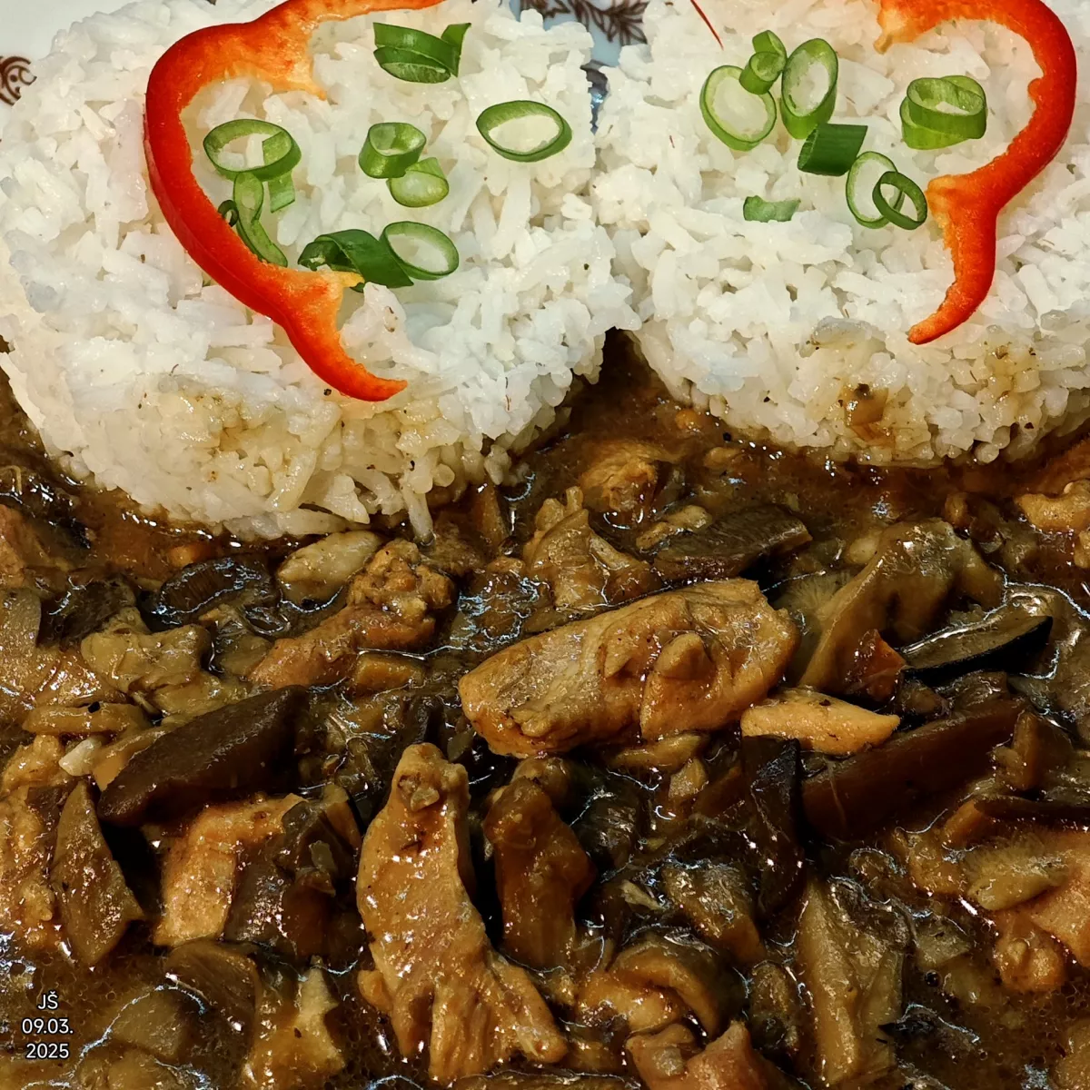...sem si dneska nacpal paňděro😀, kuřecí na houbách s basmati rýží👌👌🍀