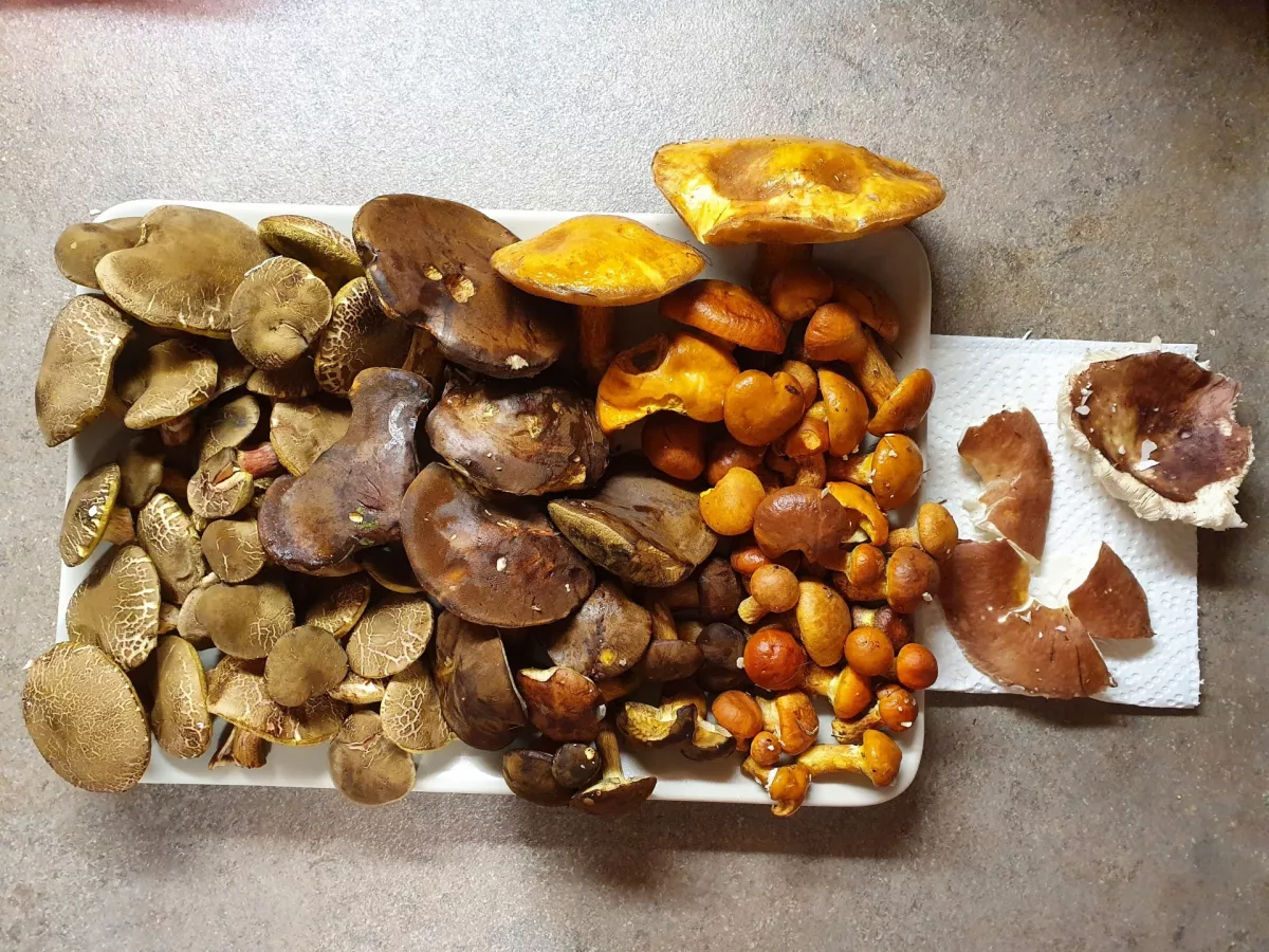 Převažovaly klouzky sličné, hříbky hnědé a babky, občas nějaká prožraná nebo nejedlá holubinka, pár šedivek, obr pravák před smrtí a prožraná růžovka. Tak ať se nám daří nacházet, co si přejeme a užívat si lesních toulek v příjemných teplotách co nejdéle. ;)
