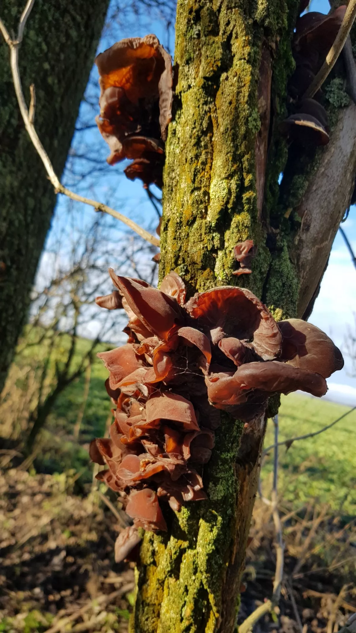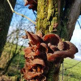 mám zázračný ořech. je určen k likvidaci. na jednom zbytku větve je od vánoc hlíva a na druhém začala penízovka.