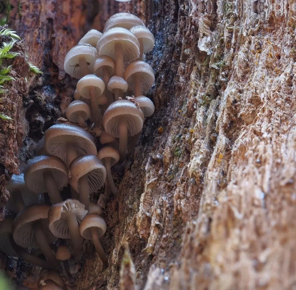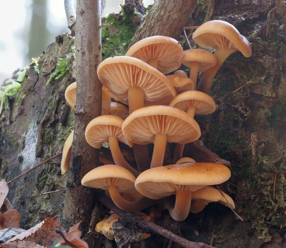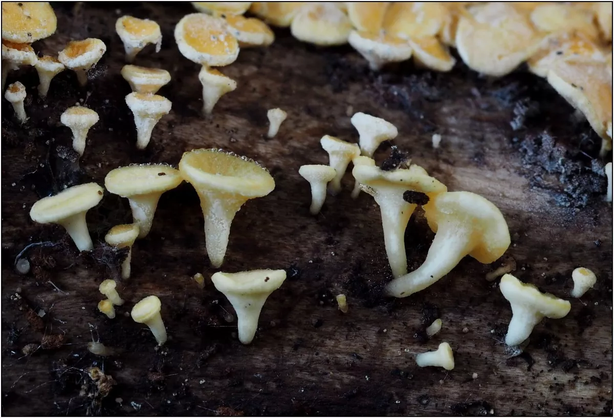 penízovka sametonohá, ušíčko černé 2x, dřevomorka zlatá, dřevomorka lesní, trepkovitka, brvenka asi Hahnova, voskovičky (?)