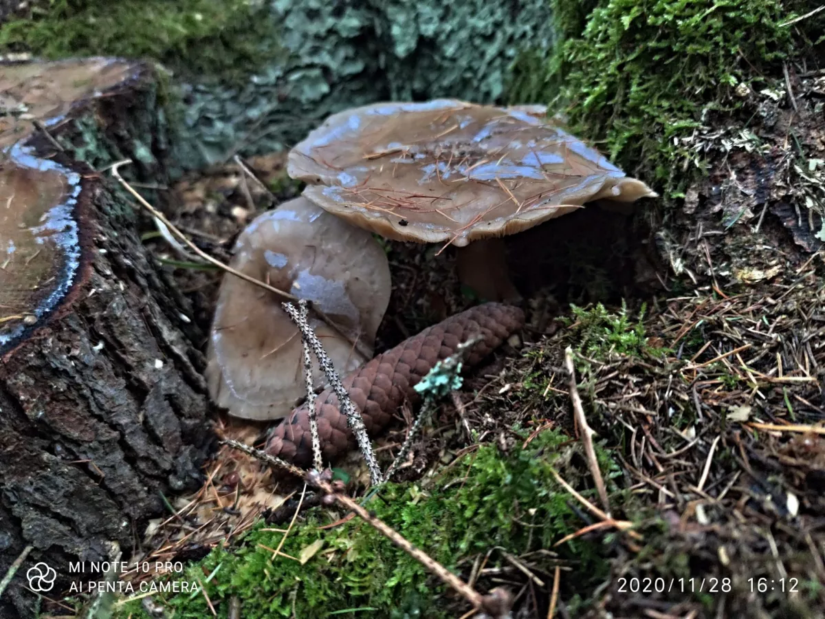 Ve 4 hodiny odpoledne bylo v lese už pěkné šero .Byli jsme tam pro trochu chvojí na výzdobu a tyhle houby byly ještě k vidění.