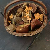 Ani jsem nečekal , že z dnešní 3 hodinové procházky v lese na Vysočině něco na omáčku domů přivezu .V lese je jinak mraky různých druhů holubinek , mochomůrek a i jiných druhů , ale k upotřebení jen ty suchohřiby a to jich roste opravdu poskromnu. Doufejme , že příští týden bude štědřejší.