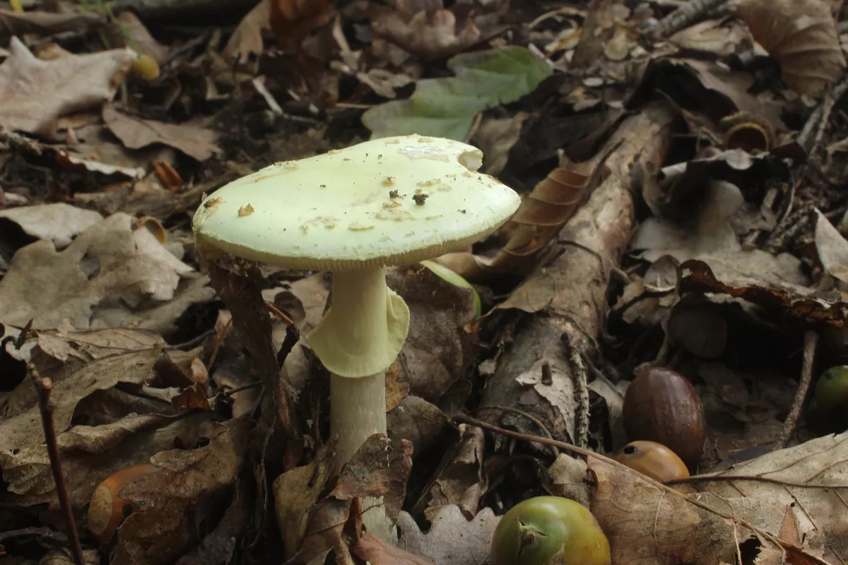 Muchomůrka citronová to je na podzim jistota:) Předposlední houbu bych tipoval na penízovku dubovou.